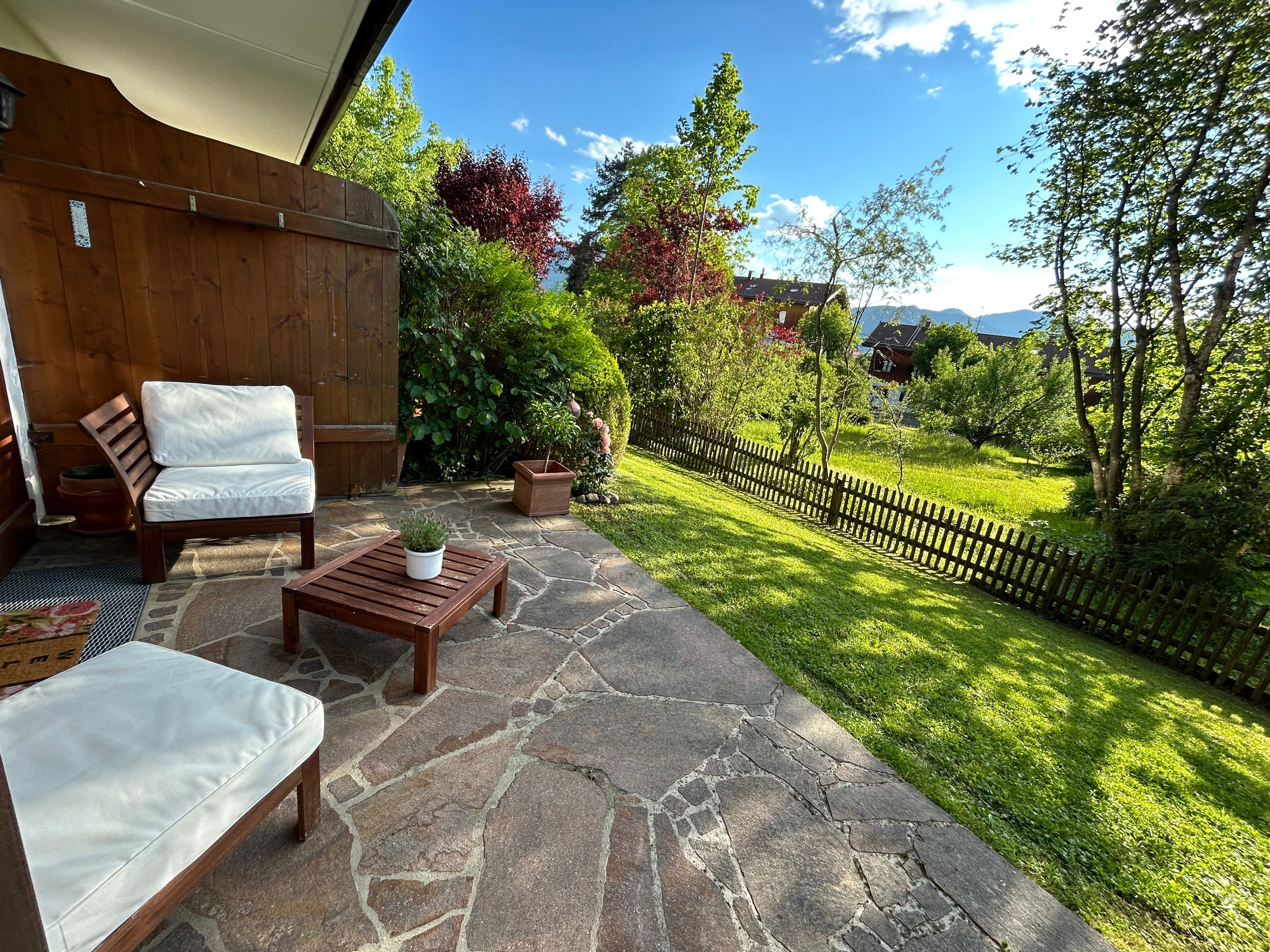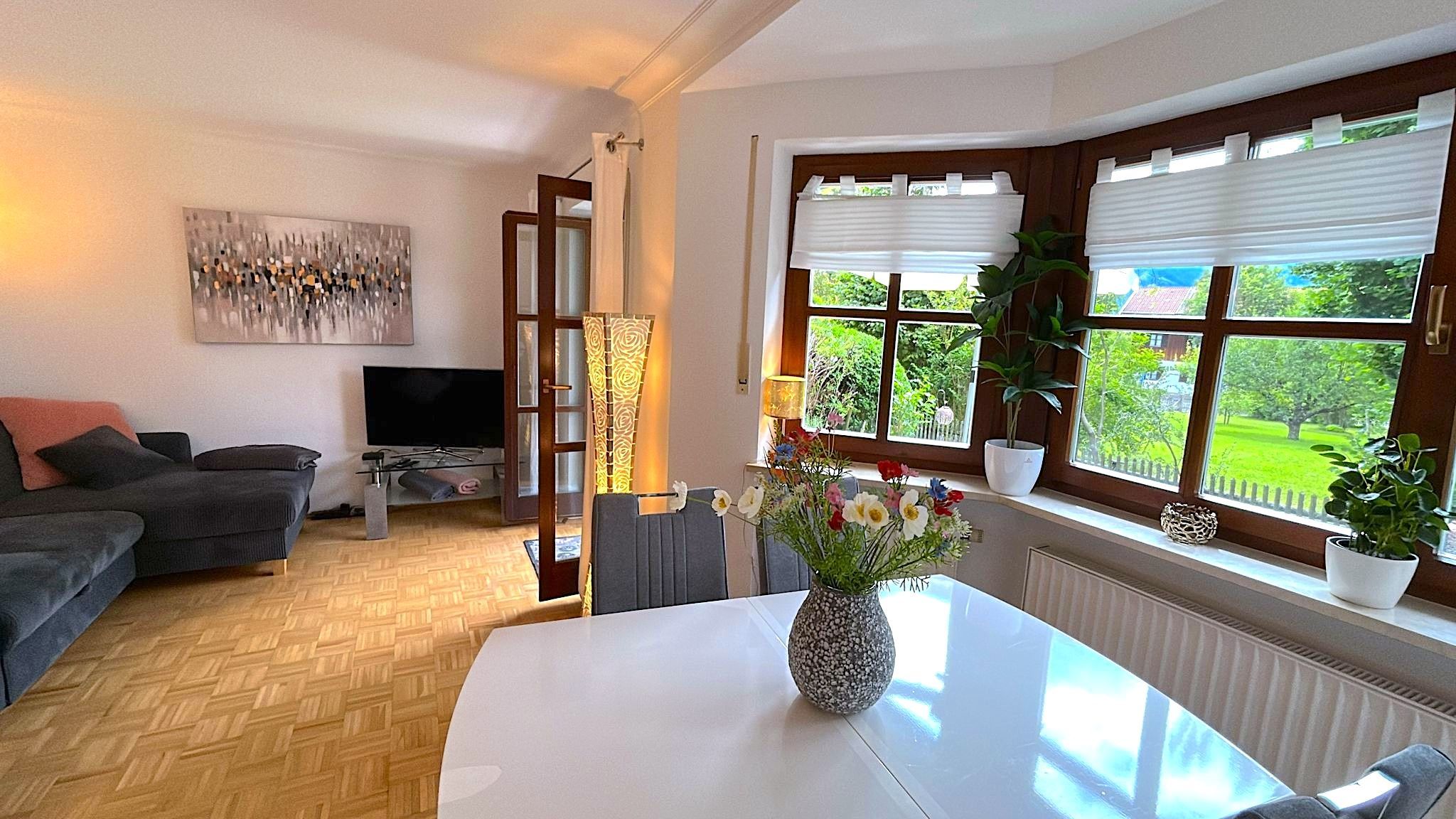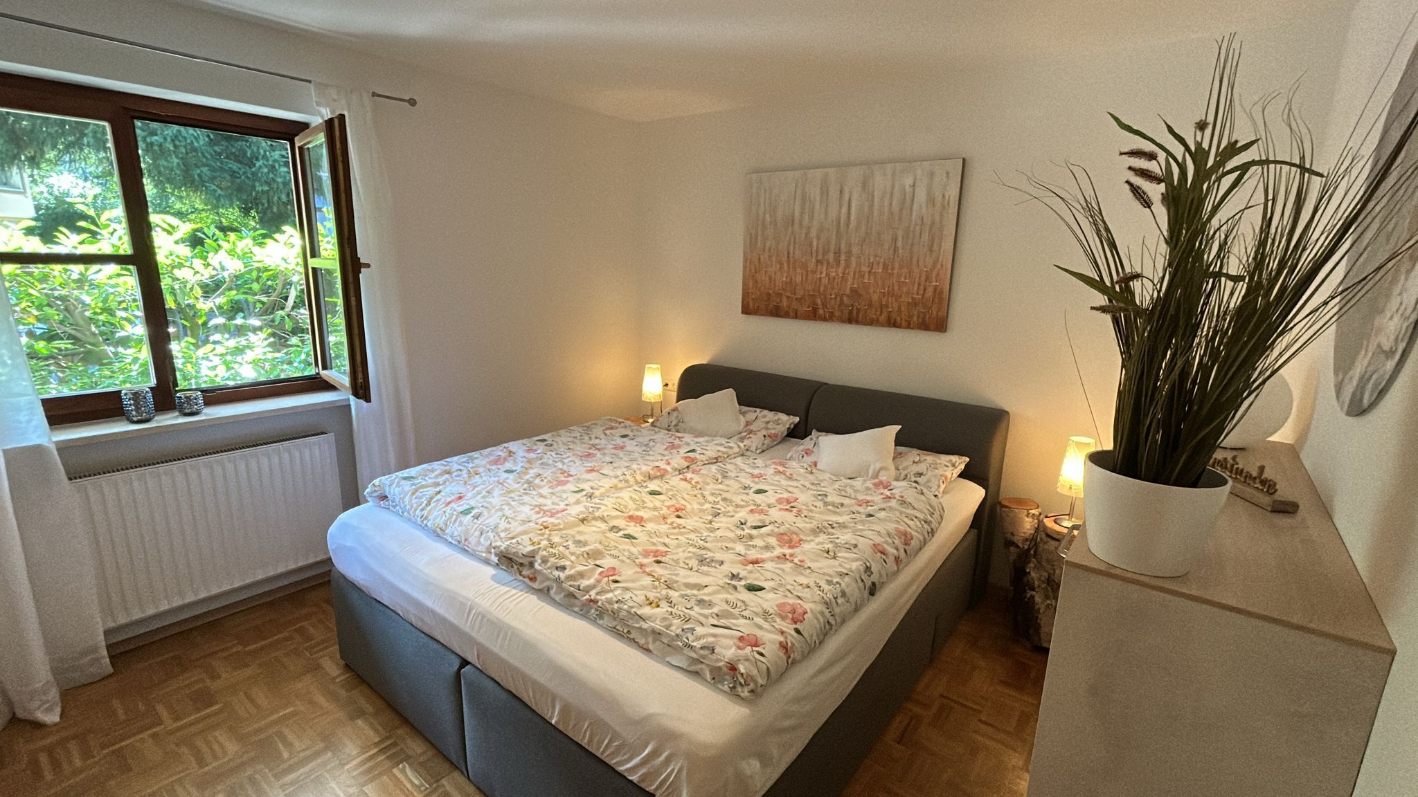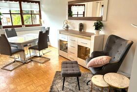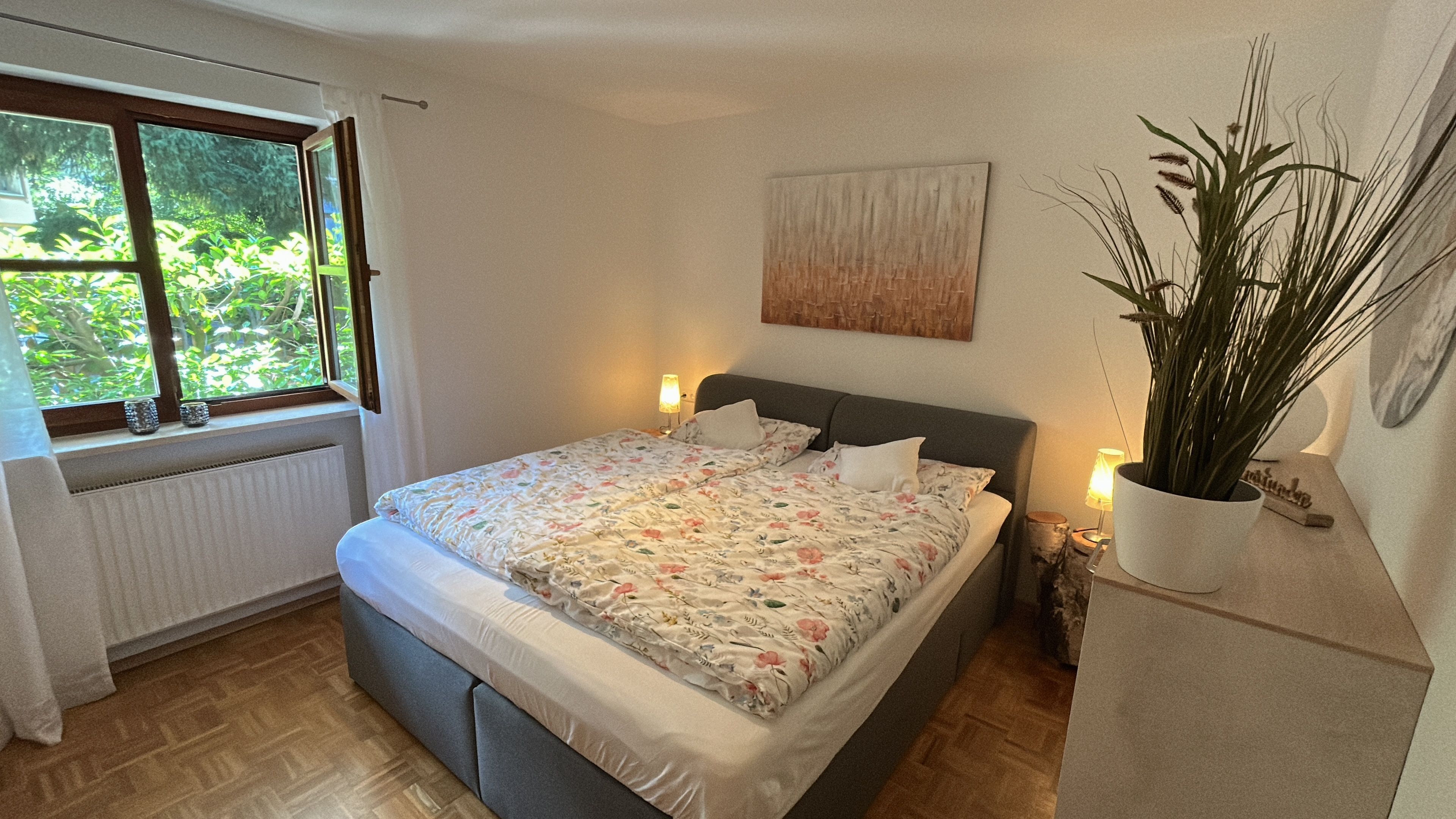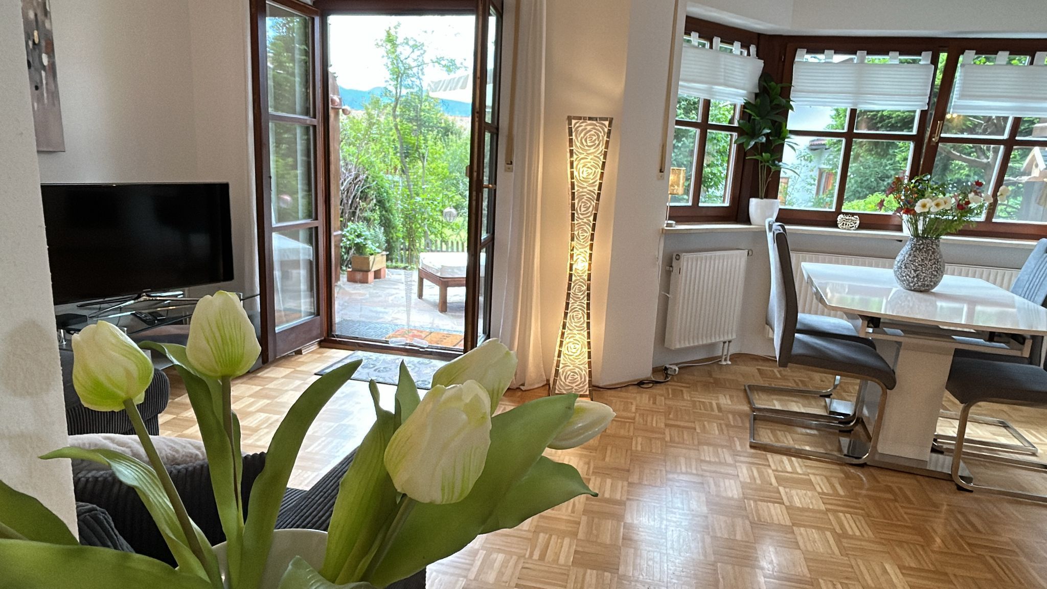 The flat is located in a typically Bavarian, very well-kept country house and offers a quiet, relaxing atmosphere despite its central location. The spacious terrace with a small garden area and a view of the garden and the mountains of Bad Wiessee invites you to relax. The modern, tasteful furnishings and well thought-out room layout make the flat a harmonious retreat.