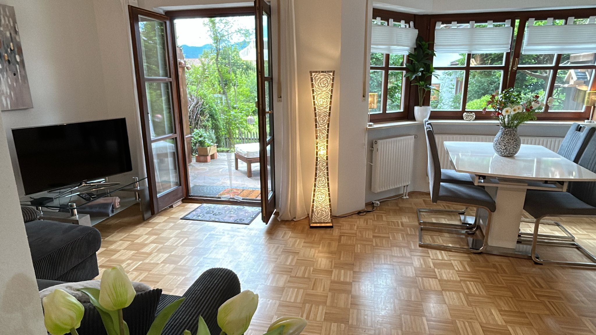 Die Wohnung befindet sich in einem typisch bayerischen, sehr gepflegten Landhaus und bietet trotz ihrer zentralen Lage eine ruhige, entspannende Atmosphäre. Die großzügige Terrasse mit kleinem Gartenanteil und Blick in den Garten sowie auf die Berge von Bad Wiessee lädt zum Entspannen ein. Die moderne geschmackvolle Einrichtung und die durchdachte Raumaufteilung machen die Wohnung zu einem harmonischen Rückzugsort.