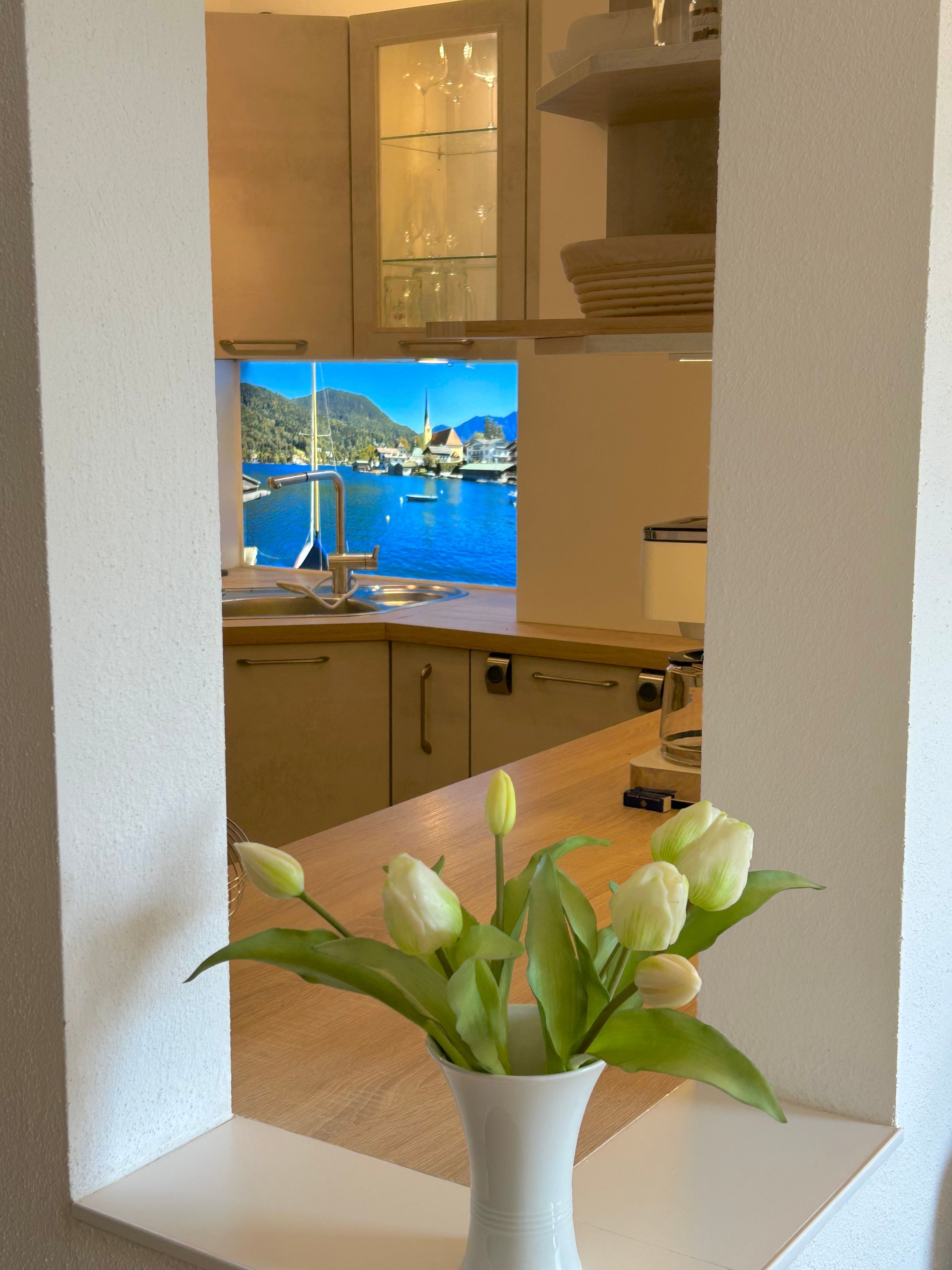 In the heart of the quiet, traditional centre of Tegernseestadt, just a few minutes' walk from the lakeshore, hiking trails, train station and shopping facilities, the Tegernsee Perle, completely modernised in 2024, is a light-flooded, 60 square metre 2-room terrace flat.