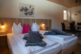 Komplett eingerichtetes Appartement-Wohnstudio für 2 Personen, ohne Balkon, Bad mit Dusche/WC, SAT-TV.