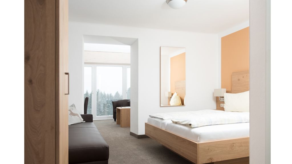 Unsere Panoramazimmer sind mit einem lichtdurchflutenden Wintergarten mit Landschafts- & Bergblick ausgestattet. Die Moderne, massive Eichenholz Einrichtung und der räumliche Komfort macht diese Zimmer sehr wohnlich! Die Zimmer wurden Ende 2017 komplett saniert! Im gemütlichen Wohnbereich (Wintergarten) kann man den Urlaub in vollen Zügen genießen.