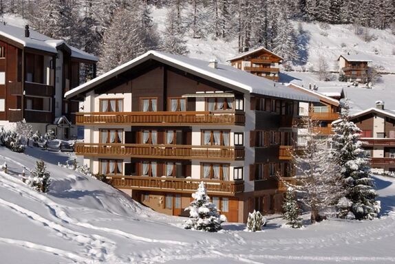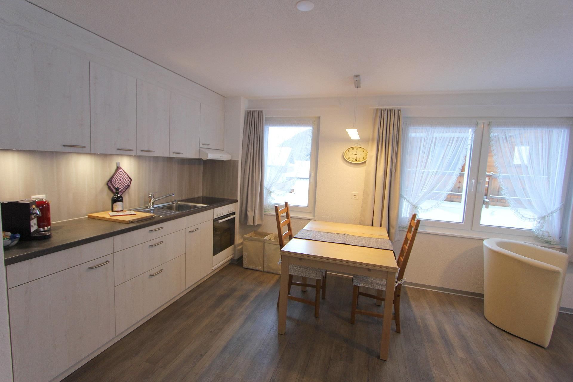 3-Zimmerwohnung (2. Stock; 61m2) mit 4 Betten, Wohn/Essraum, offene Küche, 1 Doppelschlafzimmer, 1 Zweitbettzimmer, Dusche/WC, Südbalkon, Lift, gemütlich, heimelig und zweckmässig eingerichtet, in der Nähe der Skilifte und Bahnen.