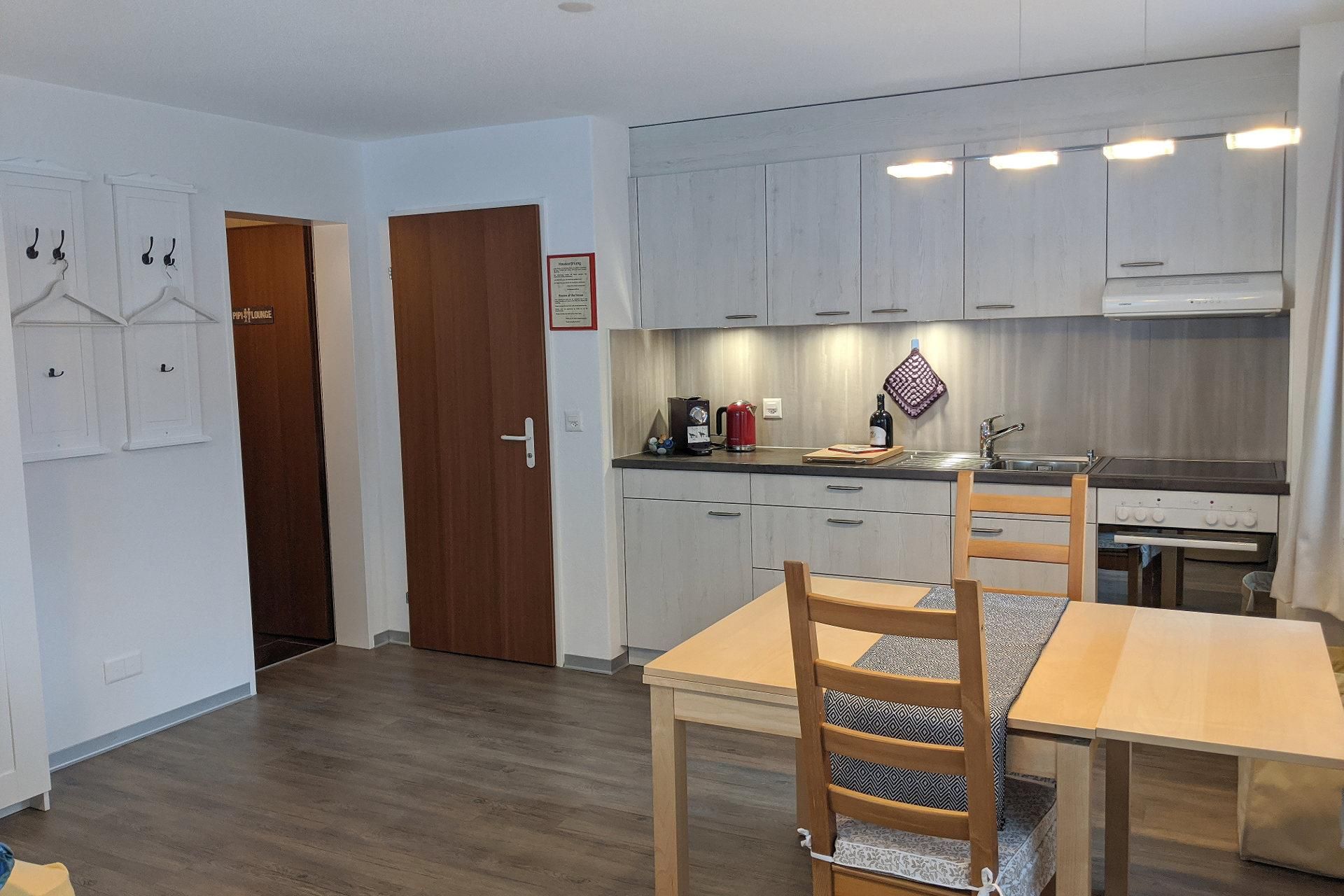 Backofen, Bettwäsche vorhanden, Elektroherd, Fernseher, Fondue-Set, Gefrierfach, Geschirrspülbecken, Geschirrspülmaschine, Haarföhn, Handtücher vorhanden, Haustiere nicht erlaubt, Kombi-Mikrowelle, Kühlschrank, Raclette-Set, Radio, Ruhiges Zimmer/Appartement, Sitzgruppe, Terrasse, Tisch- und Küchenwäsche, Toaster, Toilettenwäsche, Trockner, Waschmaschinenbenutzung, Wasserkocher, Wohn-/Schlafräume getrennt, Wohnküche, Wohnzimmer