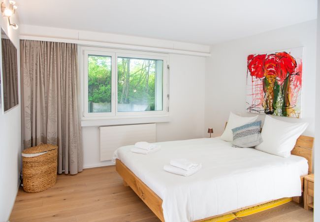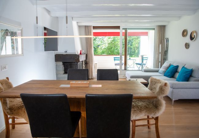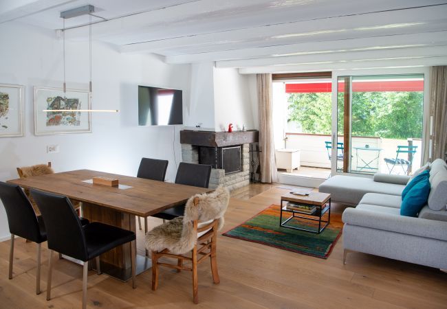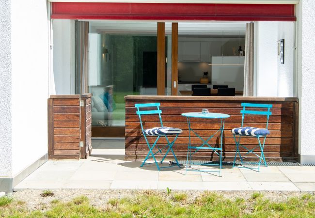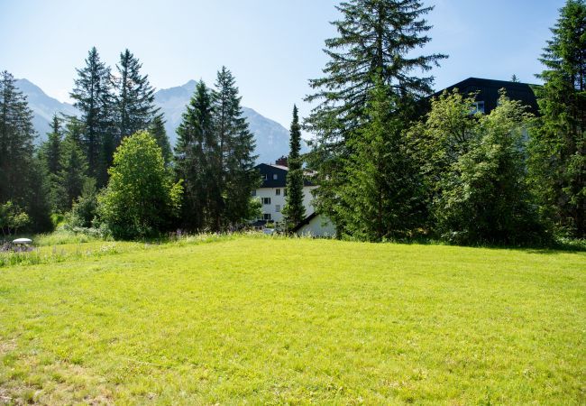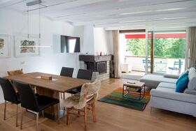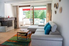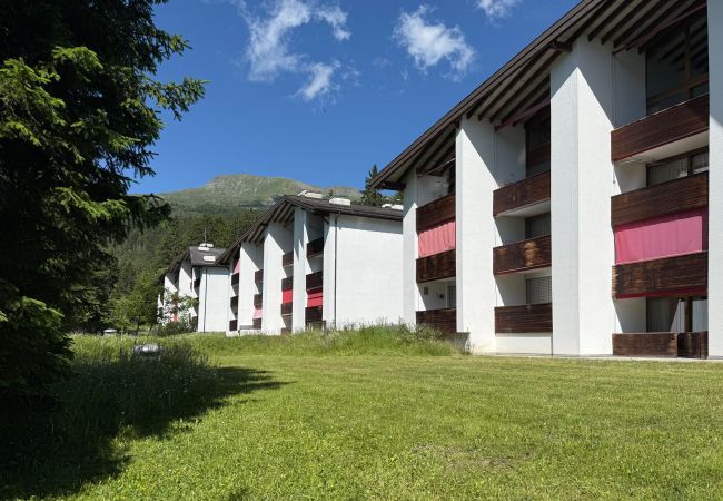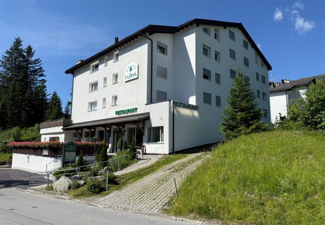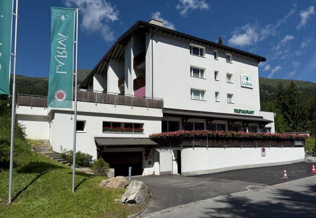 Das separate Schlafzimmer bietet erholsamen Schlaf, und das Badezimmer mit Badewanne lädt nach einem aktiven Tag zum Entspannen ein. Die Wohnung verfügt zudem über einen Fernseher, WLAN-Anschluss, Zentralheizung, einen Föhn sowie eine sonnige Terrasse von 10 m² mit Blick ins Grüne – ideal für ein Frühstück an der frischen Bergluft oder einen Apéro in der Abendsonne. Ein kostenloser Parkplatz in der Tiefgarage steht ebenfalls zur Verfügung. Für besondere kulinarische Genüsse sorgt das ausgezeichnete Restaurant La Riva im selben Haus – überregional bekannt für seine kreative und hochwertige Küche.