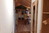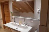 Das Bad ist mit einer ebenerdigen Dusche, WC, Handtuchwärmer, Föhn und Kosmetikspiegel ausgestattet.