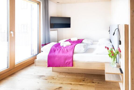 Jedes unserer Zimmer ist liebevoll mit ausgewählten Naturmaterialien ausgestattet, die eine behagliche und entspannende Atmosphäre schaffen. Dazu gehört auch unser komfortables Neubau-Zimmer Wiesenglück.