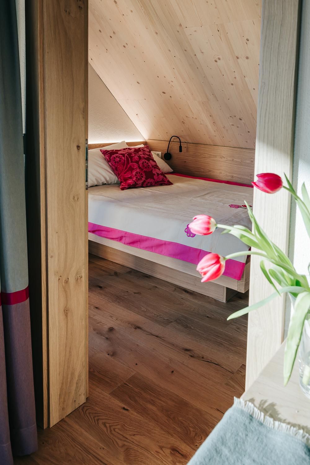 Erleben Sie pure Entspannung in unserem neuen Zimmer Panoramablick, wo Komfort auf Natur trifft. Wie alle unsere Räumlichkeiten ist auch dieses Zimmer mit sorgfältig ausgewählten Naturmaterialien ausgestattet, die eine beruhigende und gesunde Atmosphäre schaffen.