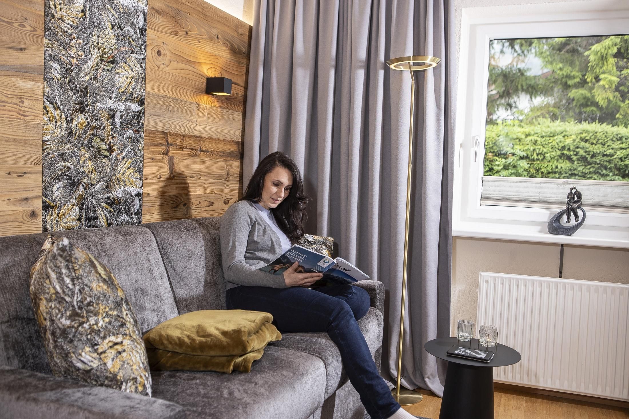 • Sonniges, warmes Ambiente: Licht und Wärme durch natürliche Materialien und edle heimische Hölzer