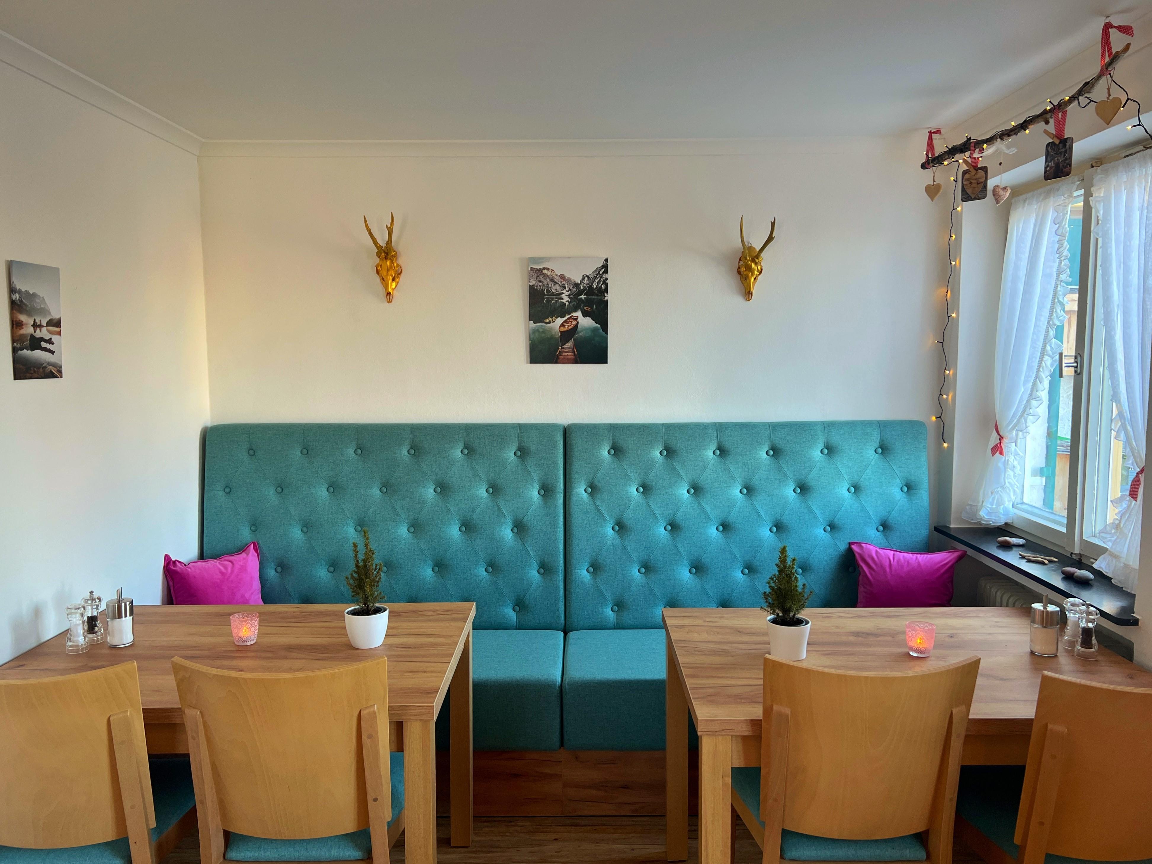 In unserem Restaurant gibt es zurzeit wegen Personalengpässen leider nur mittwochs Pizza, Flammkuchen und verschiedene Salate aber Fußläufig in ca. 8 Minuten haben wir die Guggenberg Alm, diese bietet eine große Auswahl an bayrischen, regionalen, vegetarischen und Saisonalen Speisen. Mit dem Auto sind auch einige Restaurants in 3-5 Minuten erreichbar.