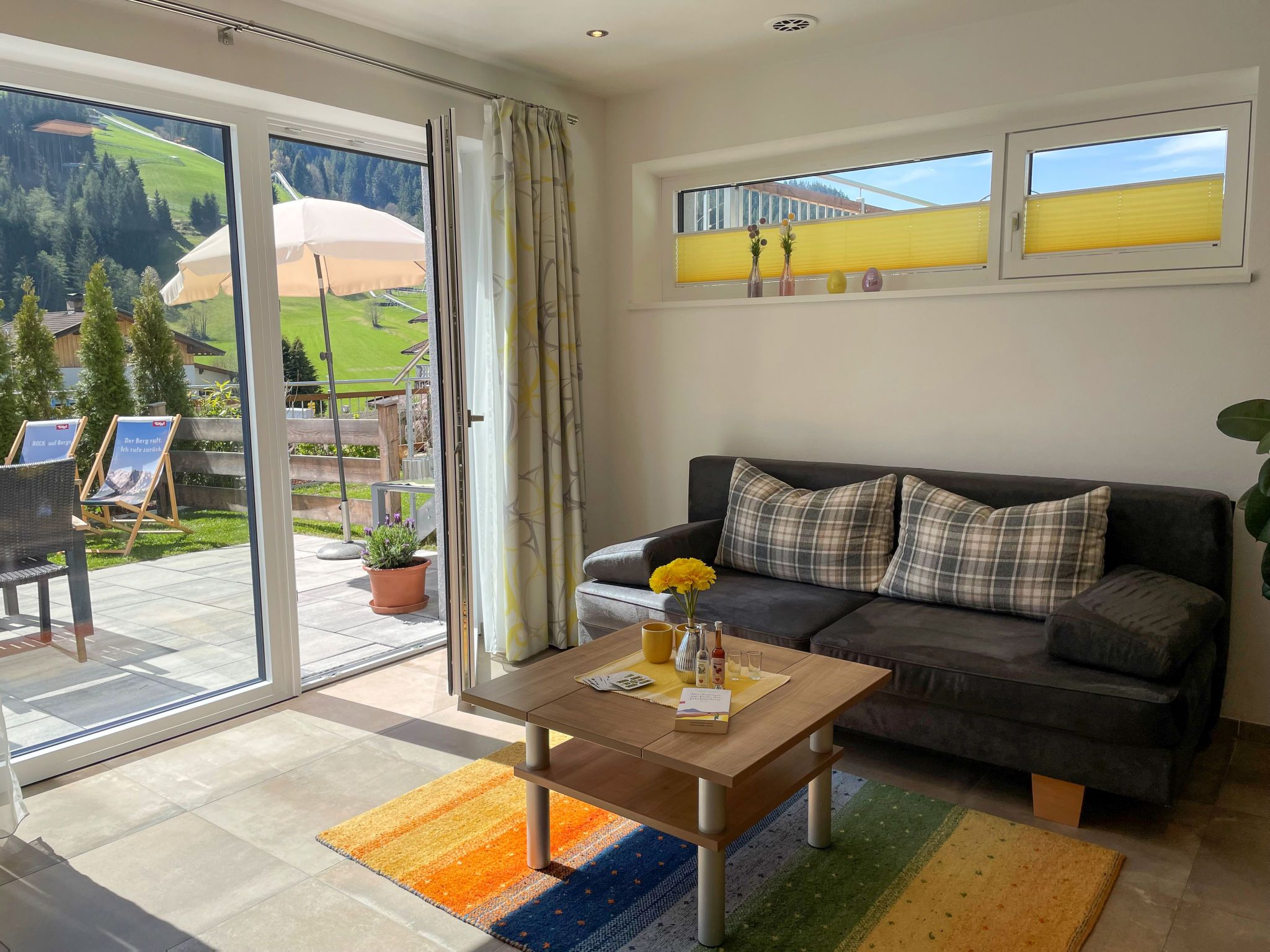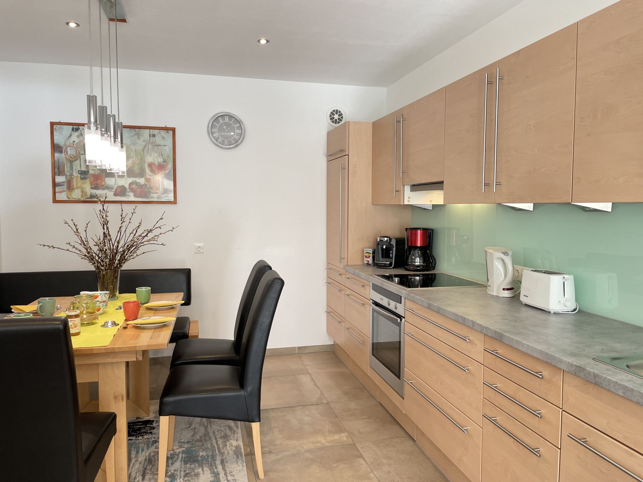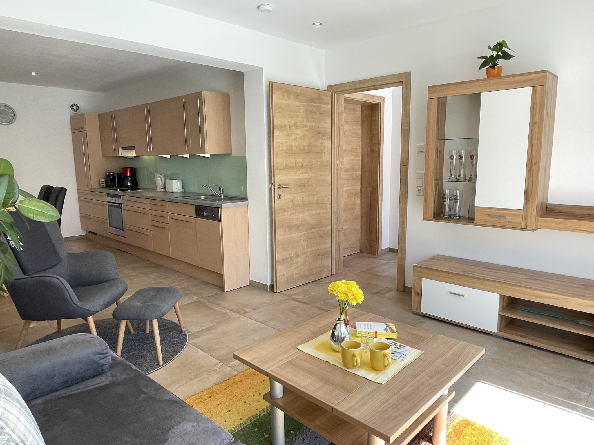 Sonnseit Living, 2-Zimmer-Wohnung 65 m2, im Erdgeschoss. Hell, schön und modern eingerichtet: Wohn-/Schlafzimmer mit 1 Doppeldiwanbett, Esstisch, Essecke, Sat-TV und Radio. Ausgang zur Terrasse. 1 Doppelzimmer. Offene Küche (Backofen, Geschirrspüler, 4 Glaskeramikplatten, Toaster, Wasserkocher, elektrische Kaffeemaschine). Dusche/WC. Heizung. Terrasse 25 m2. Terrassenmöbel, Elektrogrill (mobil), Liegestühle (2). Schöne Sicht auf die Berge, die Landschaft, die Ortschaft und Familienfreizeitpark Drachental. Zur Verfügung: Babybett, Haartrockner. Internet (Wireless LAN, gratis). Bitte beachten: Nichtraucher-Unterkunft. Rauchmelder, Feuerlöscher.