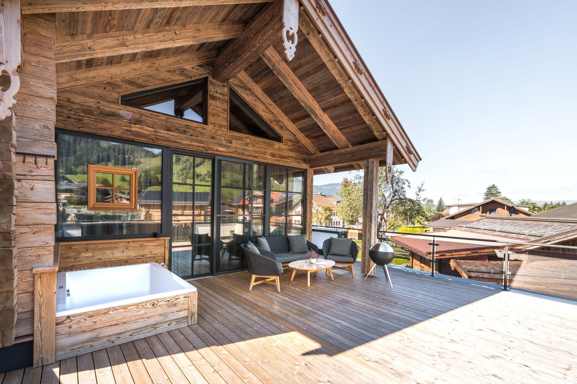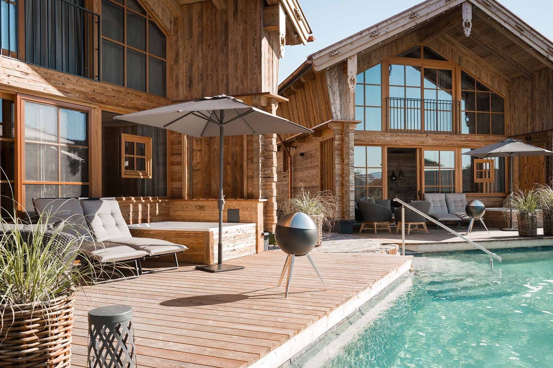 * Whirlpool auf der Holzterrasse am Chalet