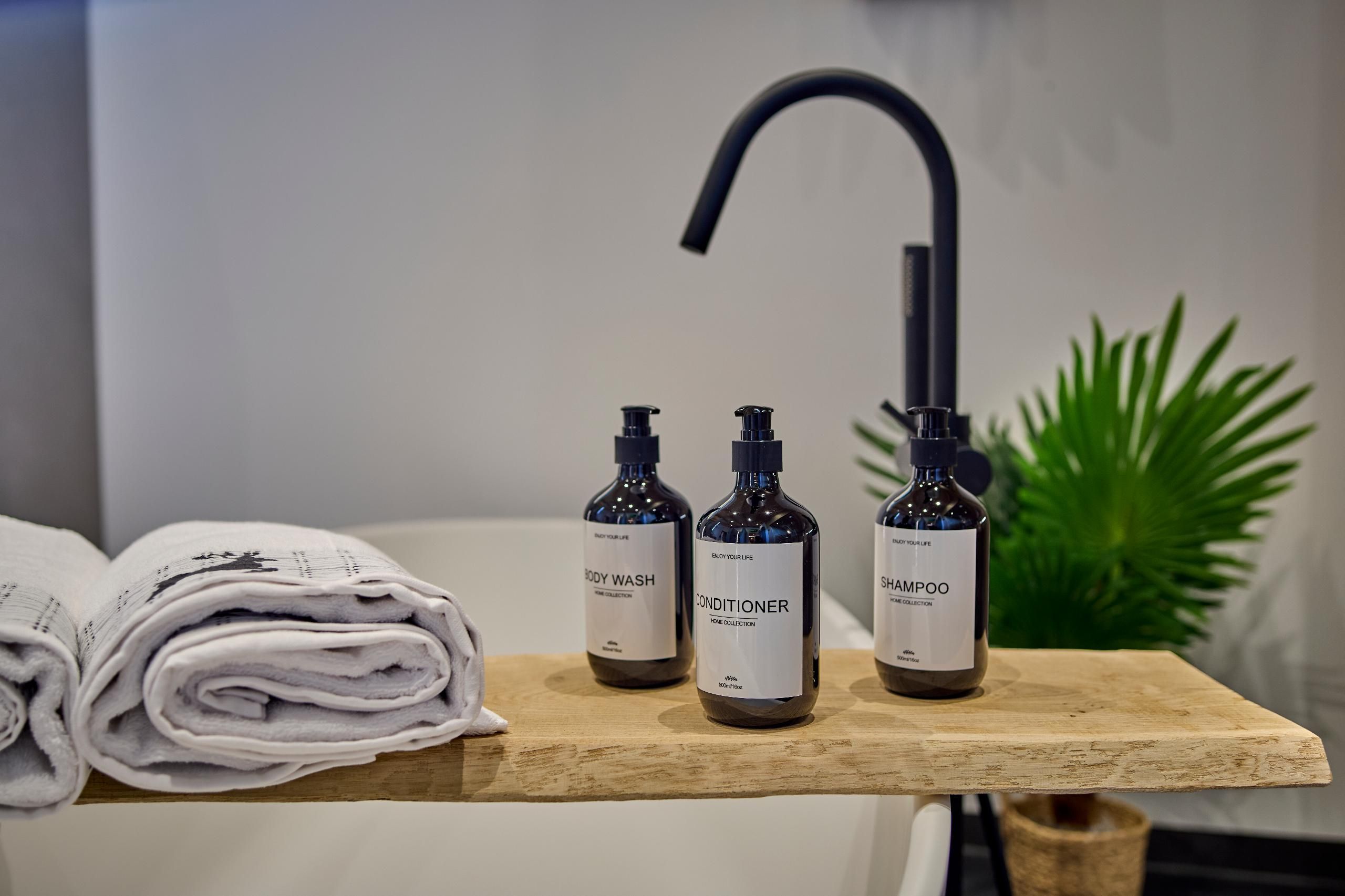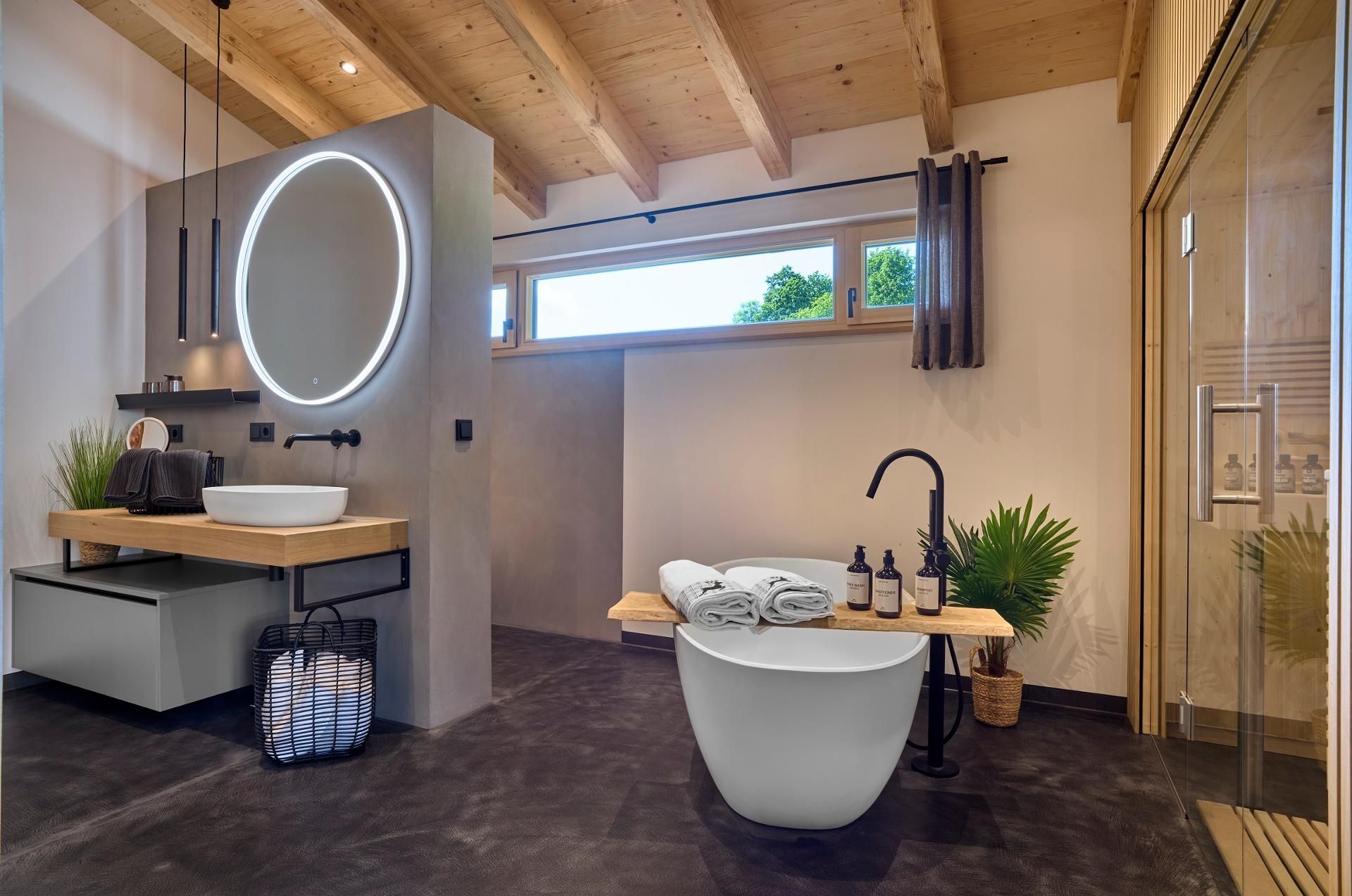 Regendusche und freistehender Badewanne rundet das Wohlfühlambiente ab.