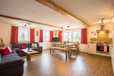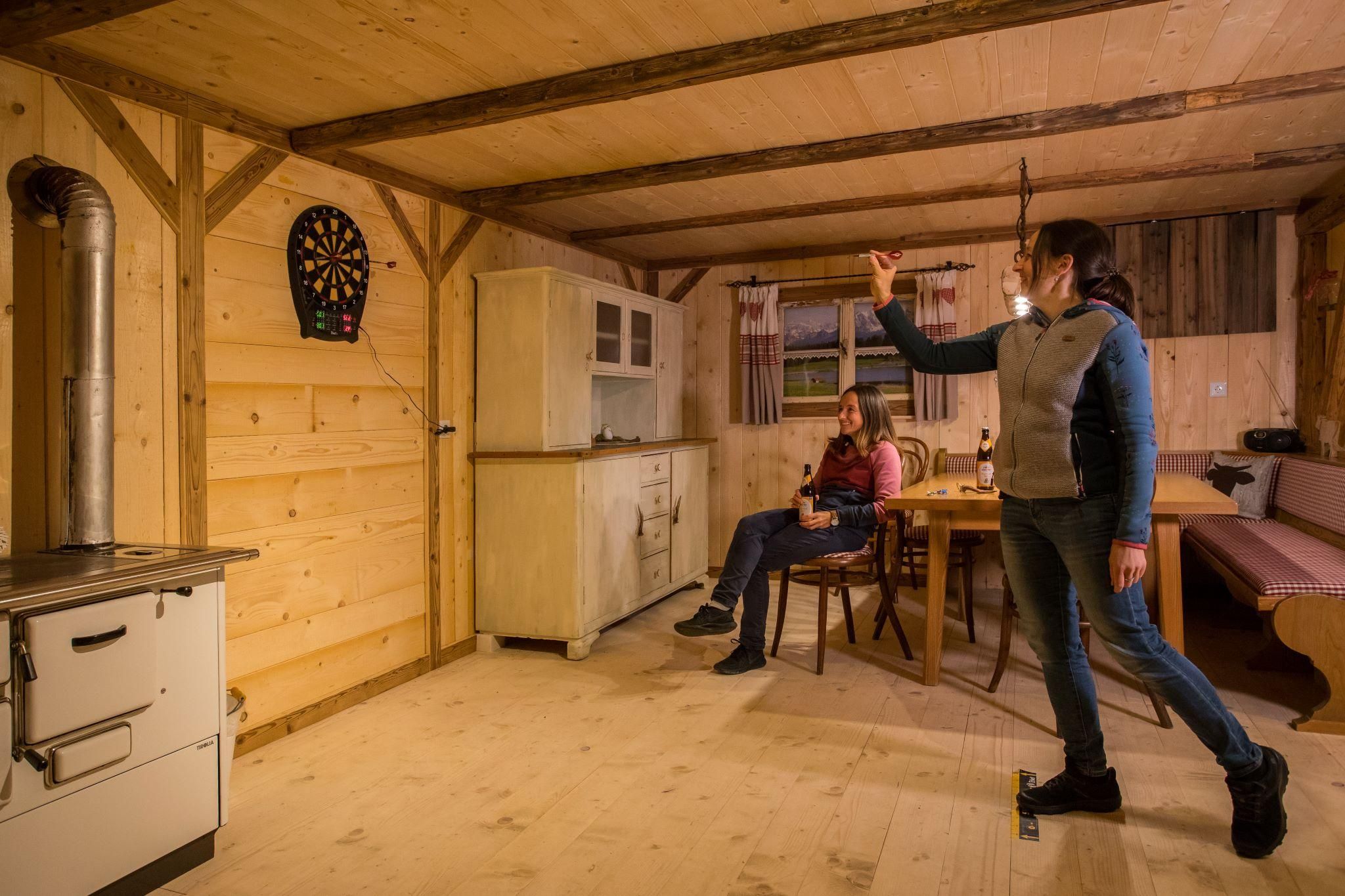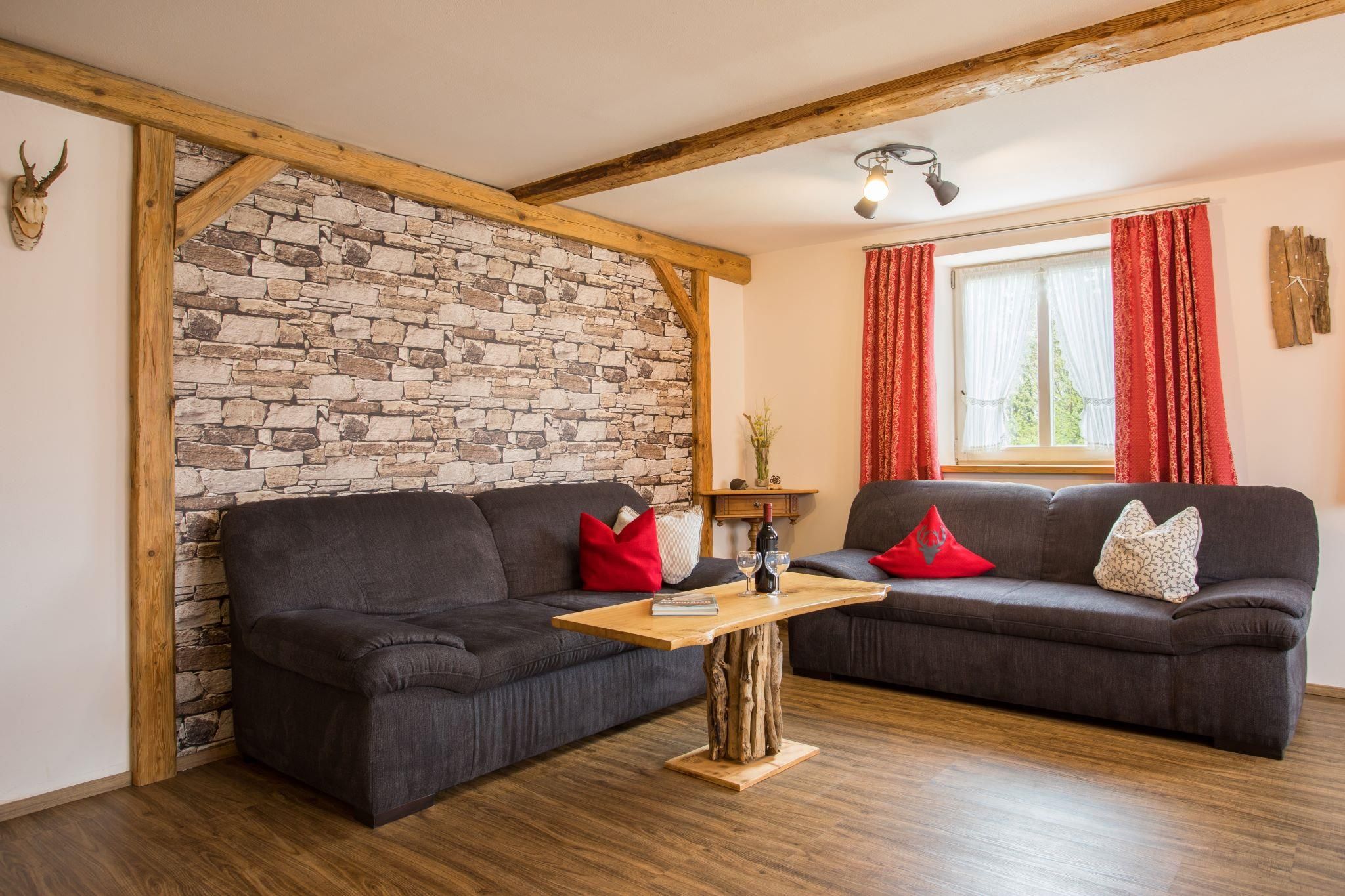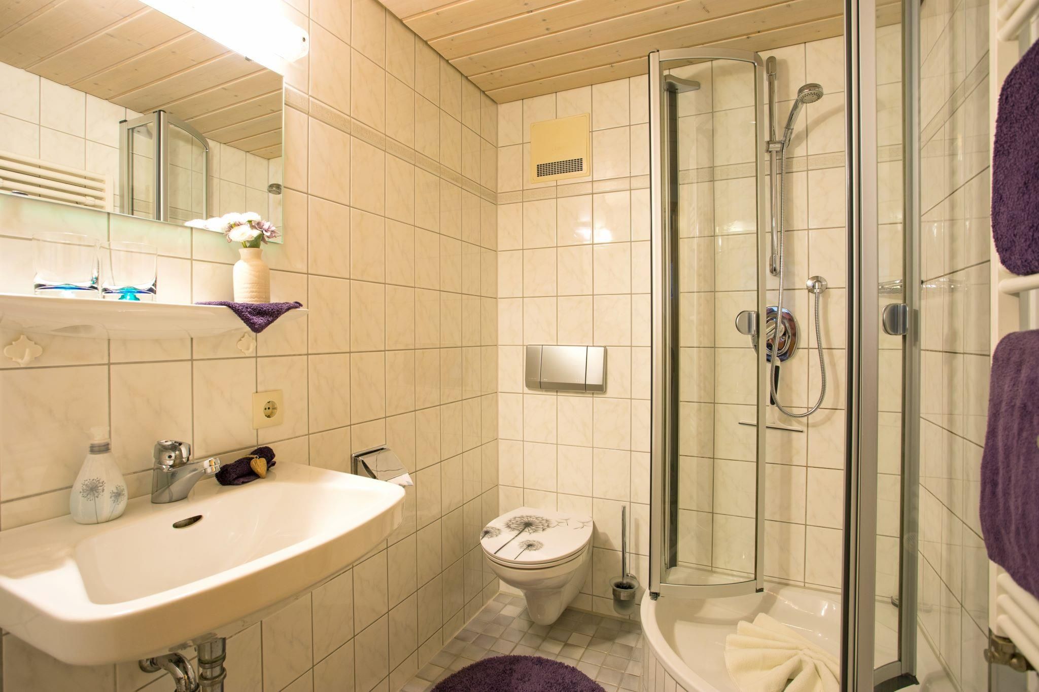 Unsere neu renovierte, helle und sonnige 3-Zimmer-Ferienwohnung Alpspitz (65 qm) ist bestens geeignet für 4 Personen. Es gibt zwei Schlafzimmer. Das Elternschlafzimmer mit Zirbenwand ist mit einem Doppelbett ausgestattet. Eine Liege oder ein Kinderbett kann noch hinzugestellt werden. Im großen Kinderschlafzimmer gibt es zwei Einzelbetten und eine Schlafcouch (140x200cm). Die gemütliche Wohnküche mit komplett ausgestatteter Küchenzeile (Spülmaschine, Kühlschrank, Backofen, Kaffeemaschine, Wasserkocher, Toaster, Eierkocher etc.), großer Essgruppe, Couch, Radio und Sat-TV lädt zum Verweilen ein. Das Badezimmer mit Dusche und WC rundet das Gesamtbild ab. WLAN, Parkplatz, Bettwäsche und Handtücher stehen Ihnen kostenfrei zur Verfügung.