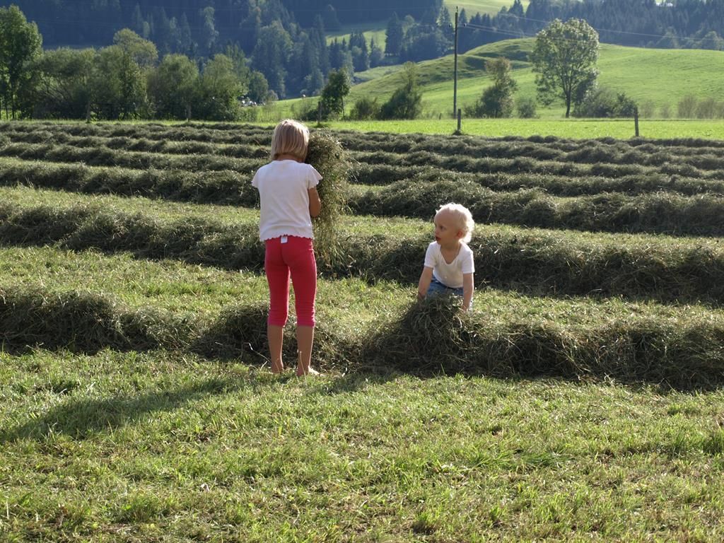 Unsere Sonnenterrasse bietet den perfekten Ort zum Entspannen, während die Kinder auf der großen Spiel- und Liegewiese herumtollen.