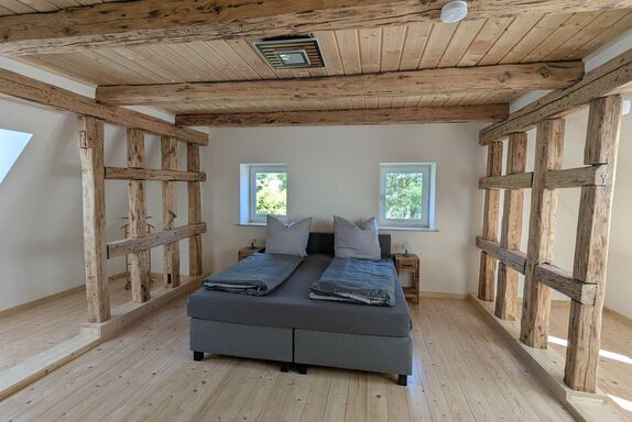 Der Martinihof ist ein seit Generationen in Familienhand bewirtschafteter Bauernhof. Seit jeher liegt uns ein verantwortungsvoller Umgang mit unserer Umwelt sehr am Herzen, daher ist unser Hof bereits seit 1995 nach den strengen Kriterien von Bioland zertifiziert. Der Schwerpunkt unserer Arbeit liegt auf dem Erhalt unserer artenreichen Kulturlandschaft - unsere Flächen sollen seltenen und bedrohten Tier- und Pflanzenarten Lebensraum bieten. Von 2023 bis 2025 haben wir die Alte Schmiede in Geuser - 5 km von unseren Hauptflächen - saniert und zu einem Ferienhaus mit zwei Ferienwohnungen umgebaut. Das Frankenwaldhaus von 1848 ist als Wahrzeichen Geusers ein bekanntes Ausflugsziel gewesen und hat es sogar auf Postkarten geschafft. Wir haben den Charakter des Hauses bewahrt, dieses modernisiert, auf Basis von Holzfasern nach neuestem Stand gedämmt und mit Photovoltaik, Wärmepumpe und Fußbodenheizung ausgerüstet. In jeder Wohnung steht ein Holzofen zur Beifeuerung bereit. Genießen Sie den Frankenwald in einem historischen Gebäude, modernisiert mit neuester Technologie! Wir freuen uns auf Ihren Besuch! Gerne können Sie auch unsere Bauernhoftiere in Mittelberg besuchen :)