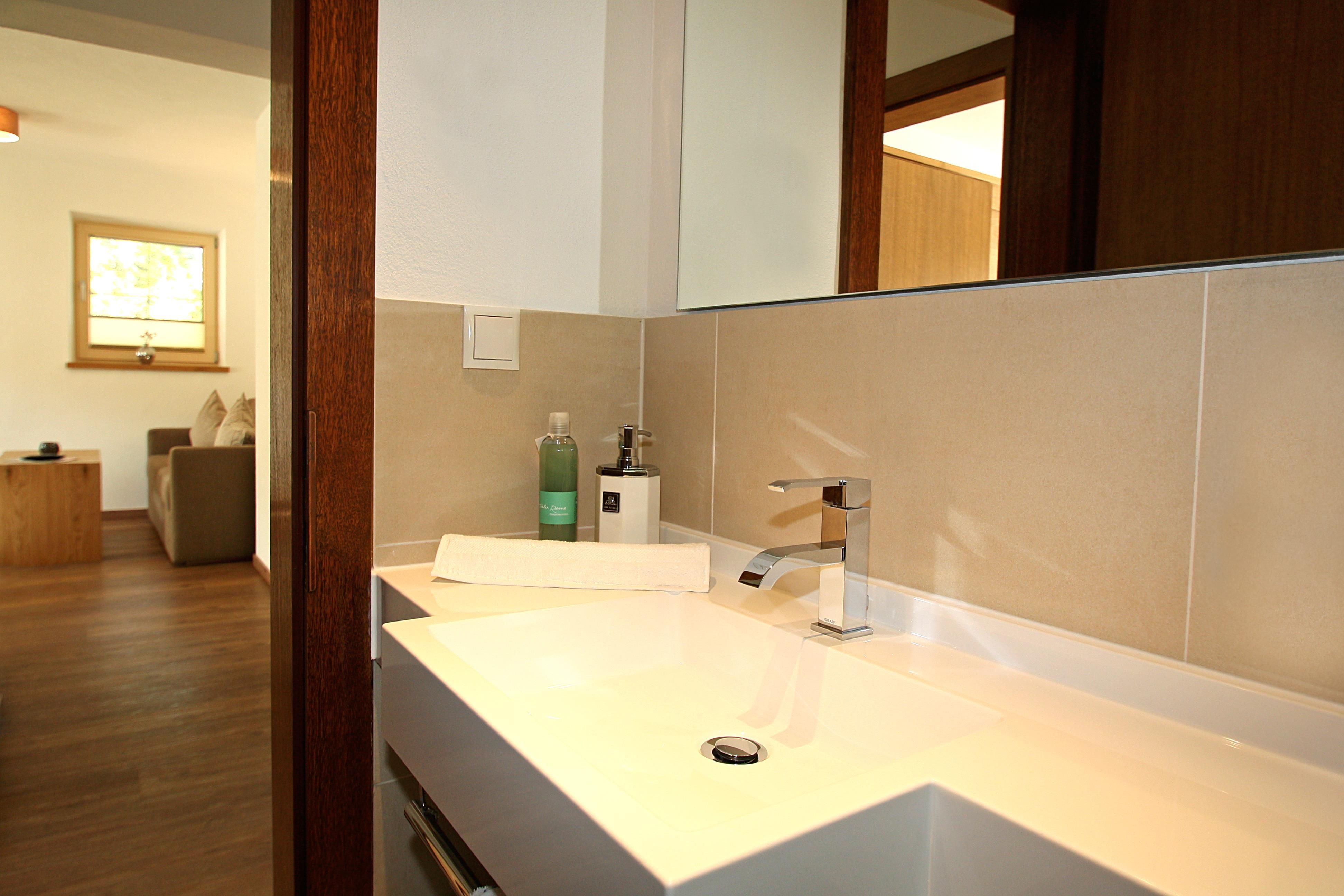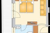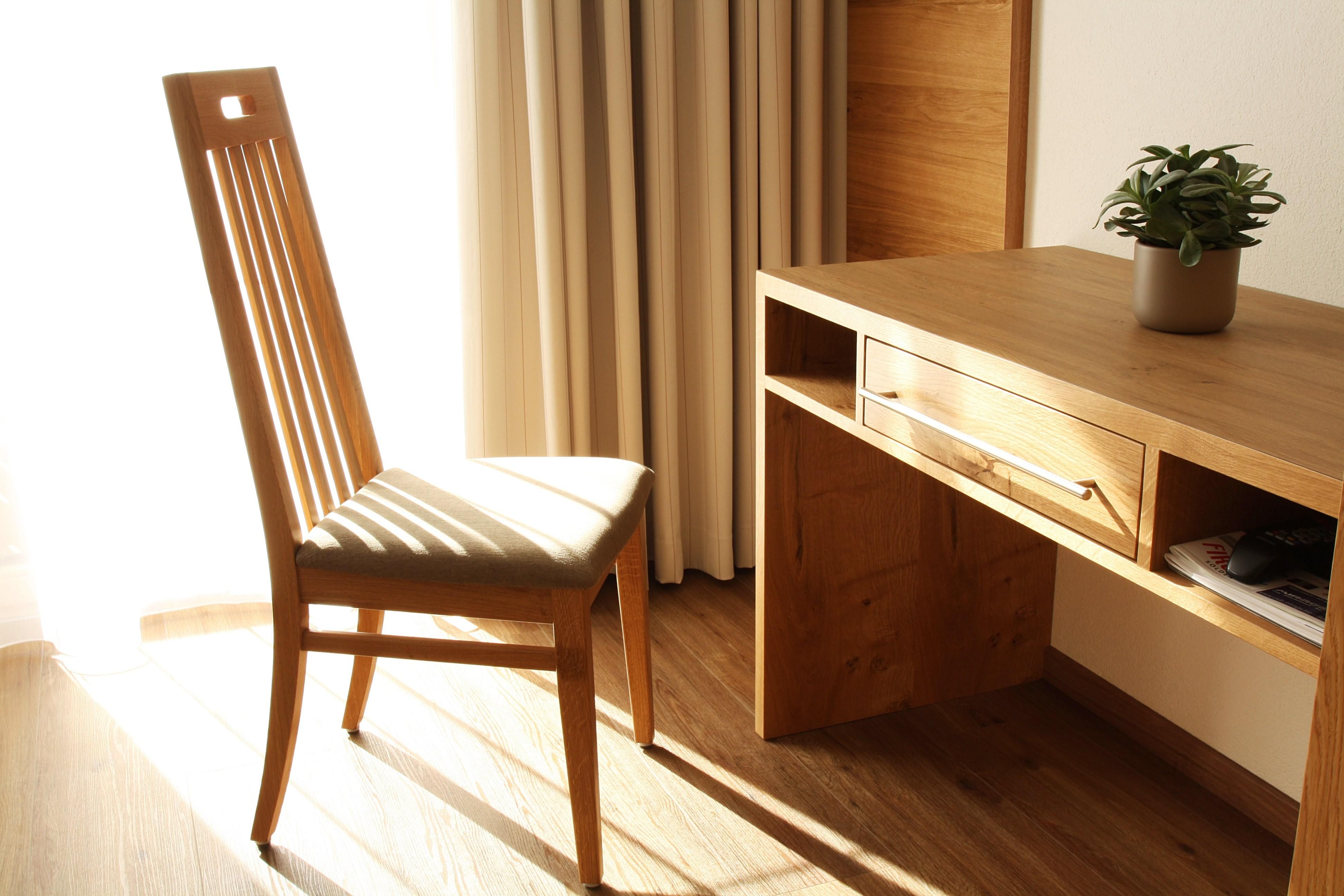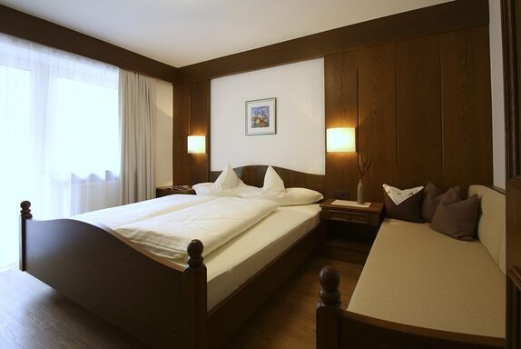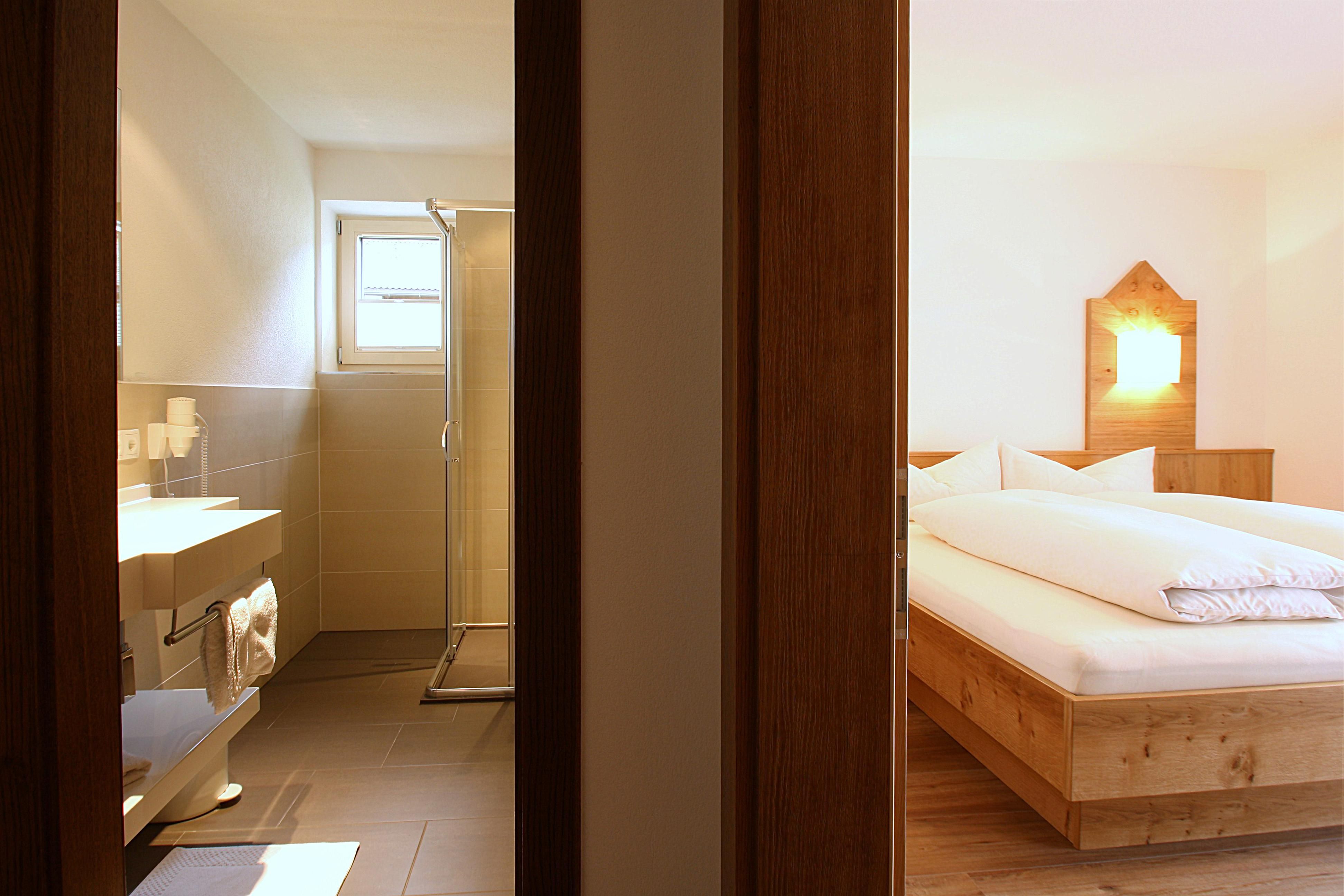 Gemütlich eingerichtetes Komfort-Doppelzimmer im 1. Stock mit Massivmöbeln und Holzboden, Dusche/WC, Haarfön, Handtuchtrockner, Flachbild-Sat TV mit internationalen Programmen, Schreibtisch, Sofa, großzügiger Balkon. Größe ca. 20 m²