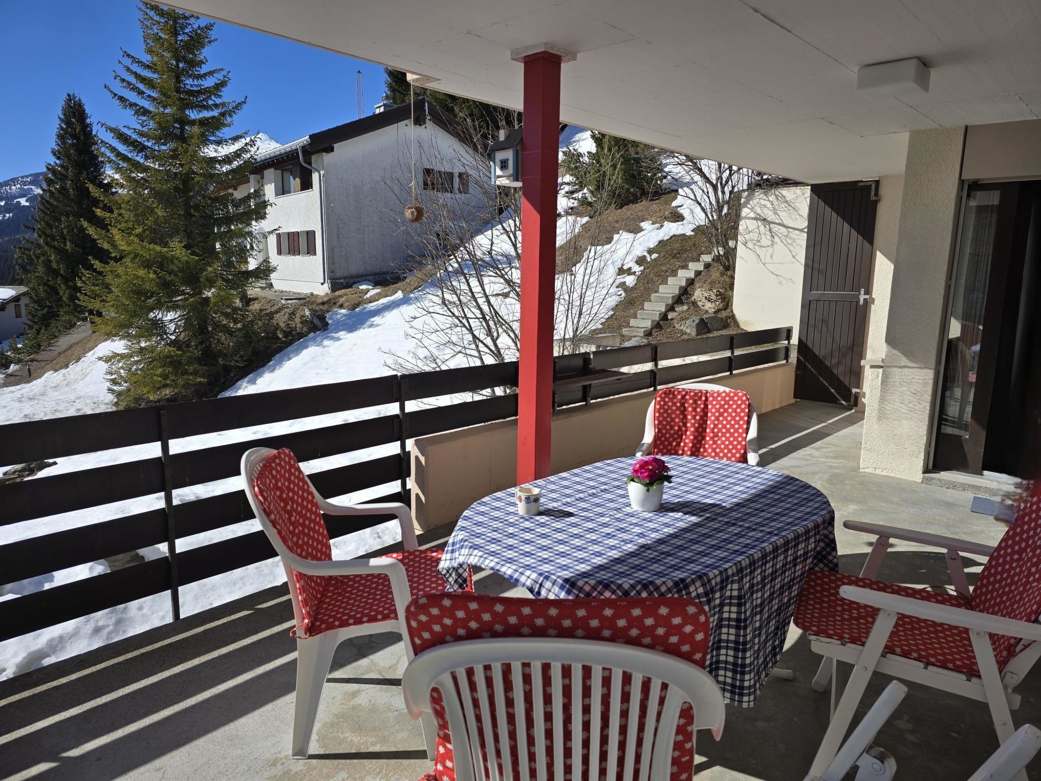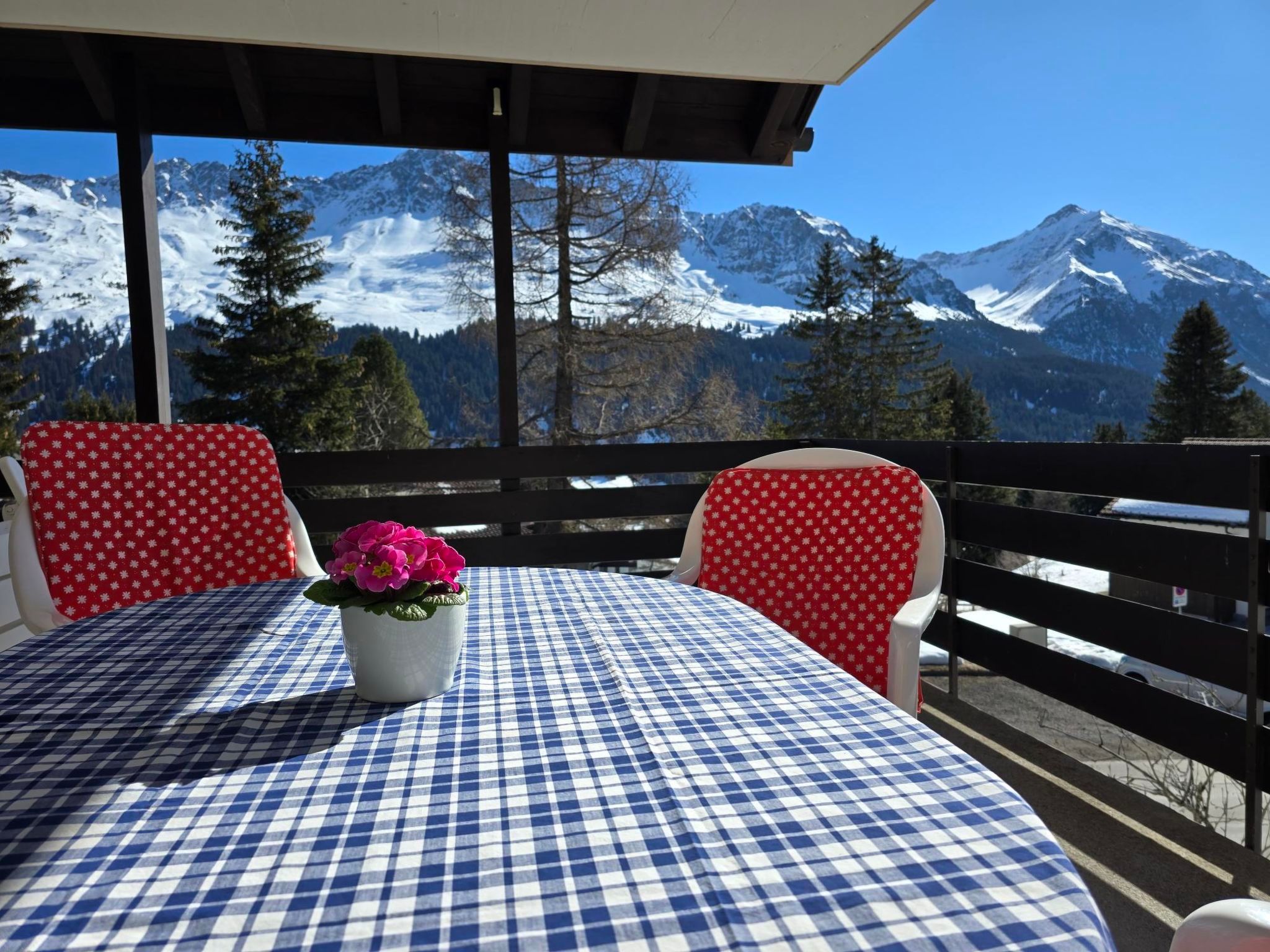 100 m2. Weitere Angaben des Anbieters: Ferienwohnung Barlangia Hoijer in Valbella – sonnig, ruhig und mit herrlichem Blick auf die Bergwelt. Im Winter kann man direkt von der Piste auf Skiern bis zum Haus fahren. Gemütliche 4.5-Zimmerwohnung mit herrlichem Blick auf die Bergwelt. Idealer Ausgangspunkt für Wanderungen und Biketouren im Sommer. Mit sonniger Terrasse, Garage und Aussenparkplatz. Infrastruktur: Eigene Garage mit Platz für Auto und Fahrräder, Skiraum mit Skischuhtrockner, Waschmaschine und Tumbler im Haus. Die Wohnung verfügt über drei separate Schlafzimmer – zwei mit Doppelbett, eines mit Etagenbett – und bietet Platz für Familien oder kleine Gruppen. Ein grosszügiges, gemütliches Wohnzimmer mit offener, top ausgestatteter Küche lädt zum Verweilen ein. Beide Bereiche haben direkten Zugang zur grossen, sonnigen Terrasse mit Südost-Ausrichtung und einem fantastischen Blick auf die Bergkulisse. Badezimmer und WC sind getrennt. Zur Ausstattung gehören eine eigene Garage, ein zusätzlicher Aussenparkplatz, ein Skiraum mit Skischuhtrockner sowie eine Waschküche zur Mitbenutzung. - Garage und Aussenparkplatz inklusive - Kostenfreie Nutzung Waschmaschine/Tumbler - Im Bettwäschenpreis sind die Handtücher und Küchenwäsche inkludiert.