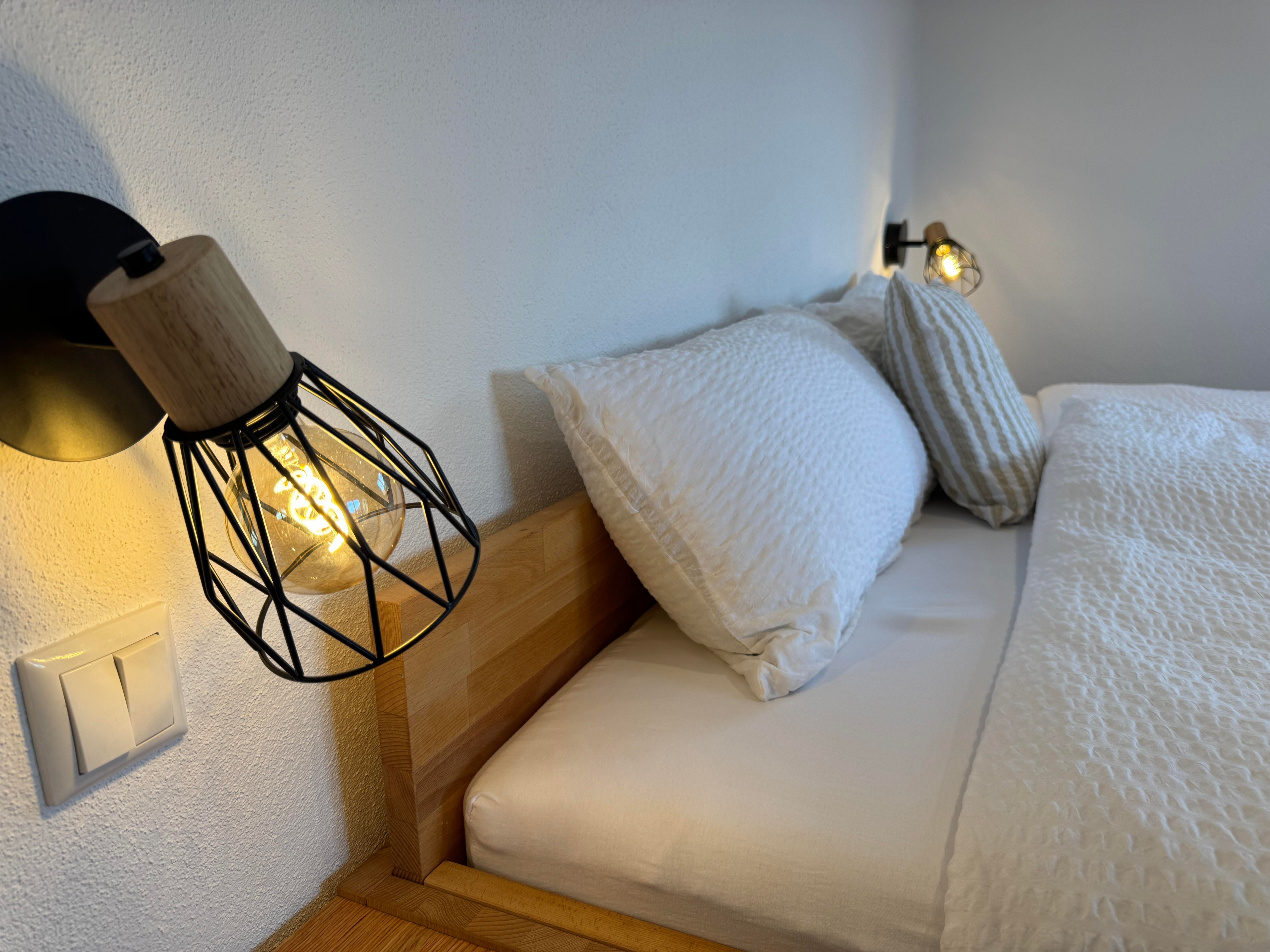 Die zwei Schlafzimmer verfügen über große Doppelbetten (180x200cm / 180x220cm), Spiegel, Schrank/Kommode und Sitzmöglichkeit sowie Rollläden und Insektenschutz an den Fenstern. Bettwäsche wird gestellt und ist im Preis enthalten. Eines der Schlafzimmer hat Zugang zum Balkon und kann mit einem Wickelaufsatz für Babys soie einm Babybett ausgestattet werden.