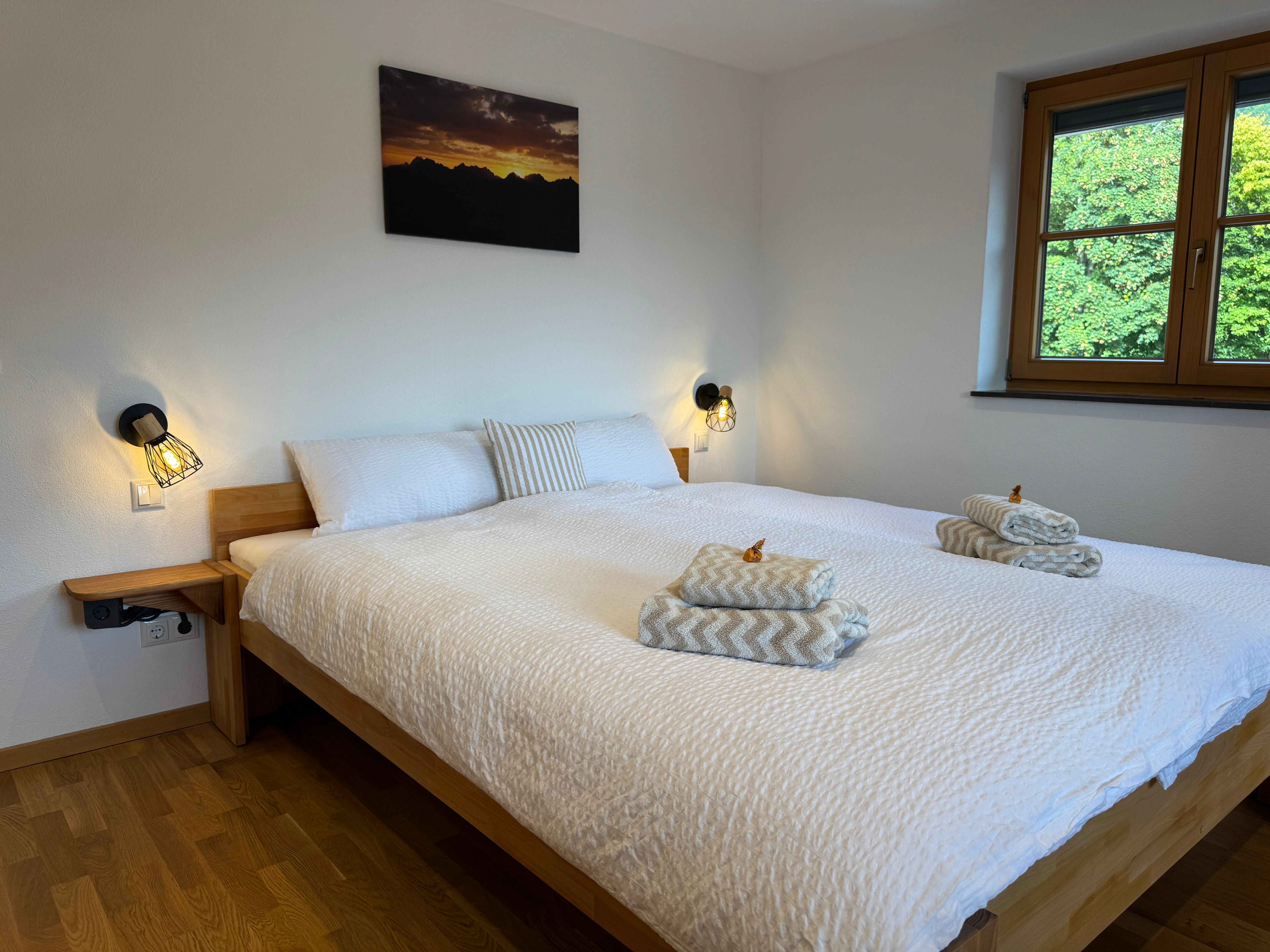 Die 2021 kernsanierte Wohnung im 1.OG bietet neben Weiherblick auch Alpenpanorama und Postkartenaussicht. Ruhig am Ortsrand von Burgberg gelegen, gelangt ihr zu Fuß schnell in die Ortsmitte mit Restaurants, Bäcker, Metzger und Lebensmittelgeschäft - Oder auch ins grüne Agathazeller Moos, auf den Weinberg, das Burgberger Hörnle und den Grünten. Bei uns könnt ihr direkt Loswandern oder die Umgebung mit dem Rad erkunden.