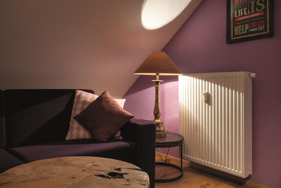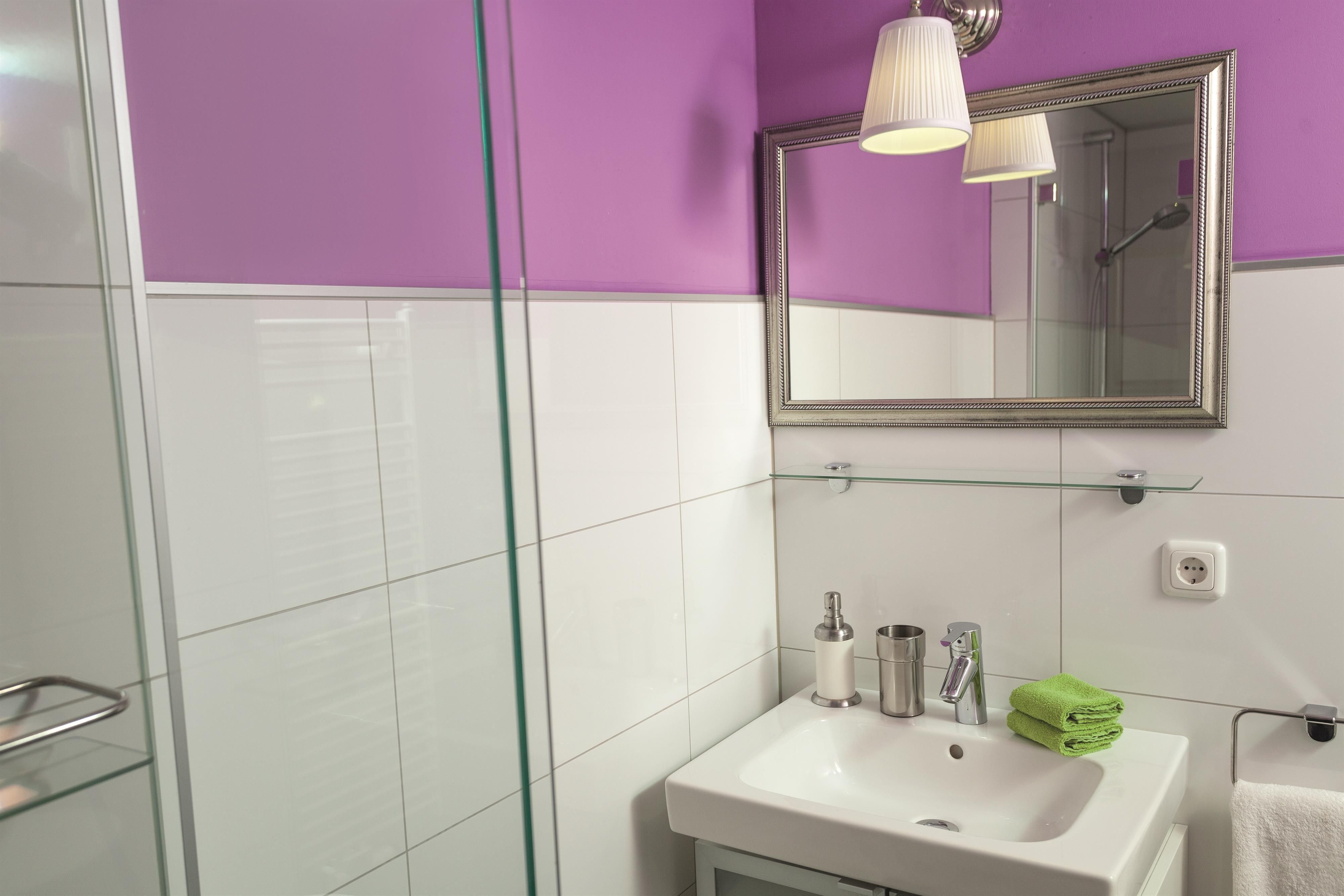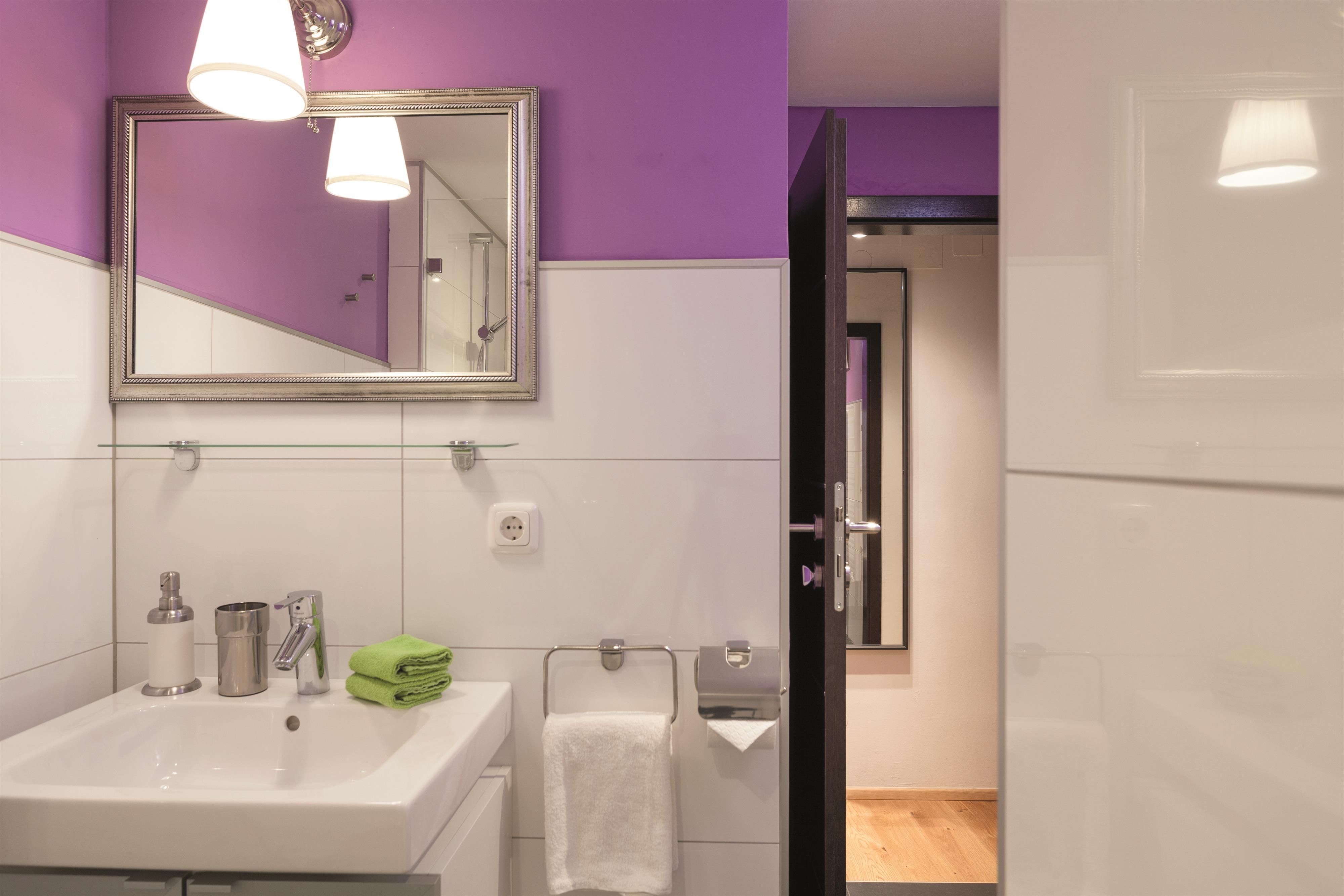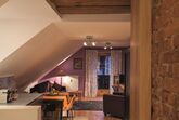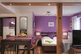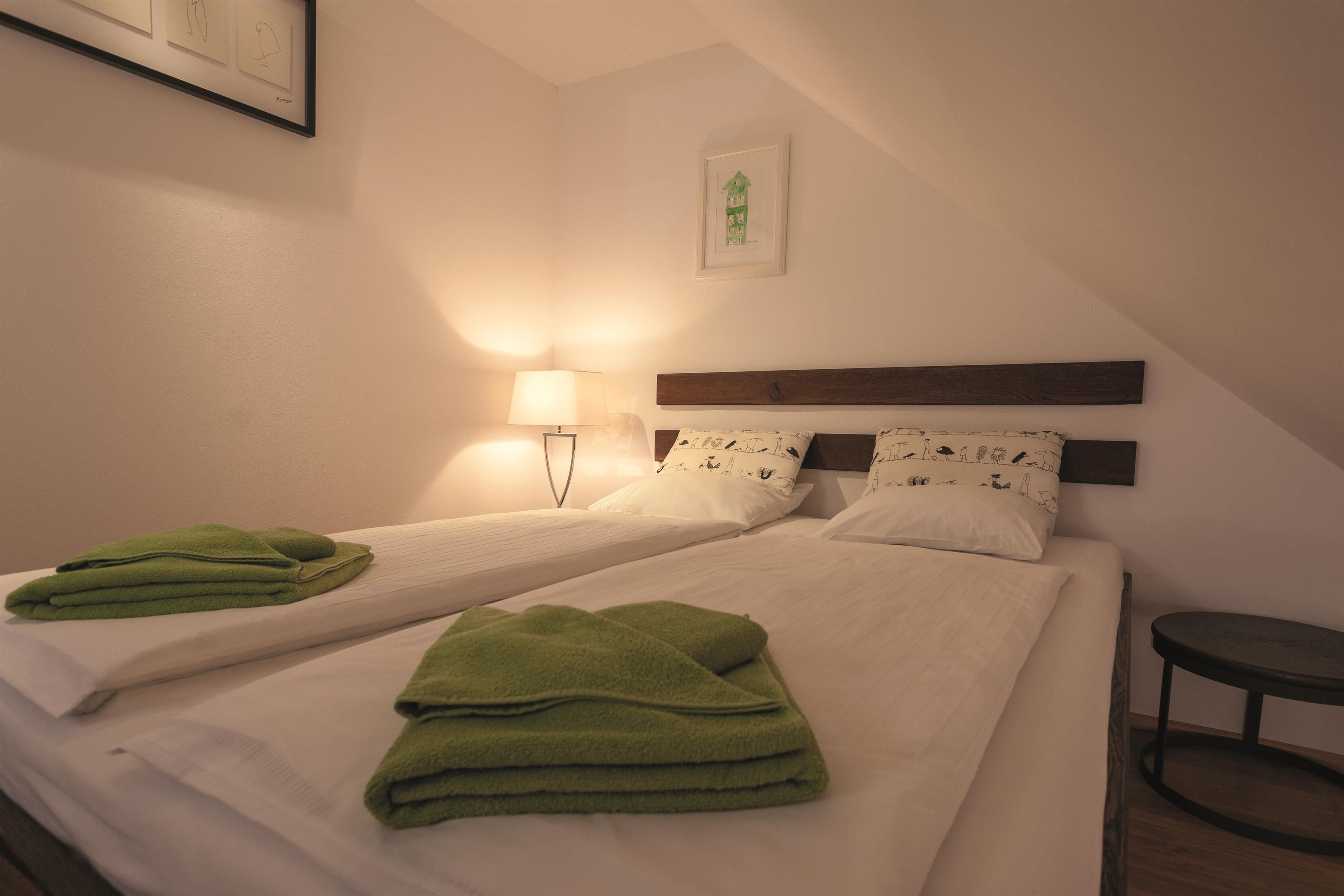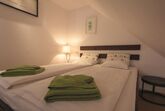 Im 3. Stock bietet das Studio-Apartment auf 35 m² Platz für bis zu vier Personen. Es verfügt über ein Doppelbett und ein Schlafsofa sowie eine kleine Küchenzeile und einen Essbereich. Der Balkon bietet Aussicht auf die Altstadt. Außerdem gehört ein privates Badezimmer zur Ausstattung.
