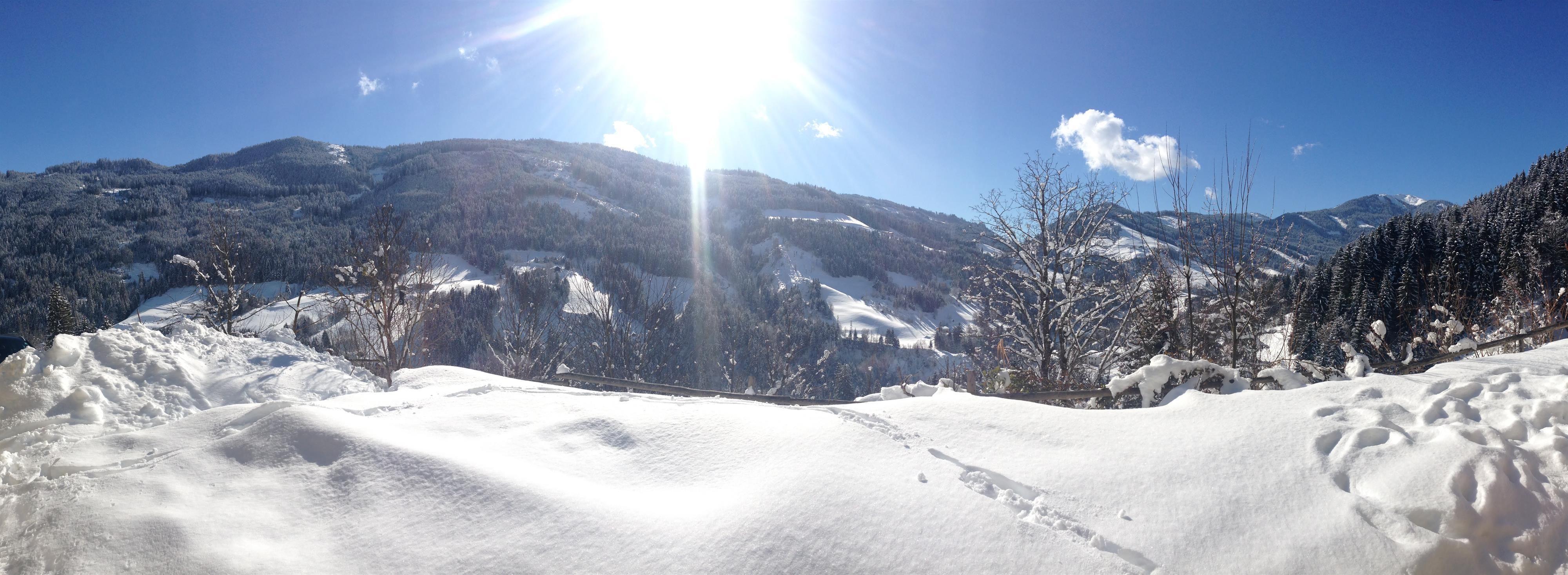 Unser Appartement ist auf der Sonnenseite von Mühlbach am Hochkönig, ca. 2,5 km vom Ortskern entfernt, auf einer Anhöhe.