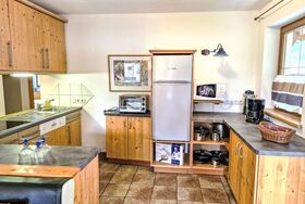 5-Zimmer-Doppelhaushälfte 90 m2 auf 2 Stockwerken, im Obergeschoss. Schön und gemütlich eingerichtet: Eingang. Obergeschoss: 1 Doppelzimmer. 1 Zimmer mit 2 Betten. Wohnküche (Geschirrspüler, 4 Glaskeramikplatten, Wasserkocher, Mikrowelle, Tiefkühler, elektrische Kaffeemaschine) mit Esstisch und TV (Flachbildschirm). Ausgang zum Balkon. Sep. WC, Bad/Dusche/WC, Doppelwaschbecken. Heizung. Dachgeschoss: 1 Doppelzimmer. Wohnküche (2 Kochplatten, Mikrowelle, elektrische Kaffeemaschine) mit 1 Bett, Essecke und TV (Flachbildschirm). Sehr schöne Sicht auf die Berge und die Landschaft. Zur Verfügung: Kinderhochstuhl, Haartrockner. Internet (WLAN, gratis).