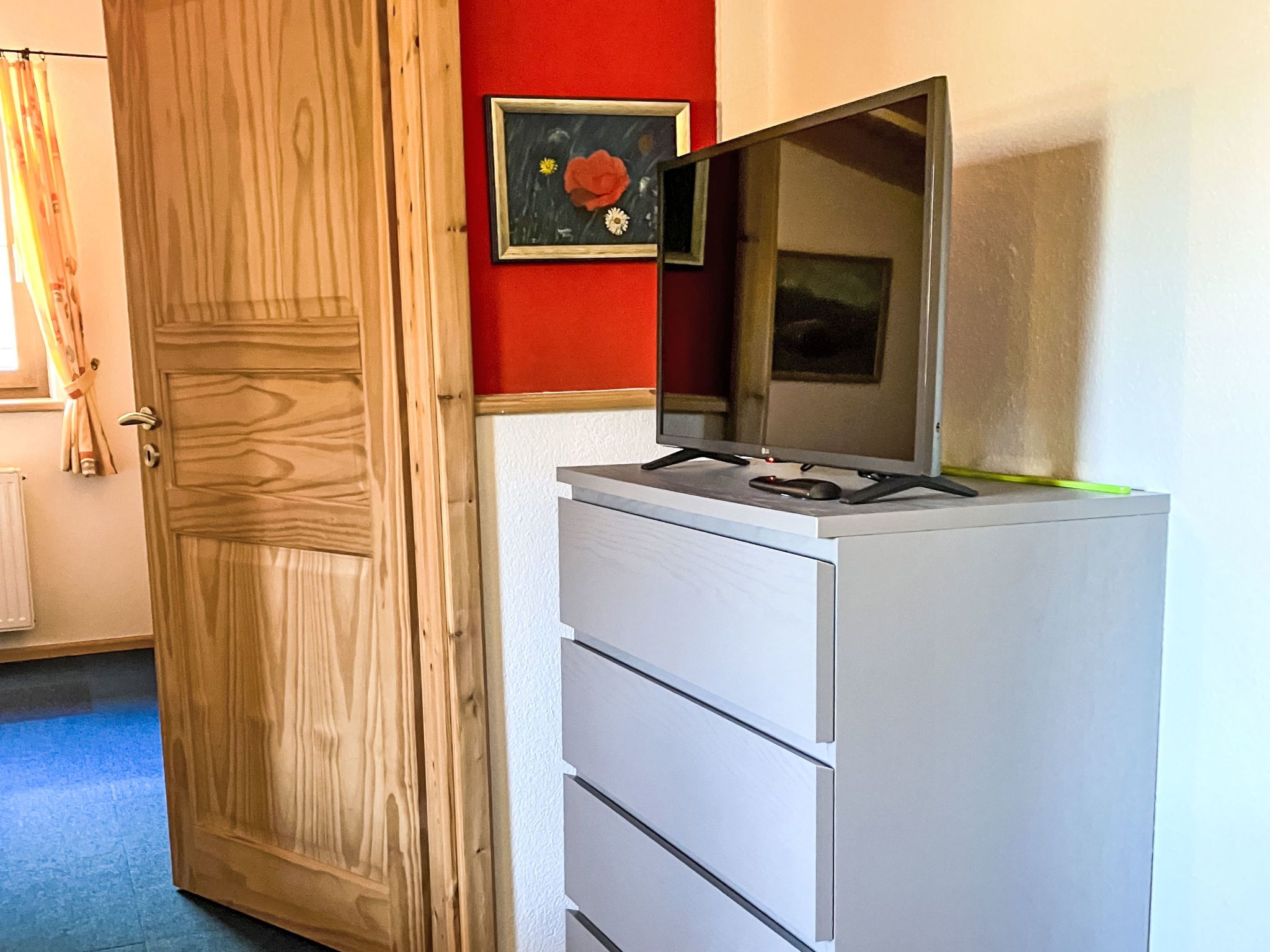 Apart 2, 2-Zimmer-Wohnung 30 m2, im Dachgeschoss. Schön und gemütlich eingerichtet: Eingang. 2. Obergeschoss: 1 Doppelzimmer. Wohnküche (2 Kochplatten, Wasserkocher, Mikrowelle, elektrische Kaffeemaschine) mit 1 Bett, Esstisch und TV (Flachbildschirm). Dusche/WC. Heizung. Komfortable Einrichtung im Landhausstil. Schöne, auf die Berge und die Ortschaft. Zur Verfügung: Kinderhochstuhl, Haartrockner. Internet (WLAN, gratis).