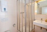 Im modernen, hellen Duschbad hält der Heizkörper warme Handtücher für Sie bereit.