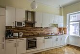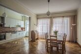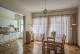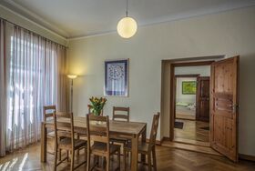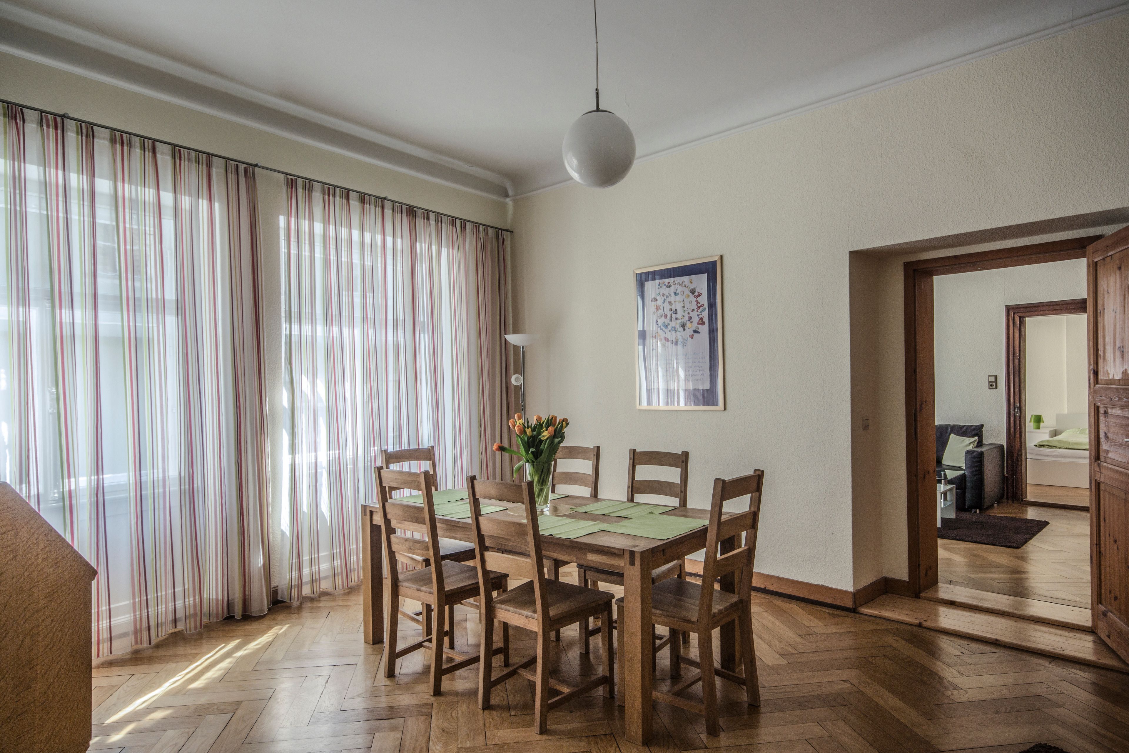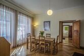 Ein großes, modernes Esszimmer mit offener Küche ist das gemütliche Herzstück dieser Wohnung. Wenn Sie die Geräumigkeit eines Altbaus lieben, werden Sie sich hier wohlfühlen.