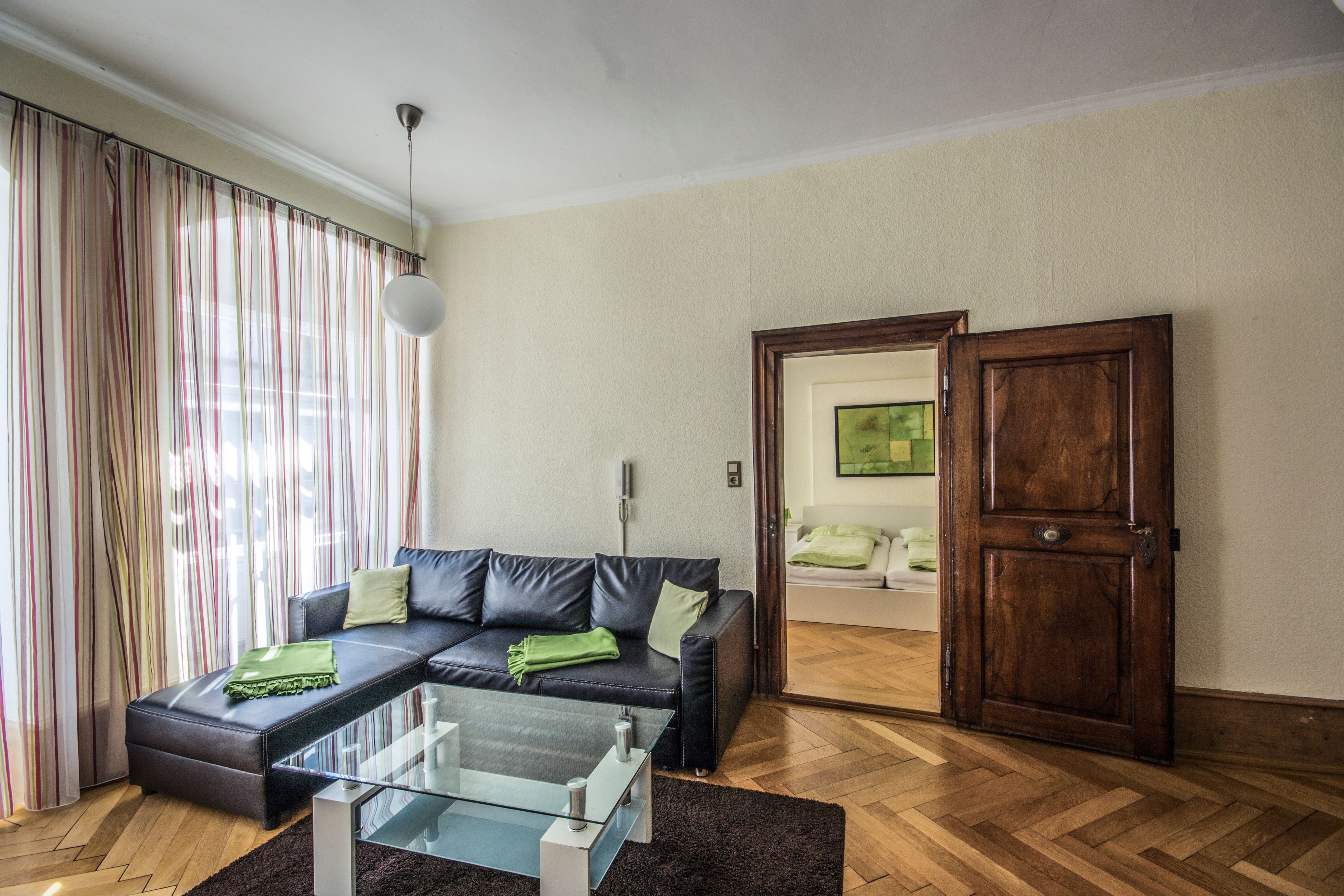 Im Wohnzimmer wartet eine bequeme Eck-Couch auf Sie, die für eine dritte Person zum Schlafen genutzt werden kann - und selbstverständlich zum Lesen, Entspannen, Musikhören oder Fernsehen.
