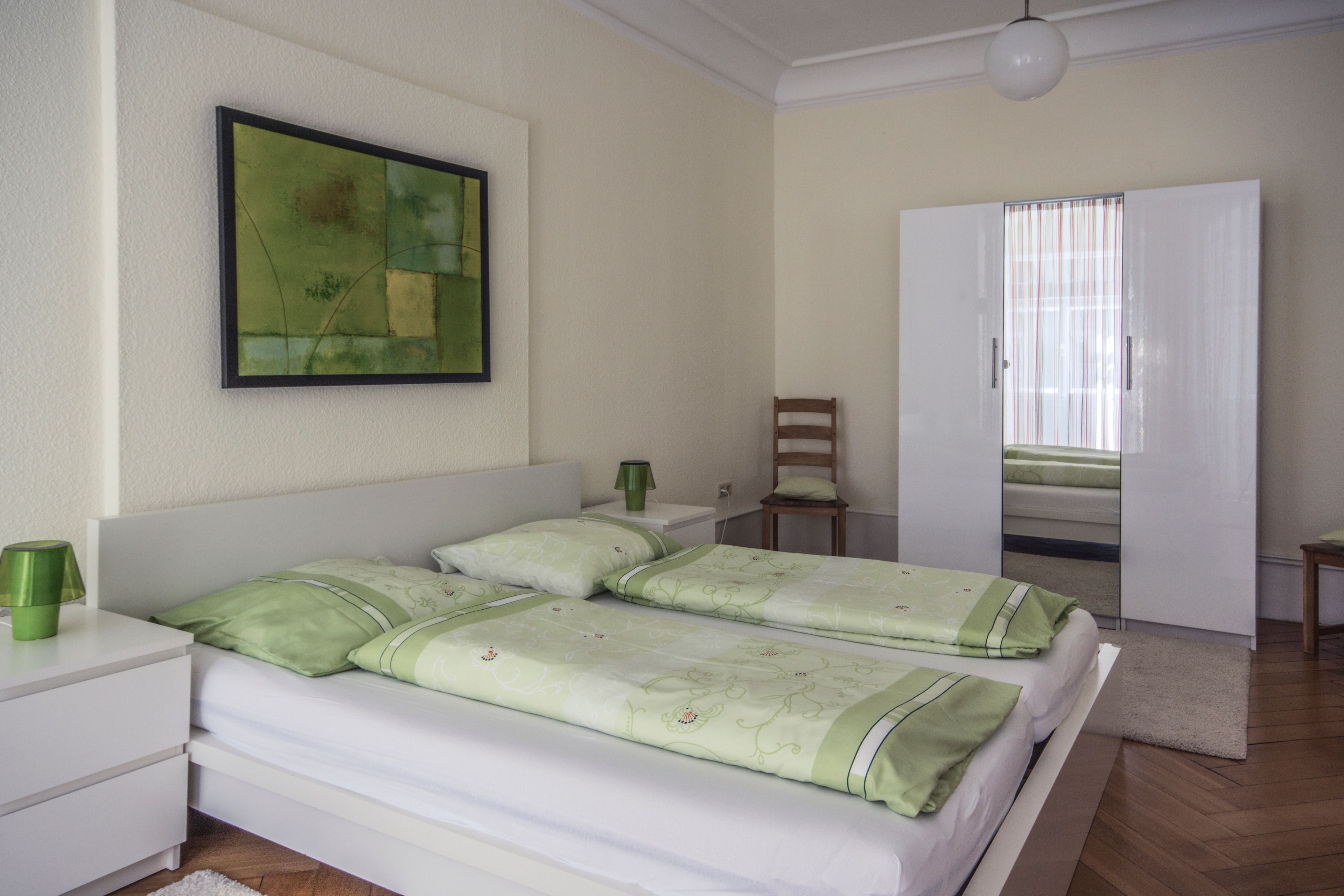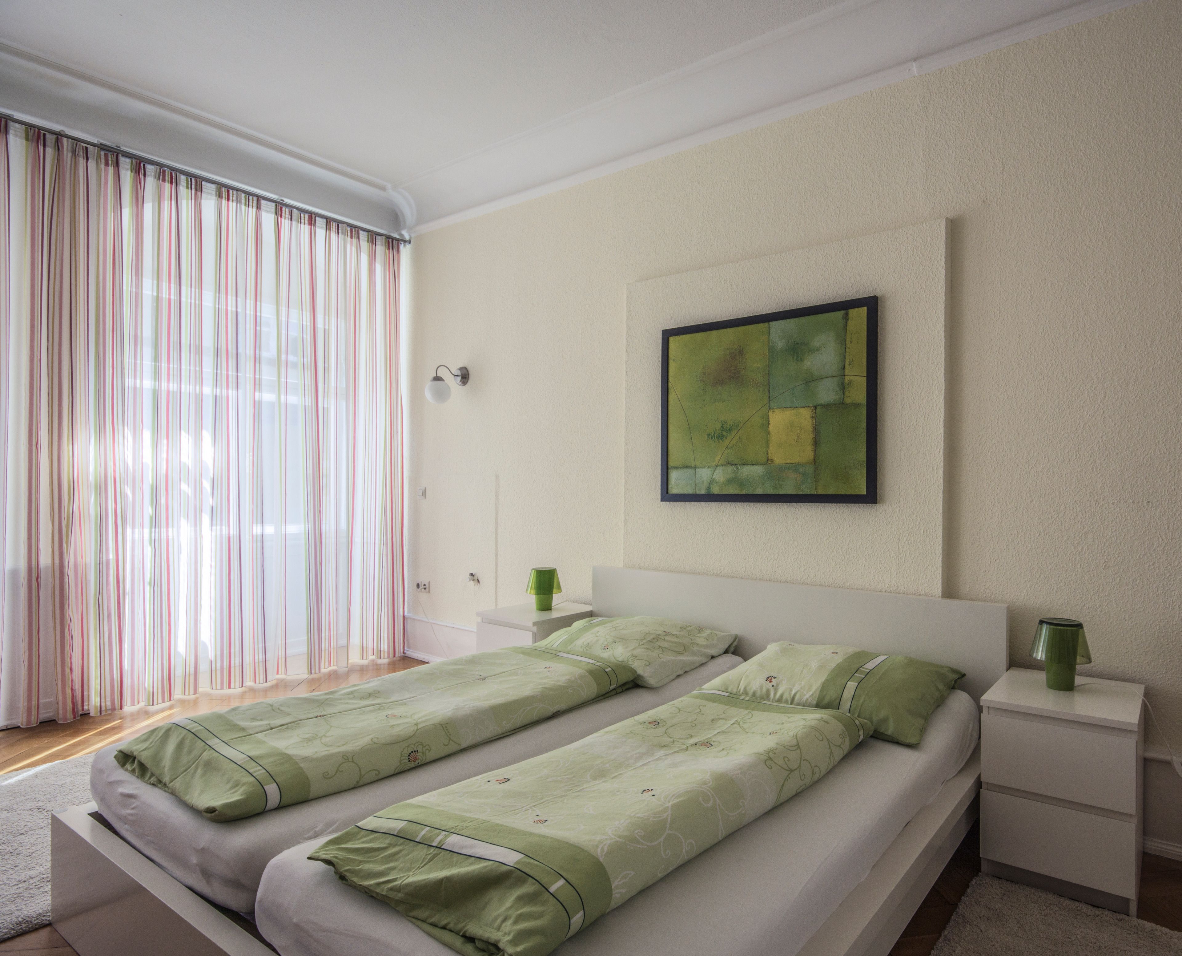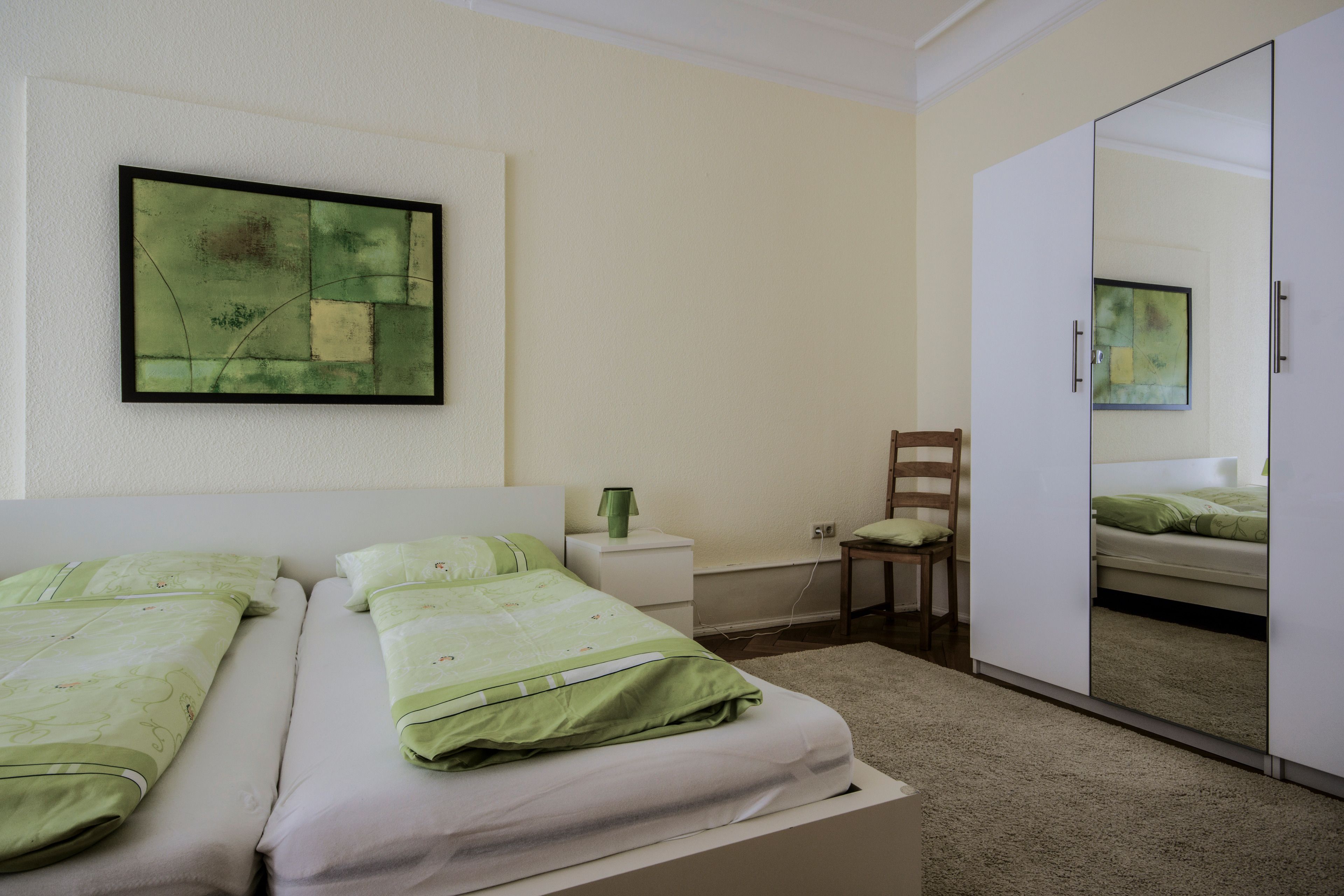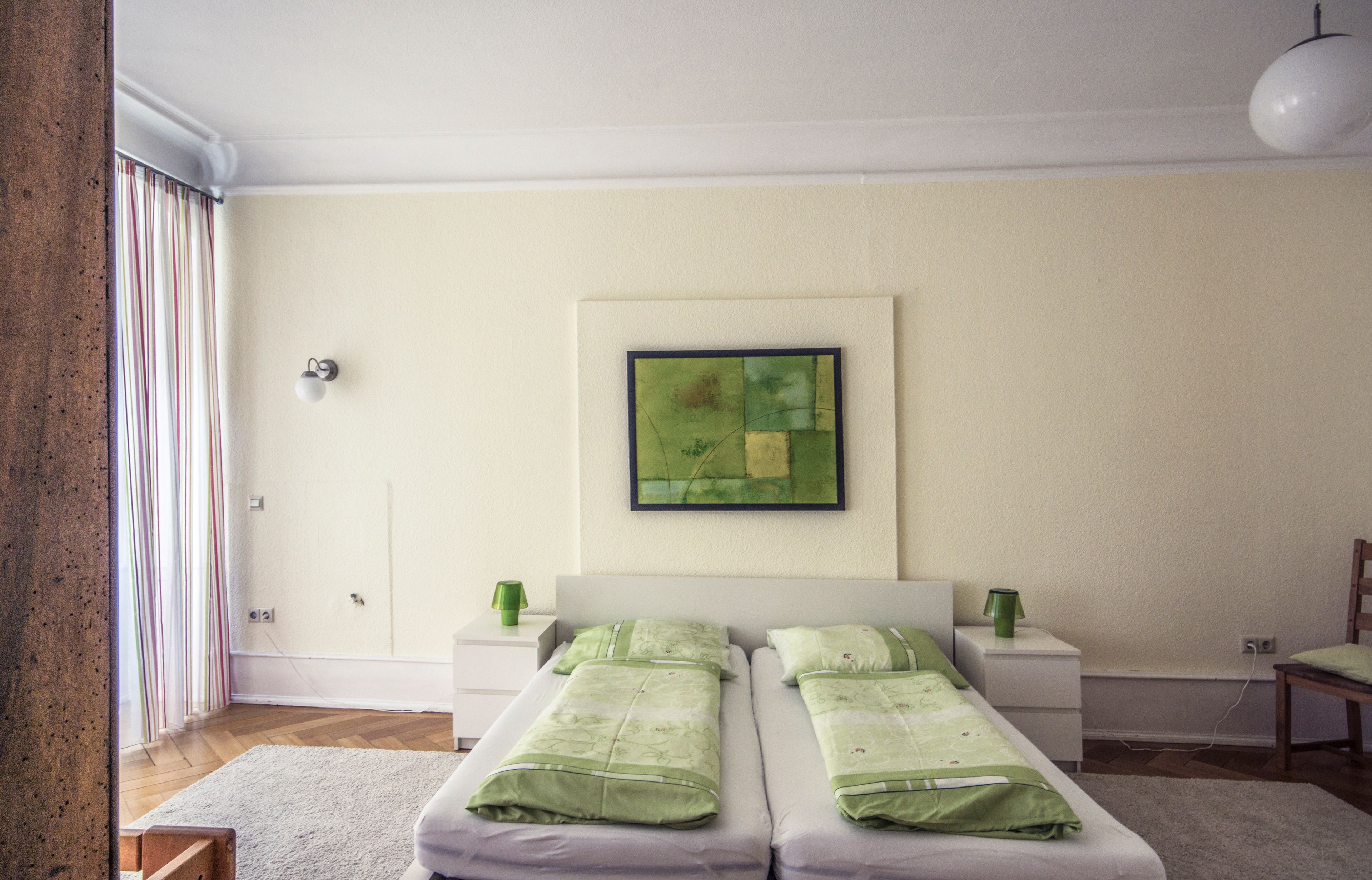 Im Privatbereich erwarten Sie ein wohldimensioniertes Schlafzimmer mit Doppelbett sowie ein modernes Wohlfühlbad mit Duschwanne und Waschmaschine.