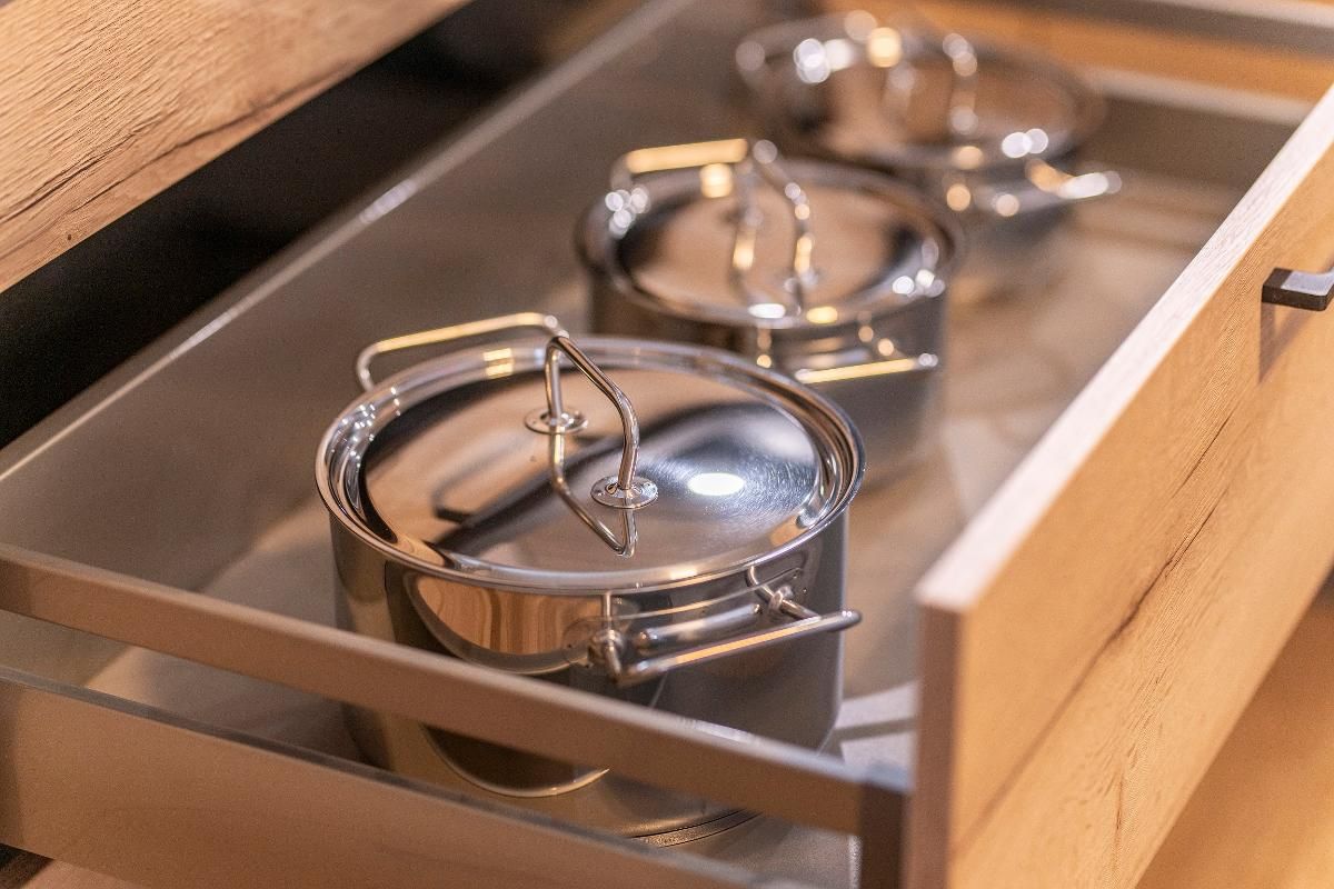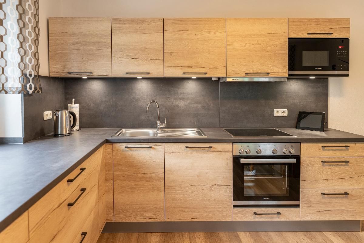 Die großzügige Küche bietet alles, was Sie für einen komfortablen Aufenthalt brauchen: eine gemütliche Sitzgruppe, zahlreiche Elektrogeräte wie Kaffeemaschine, Mikrowelle, Backofen, Cerankochfeld, Eierkocher, Milchaufschäumer, Geschirrspüler, Kühlschrank mit Gefrierfach sowie umfangreiches Geschirr und Küchenzubehör. Für Unterhaltung sorgen ein DAB-Radio und Amazon Alexa.