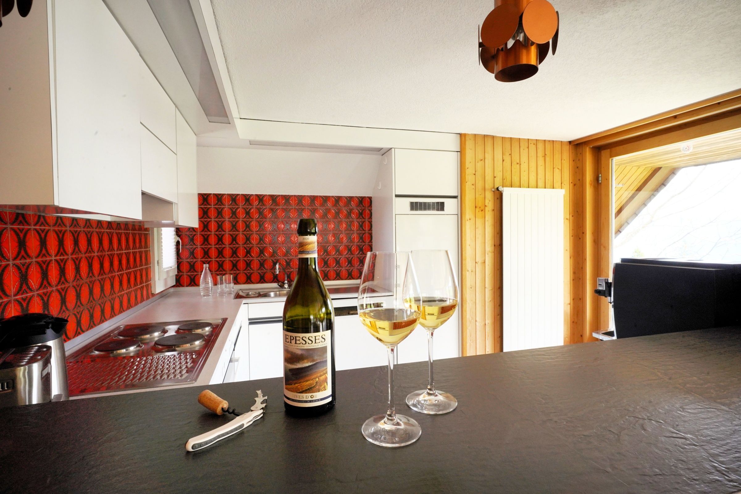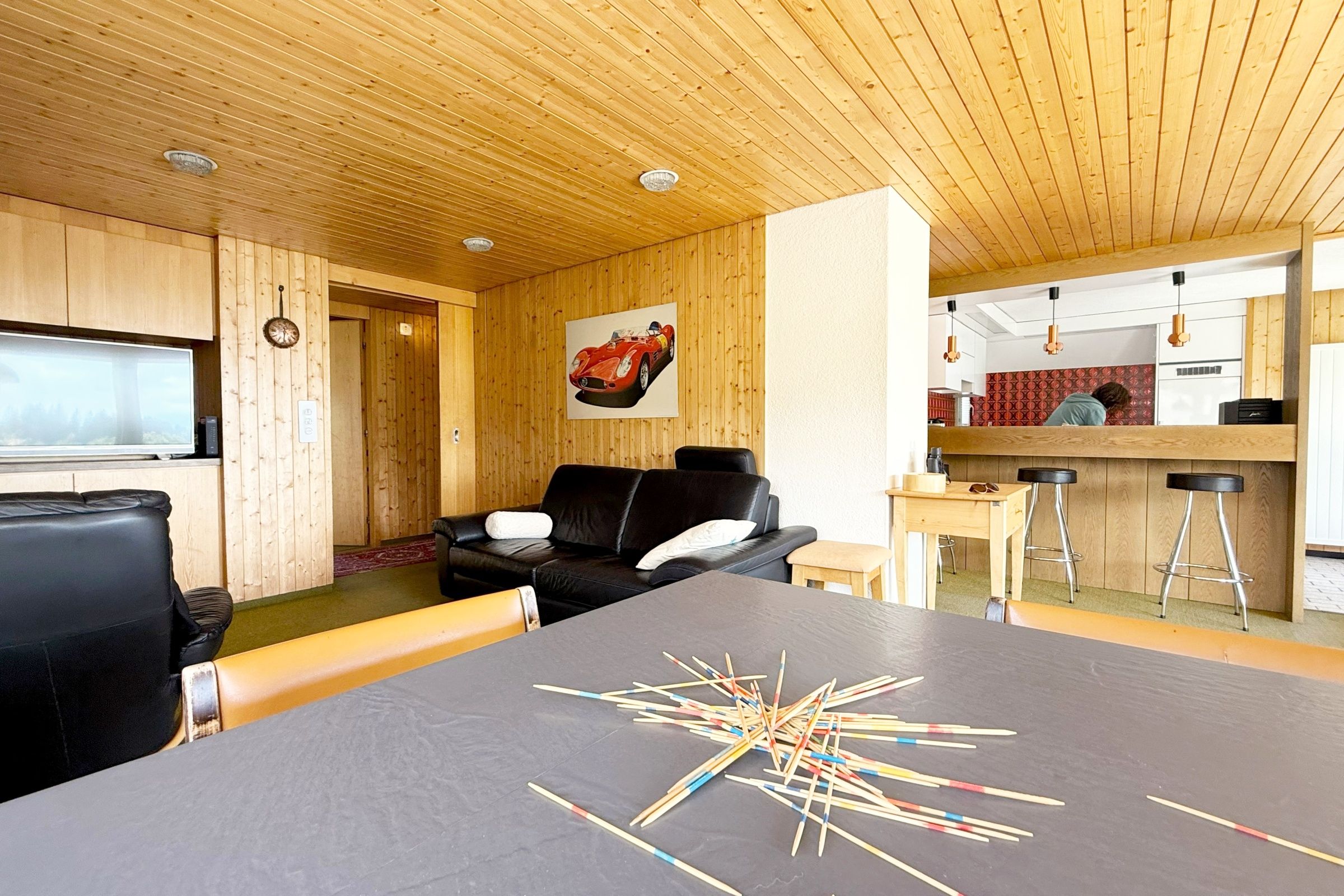 Die Ferienwohnung hat eine Wohnfläche von 82m2 und ist ideal für 4 Personen. Das Wohnzimmer verfügt über ein Sofa, einen Sessel, 2 Sitzsäcke, TV und DVD-Player. Der Essbereich hat einen sehr grossen Esstisch, eine Eckbank und drei Stühle. Die Küche ist mit allem ausgestattet, was man braucht. Zur Wohnung gehört zudem eine Terrasse mit Tisch und Bank. In der ganzen Wohnung steht WLAN kostenfrei zur Verfügung. Im Gebäude ist ein Skiraum mit Schuhtrockner vorhanden. Ebenfalls gibt es einen überdachten Stellplatz für Fahrräder und eine E-Bike-Ladestation, welche kostenlos genutzt werden darf.