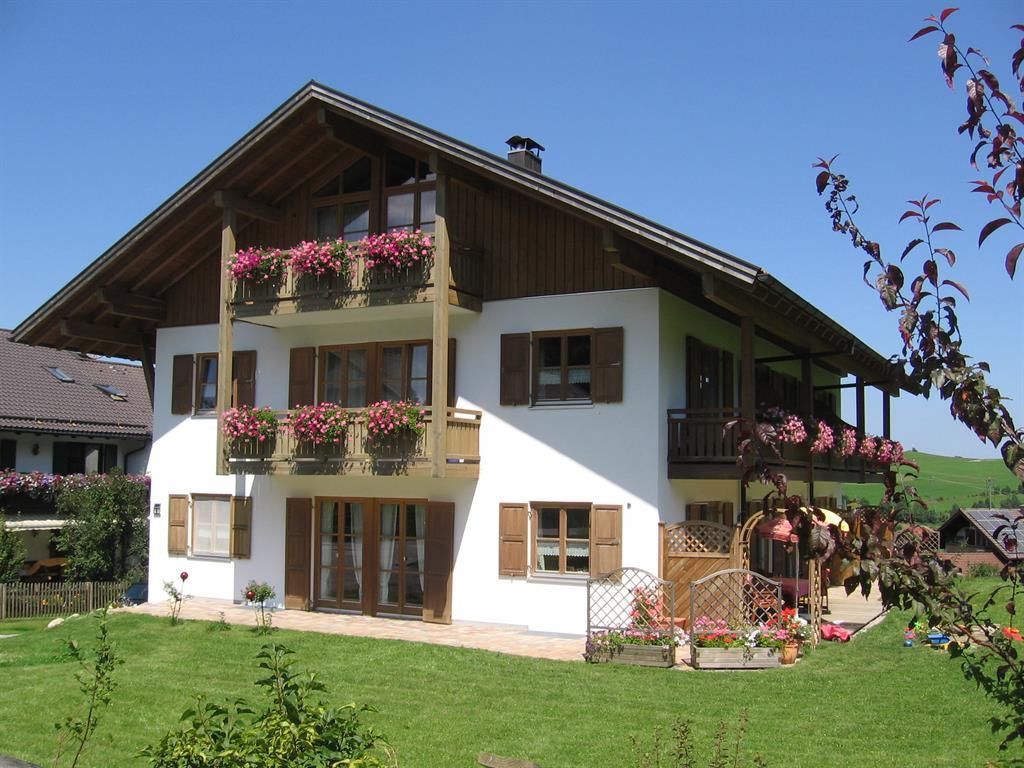 Stilvoll eingerichtete Komfort-Ferienwohnungen für 2-4 Personen. Wohnzimmer mit gemütlicher Sitzecke, Flachbild-Fernseher, komplett eingerichtete Küche mit Herd und Spülmaschine,Eckbank, Schlafzimmer, Dusche/WC, Radio, möblierter Balkon oder-Süd-Terrasse mit wunderbarer Aussicht auf die Berge und die freie Wiese vor dem Haus. Kostenloses WLAN, Große Liegewiese, Parkplätze am Haus