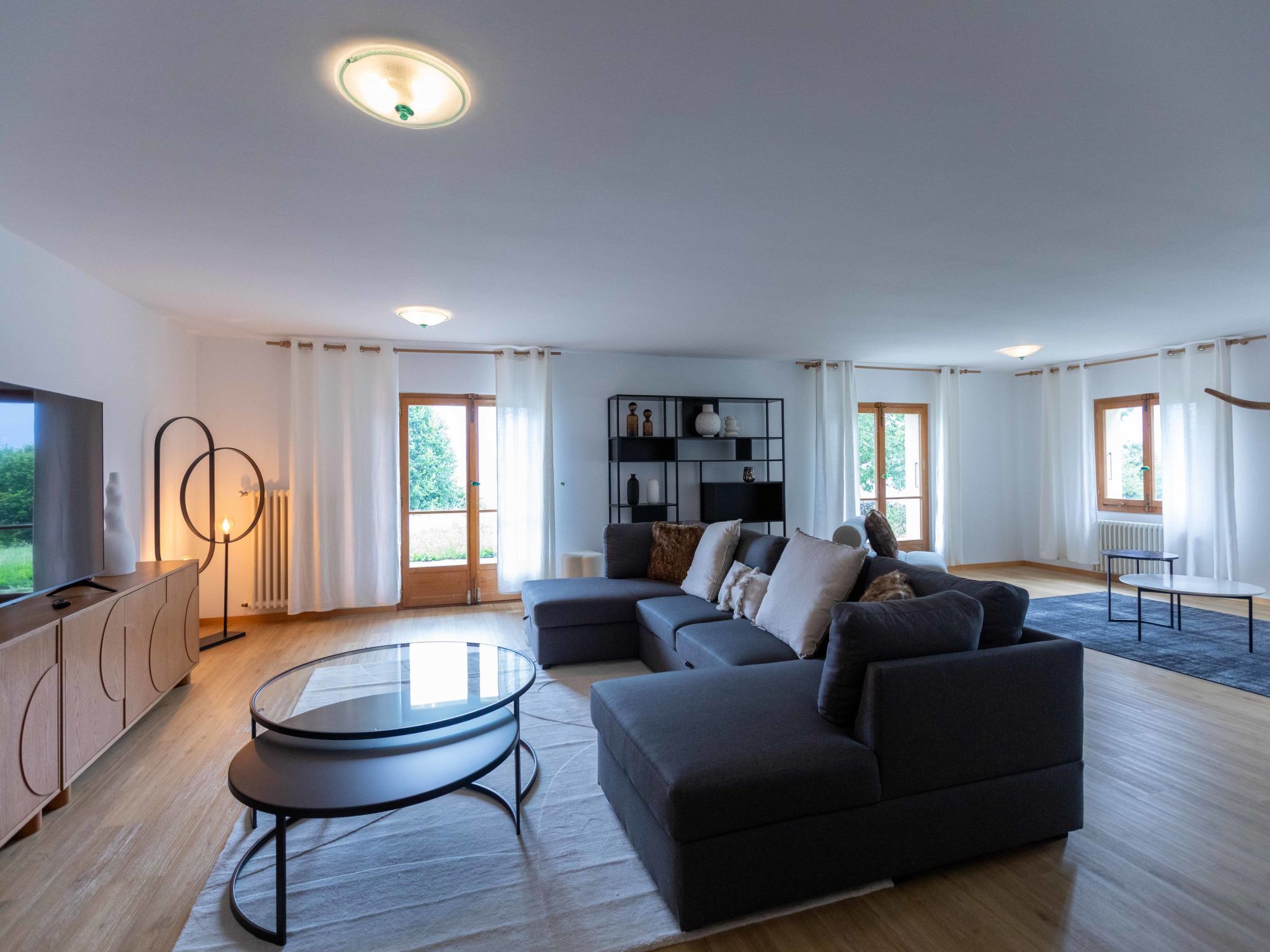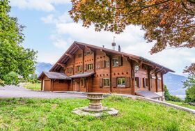 Glutières 7 km von Villars: Sehr grosses, freistehendes, komfortables Chalet Champ de Brent, 773 m.ü.M., auf 3 Stockwerken. Oberhalb von Ollon, alleinstehende, ruhige, sonnige Lage am Hang. Zur Alleinbenutzung: wunderschöner Garten zum Entspannen, Schwimmbad eckig, beheizt, geschützt (14 x 5 m, saisonale Verfügbarkeit: 01.Mai. - 31.Okt.). Im Hause: Zentralheizung, Waschmaschine, Wäschetrockner. Im Winter 4x4 empfohlen. Lebensmittelgeschäft 3.2 km, Supermarkt 7.7 km, Einkaufszentrum 8.9 km, Restaurant 3.2 km, Bäckerei 3 km, Bushaltestelle Glutères 450 m, Bahnstation Olllon 3.4 km, Thermalbad Les Bains de Villars 7.6 km, See Lac Léman 18 km. Golfplatz (18 Loch) 7.7 km, Tennis 8.6 km, Sportzentrum 8.6 km, Gondelbahn 7.7 km.