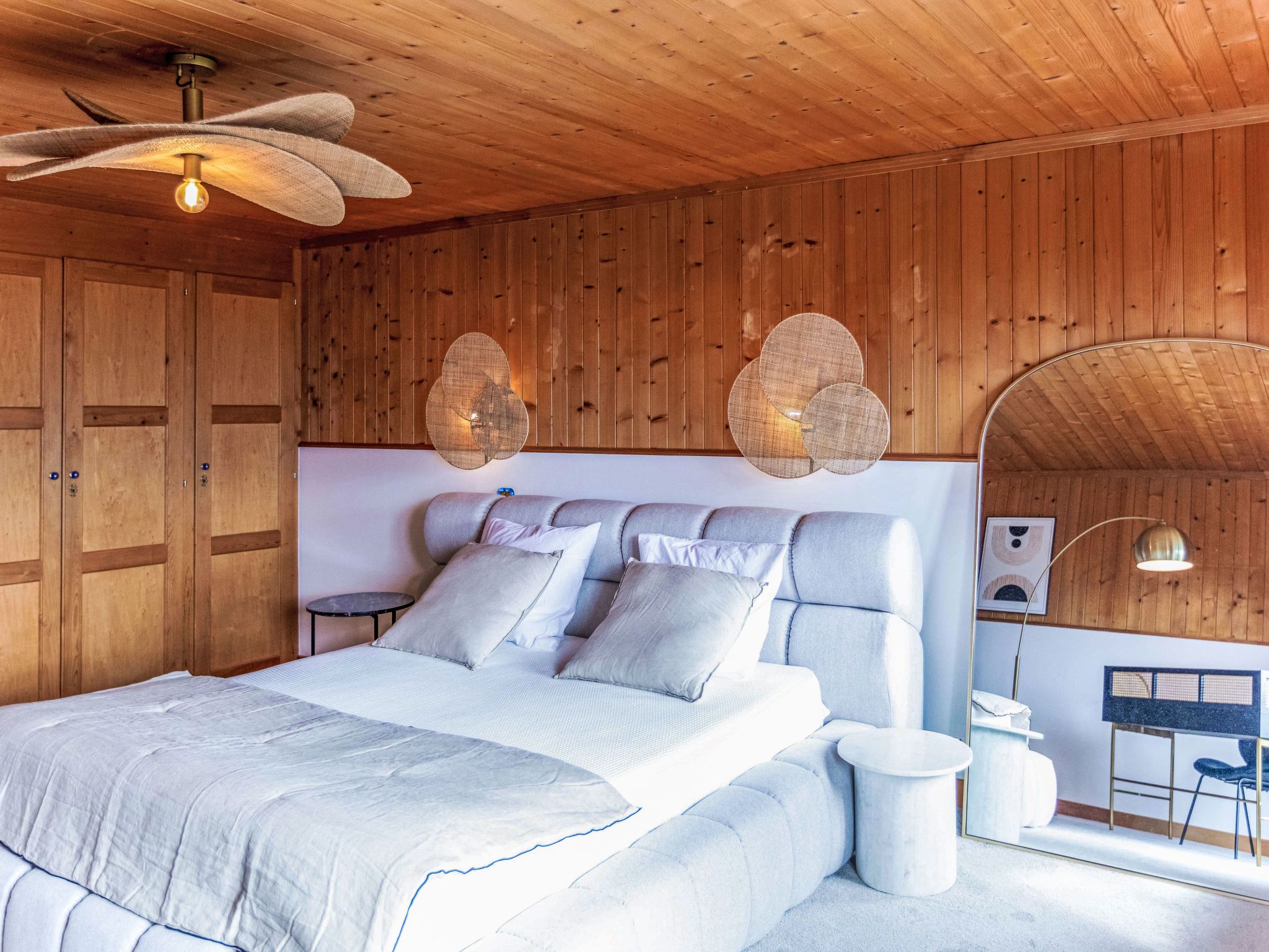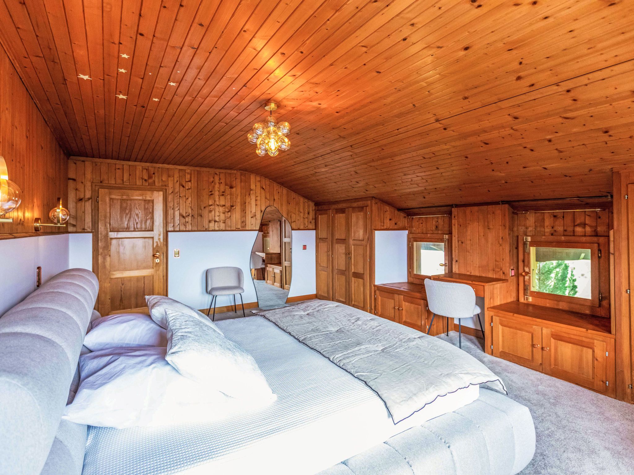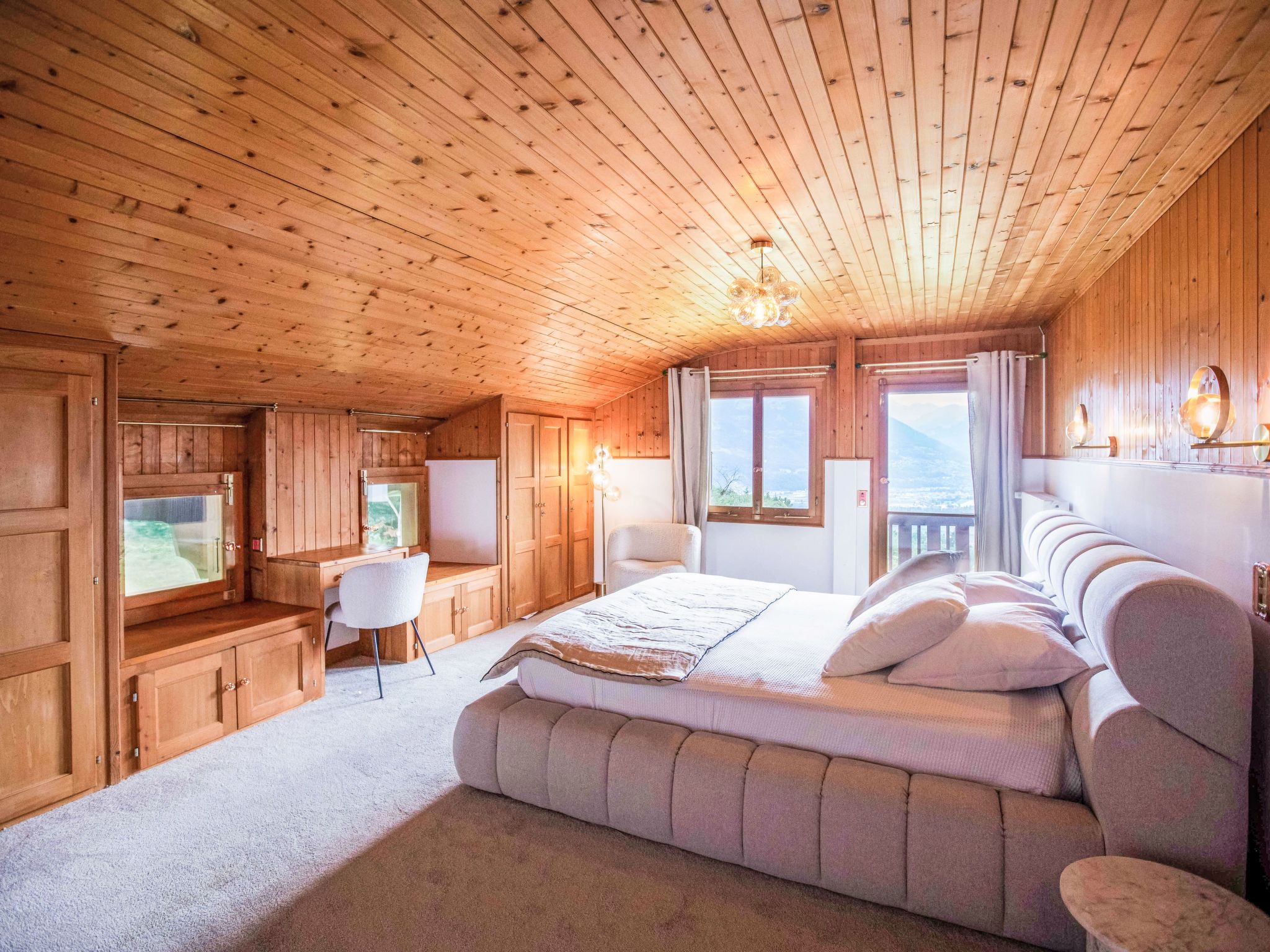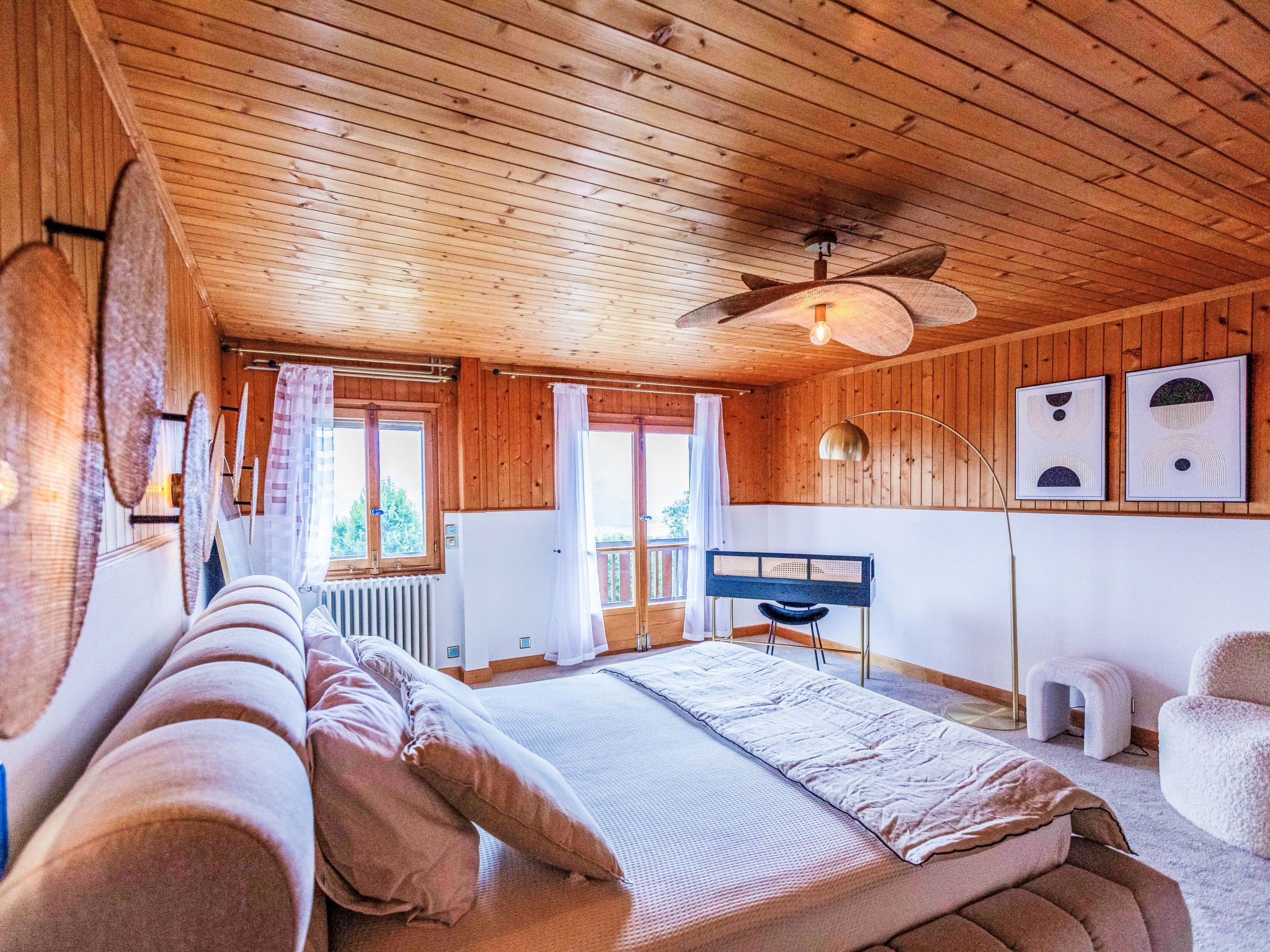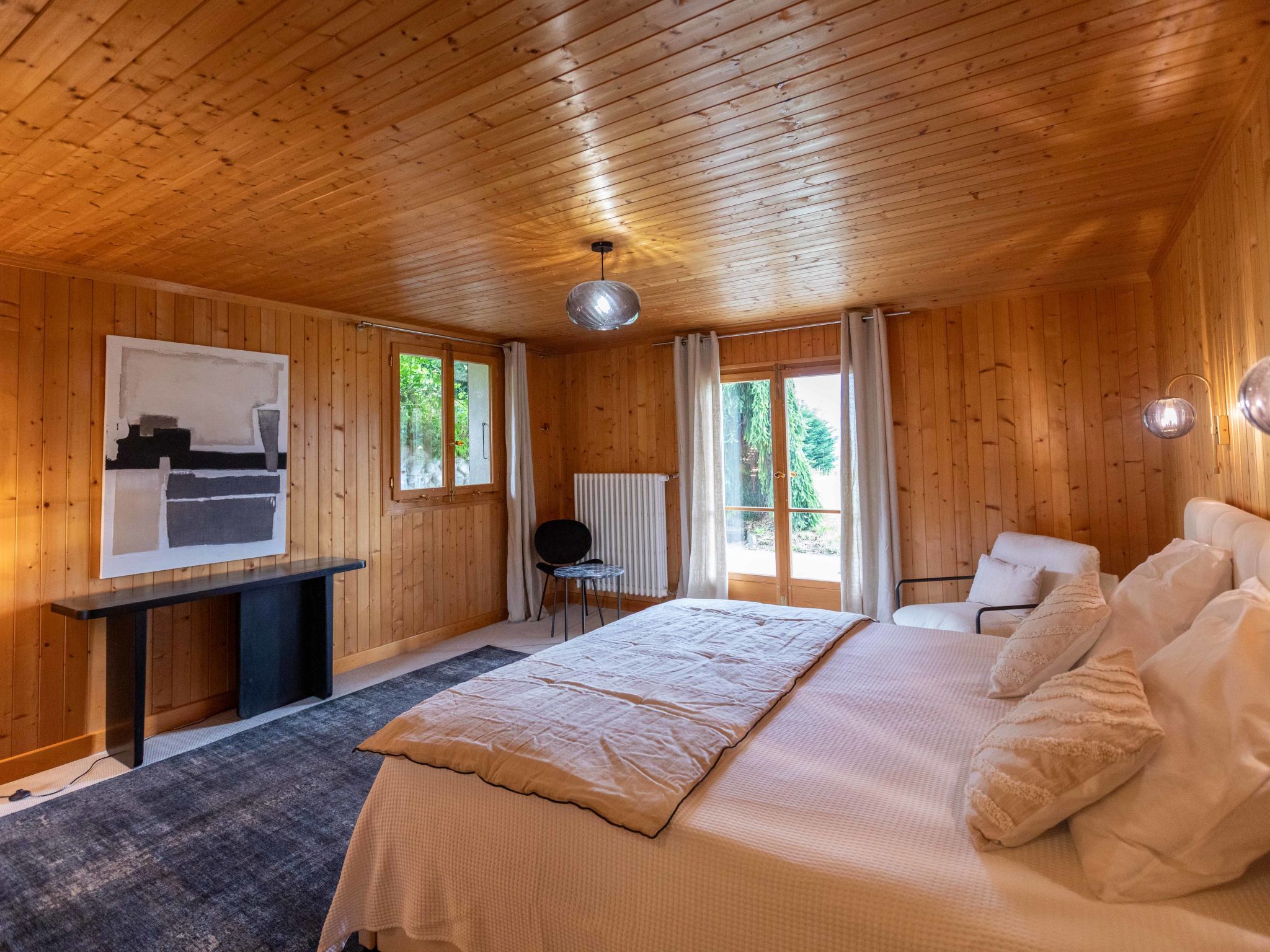 Champ de Brent, 8-Zimmer-Chalet 500 m2 auf 3 Stockwerken, Südlage. Komfortabel und stilvoll eingerichtet: grosses Wohn-/Esszimmer mit offenem Kamin und Bar. Ausgang zur Terrasse, Richtung Südosten und Richtung Süden. Grosser Eingang. Büro. Offene Küche (Geschirrspüler, 4 Induktionskochplatten, Toaster, Wasserkocher, Mikrowelle, Tiefkühler, elektrische Kaffeemaschine) mit Bar. Sep. WC. Unteres Geschoss: 1 Zimmer mit 1 Doppelbett (160 cm, Länge 200 cm), Bad/Bidet/WC. Ausgang zum Garten, zur Terrasse. 1 Zimmer mit 1 Doppelbett (160 cm, Länge 200 cm). Ausgang zur Terrasse. Grosses Wohnzimmer. Ausgang zum Garten, zur Terrasse, Richtung Süden. Sep. WC. Obergeschoss: 1 grosses Zimmer mit 1 Doppelbett (180 cm, Länge 200 cm), Bidet, sep. WC, Dusche/WC und Doppelwaschbecken. Ausgang zum Balkon. 1 Zimmer mit 1 Doppelbett (160 cm, Länge 200 cm). Ausgang zum Balkon. 1 Zimmer mit 1 Doppelbett (160 cm, Länge 200 cm), Bad/WC. Ausgang zum Balkon. Bad/Bidet/WC. Teppichboden. Balkon, grosse Terrasse. Terrassenmöbel. Herrliche Sicht auf die Berge, die Landschaft und die Ortschaft. Parkplatz (4 Autos), Garage (1 Auto). Bitte beachten: Nichtraucher-Unterkunft.