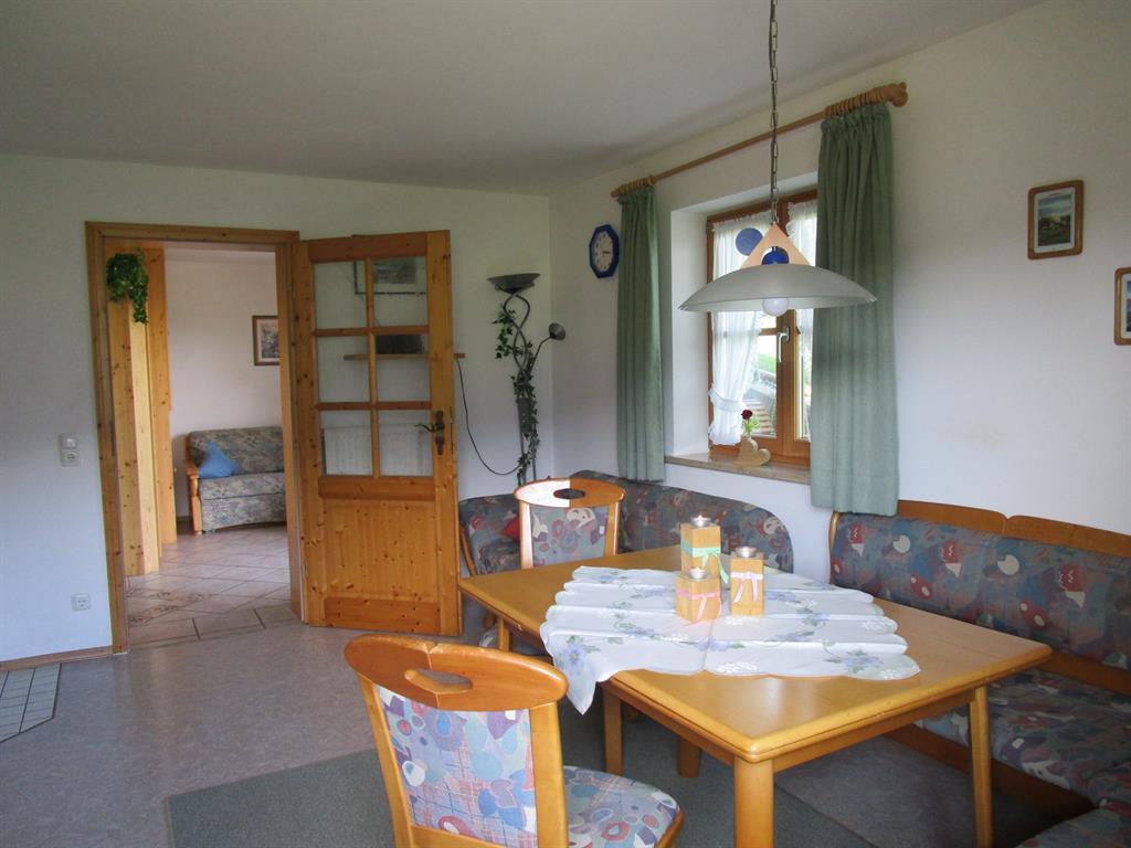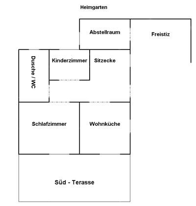 Abgeschlossene Wohneinheit mit Wohnküche, 1 Schlafzimmer mit Doppelbett, 1 Kinderzimmer mit Stockbetten, Du/WC, sep. Sitzecke mit ausziehbarer Schlafcouch, Sat-TV, Radio, Spülmaschine, Mikrowelle, Kaffeemaschine, Toaster, Wasserkocher und zusätzlichem Specksteinofen.