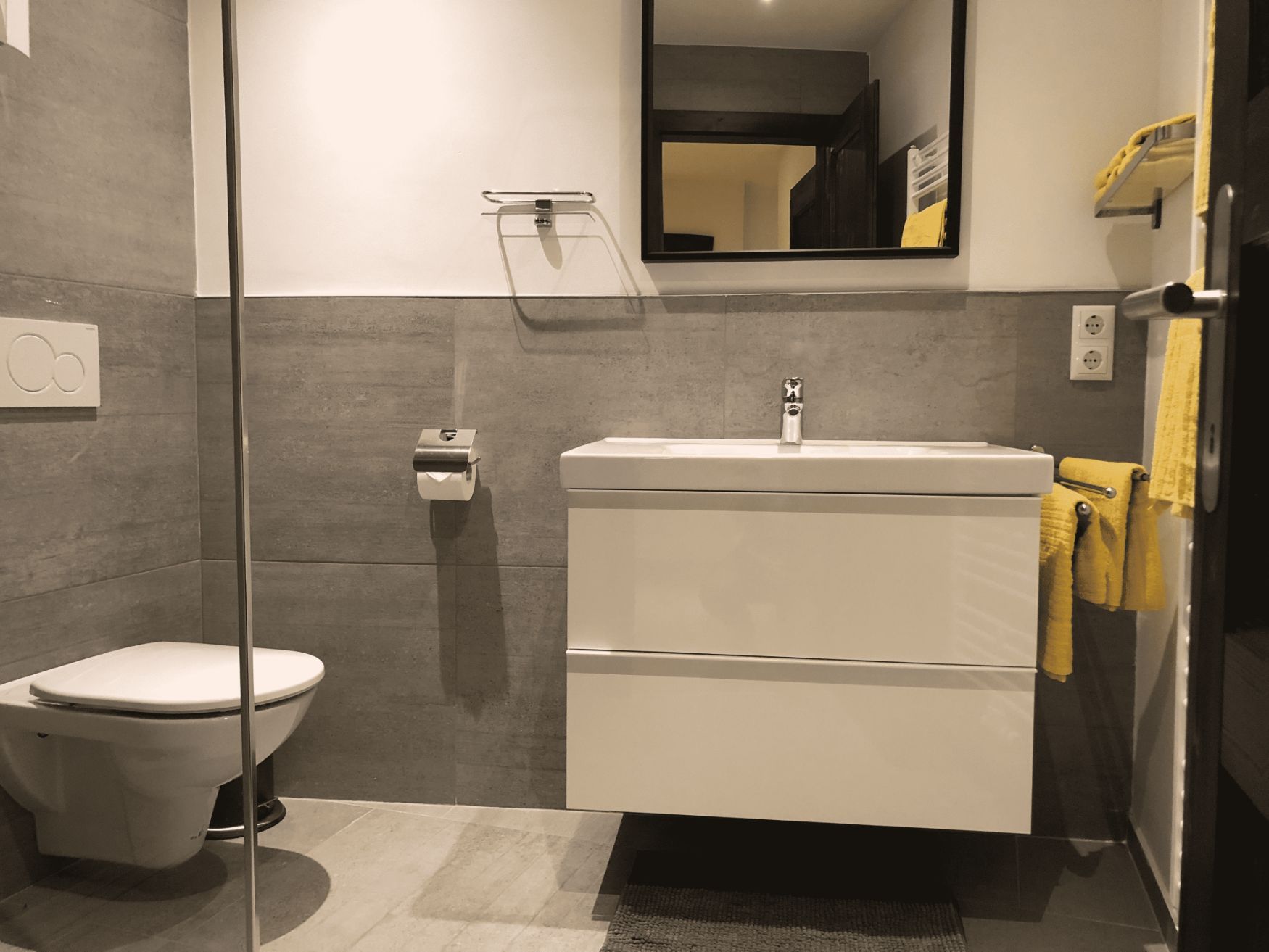 Apartment 3 befindet sich im dritten Stock und bietet auf 45 m² Platz für bis zu 4 Personen. Das offene Studio verfügt über ein Doppelzimmer sowie einen Wohnbereich mit Küche und Schlafsofa für 2 Personen im selben Raum. Außerdem gibt es ein eigenes Badezimmer mit Dusche, Waschbecken und Toilette. Ein Highlight ist die Dachterrasse mit Sitzgelegenheiten und Sonnenschirm.