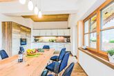 Panorama, 4-Zimmer-Wohnung 120 m2, im Dachgeschoss. Modern und stilvoll eingerichtet: Eingang. Wohn-/Esszimmer mit 1 Diwanbett, Esstisch, Essecke, Sat-TV und E-Heizung. Ausgang zum Balkon. 1 Doppelzimmer. 2 Zimmer, jedes Zimmer mit 1 Bett und 1 Doppelbett. Grosse, offene Küche (4 Induktionskochplatten, Toaster, Wasserkocher, Mikrowelle, Tiefkühler, elektrische Kaffeemaschine). Dusche, Dusche/WC, sep. WC. Heizung. Grosser Balkon. Balkonmöbel. Traumhafter Ausblick, sehr schöne Ausstattung! 50619-005911-2020