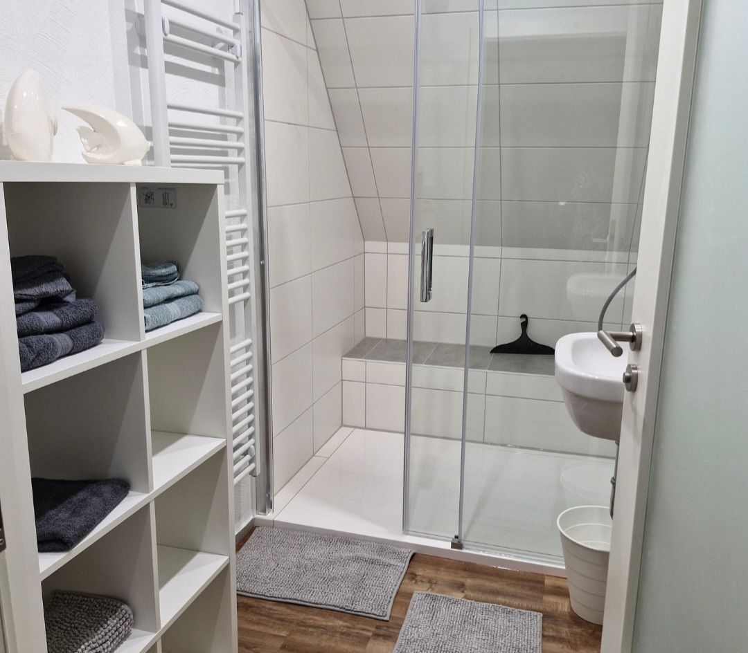 Das geräumige WC und die separate ebenerdiger Dusche, rundet das Gesamtbild ab.