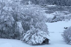 Die Berge glitzern im Schnee – perfekt für Skifahren, Langlaufen, Winterwandern oder einfach Entspannen.