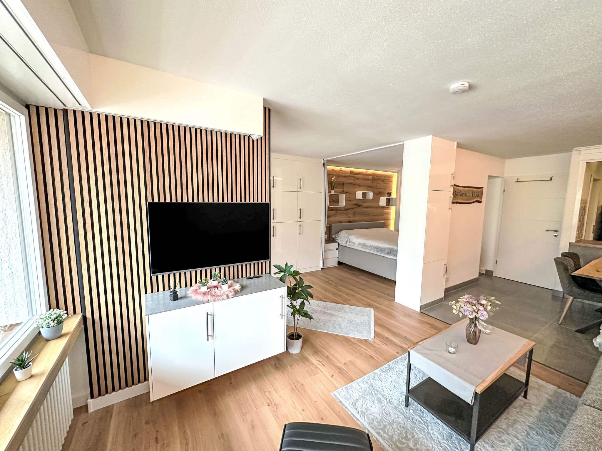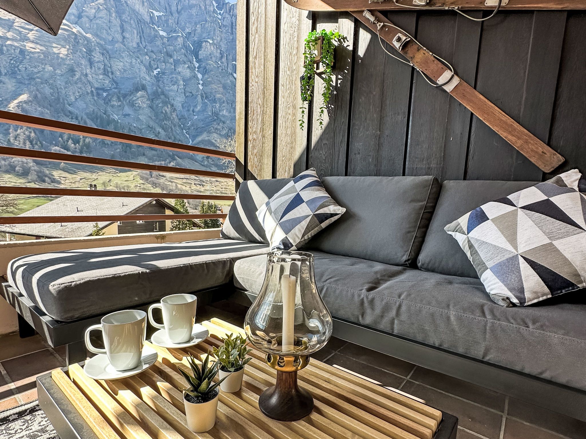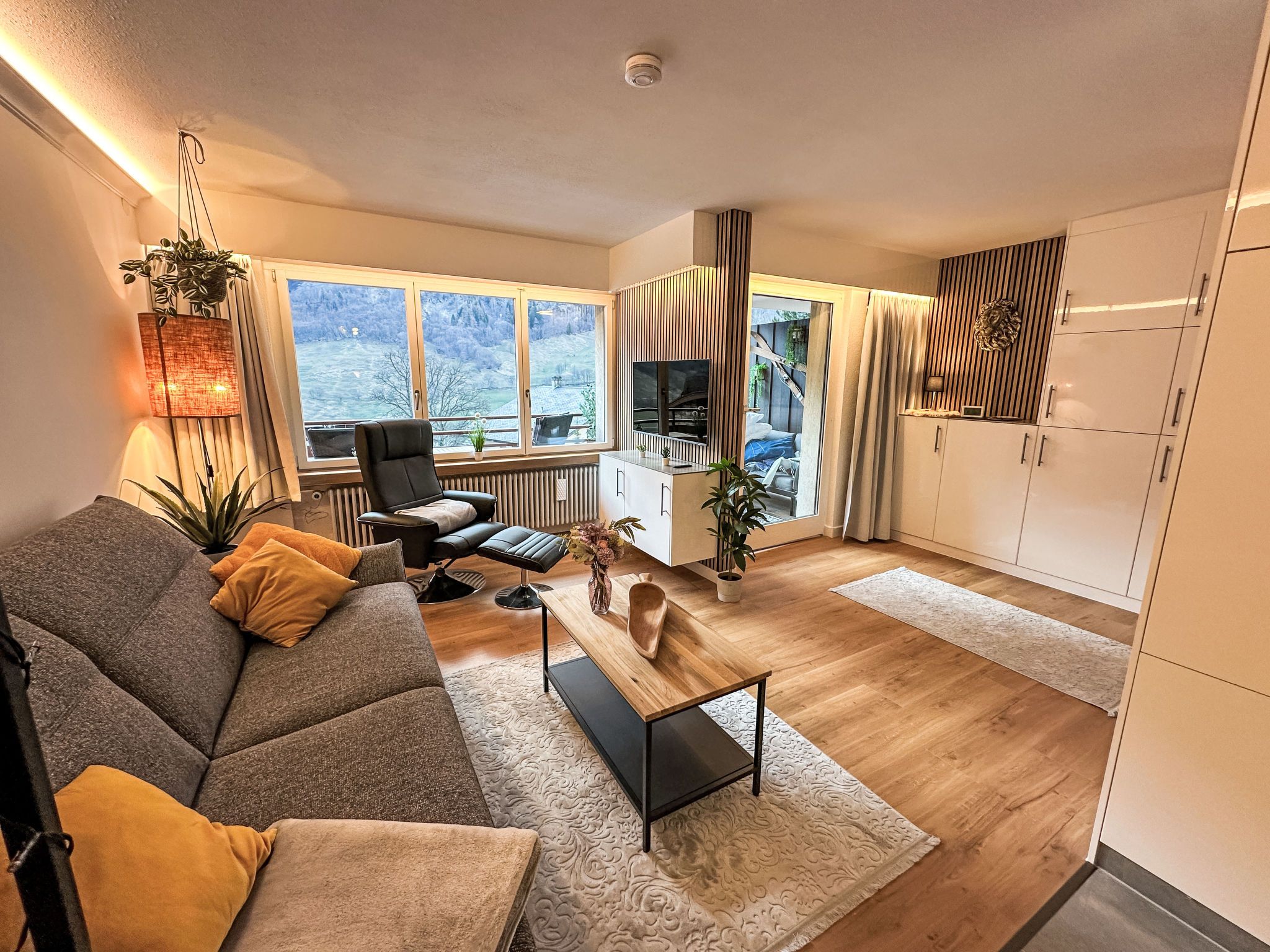 Ringstrasse Apt 113, 2-Zimmer-Wohnung im 1. Stock. Vollständig renoviert im Jahre 2024, sehr schön und modern eingerichtet: Wohn-/Schlafzimmer mit 1 Doppeldiwanbett (170 cm, Länge 210 cm), Digital-TV. Ausgang zum Balkon. Schlafnische mit Vorhang mit 1 Doppelbett (180 cm, Länge 200 cm). Küche (Backofen, Geschirrspüler, 4 Induktionskochplatten, Toaster, Wasserkocher, Tiefkühler, elektrische Kaffeemaschine, Kombinationsmikrowelle) mit Esstisch. Dusche/WC. Fussbodenheizung. Parkettboden. Balkon. Balkonmöbel. Schöne Sicht auf die Berge und das Tal. Zur Verfügung: Safe, Haartrockner. Internet (WLAN, gratis, Bandbreite: 400 Mbit/s). Bitte beachten: Nichtraucher-Unterkunft.