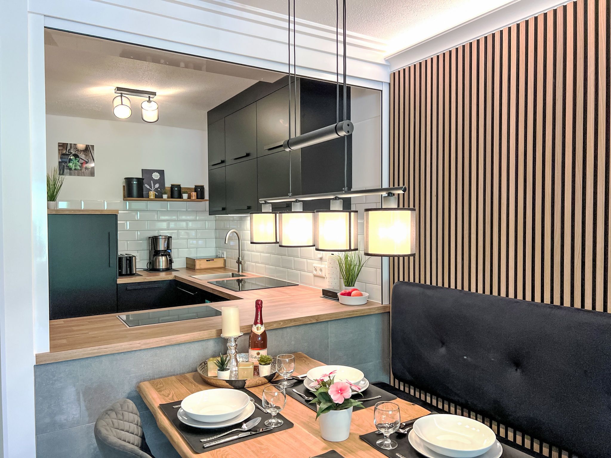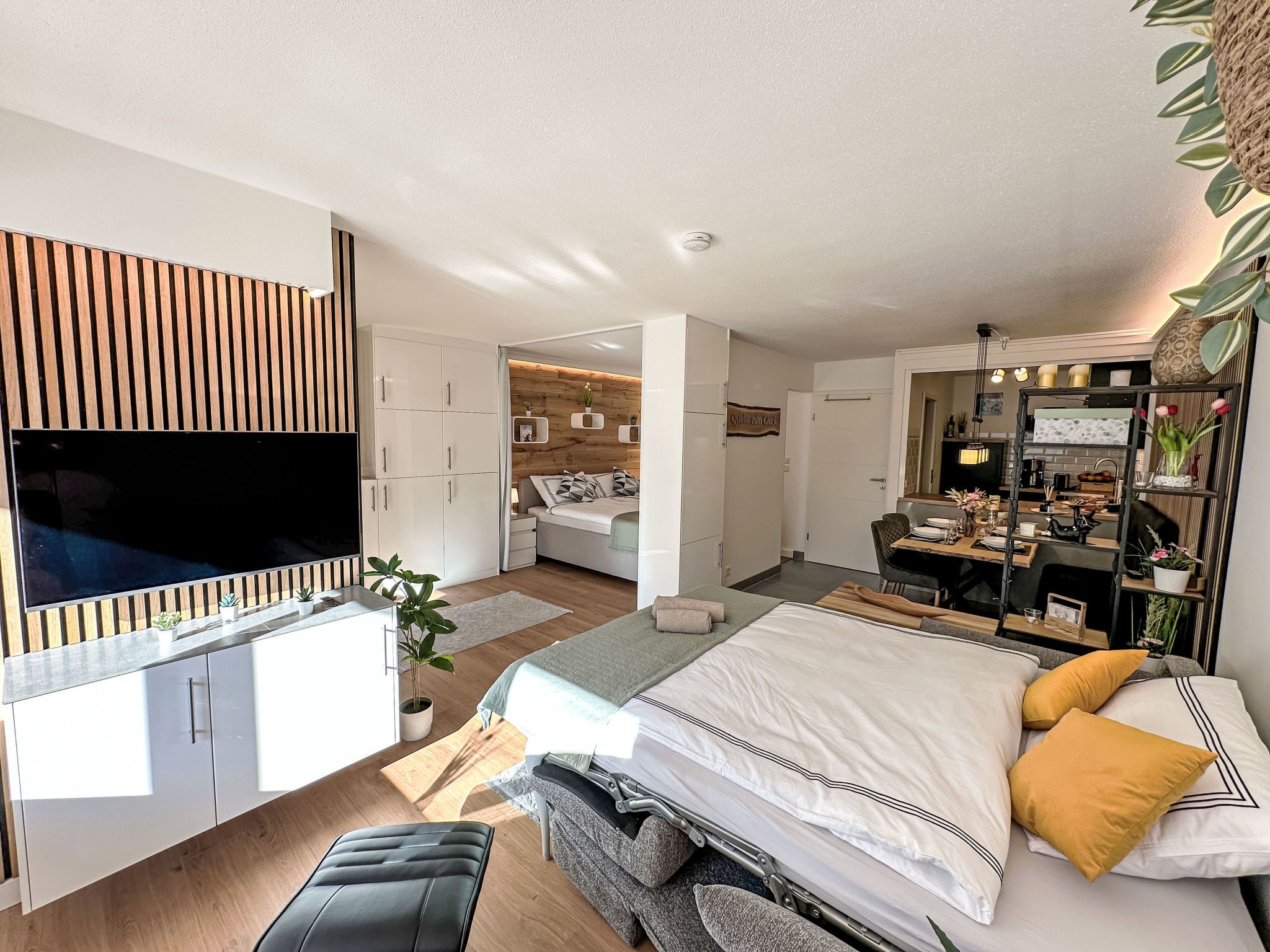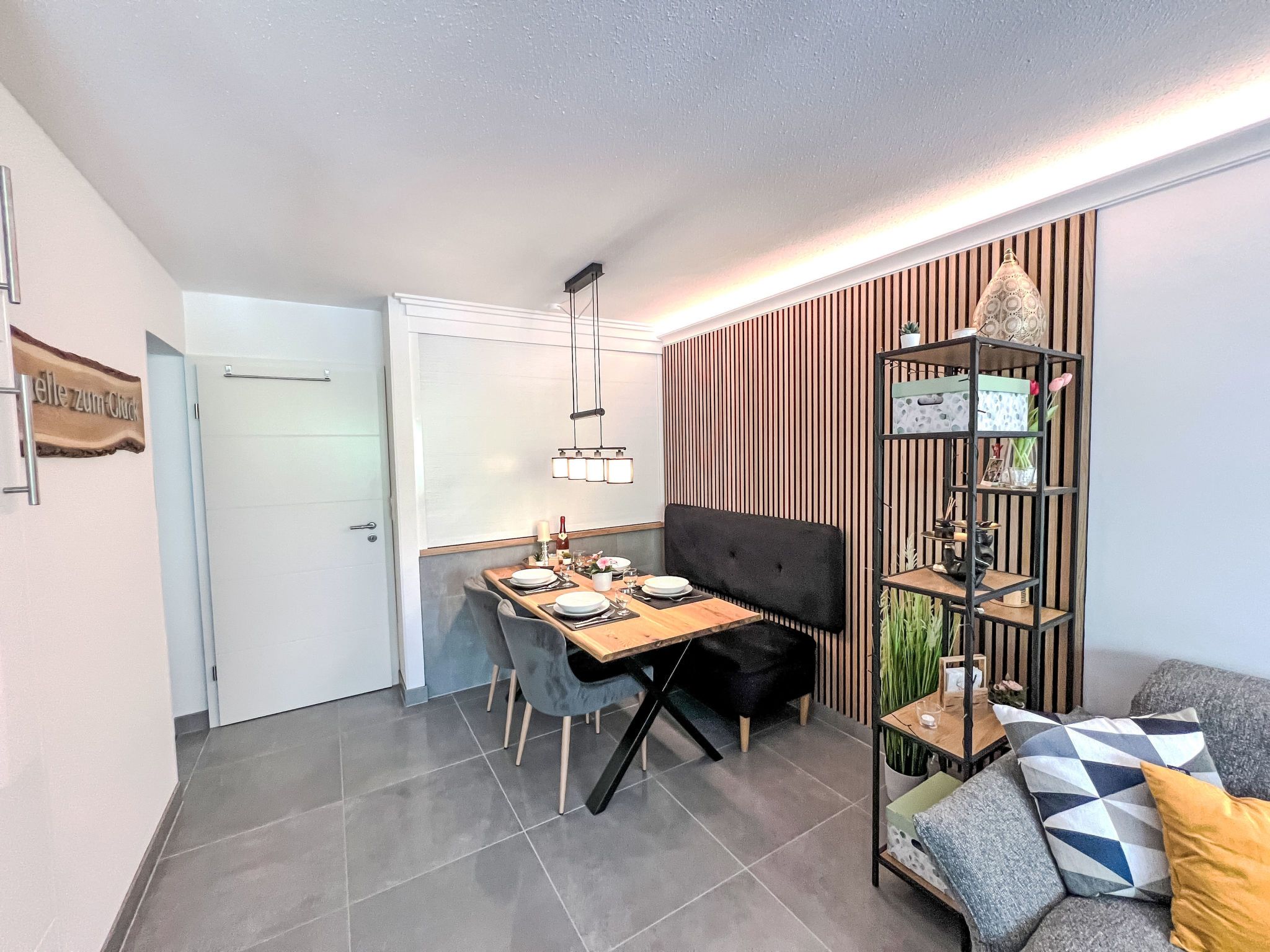 Ringstrasse Apt 113, 2-Zimmer-Wohnung im 1. Stock. Vollständig renoviert im Jahre 2024, sehr schön und modern eingerichtet: Wohn-/Schlafzimmer mit 1 Doppeldiwanbett (170 cm, Länge 210 cm), Digital-TV. Ausgang zum Balkon. Schlafnische mit Vorhang mit 1 Doppelbett (180 cm, Länge 200 cm). Küche (Backofen, Geschirrspüler, 4 Induktionskochplatten, Toaster, Wasserkocher, Tiefkühler, elektrische Kaffeemaschine, Kombinationsmikrowelle) mit Esstisch. Dusche/WC. Fussbodenheizung. Parkettboden. Balkon. Balkonmöbel. Schöne Sicht auf die Berge und das Tal. Zur Verfügung: Safe, Haartrockner. Internet (WLAN, gratis, Bandbreite: 400 Mbit/s). Bitte beachten: Nichtraucher-Unterkunft.