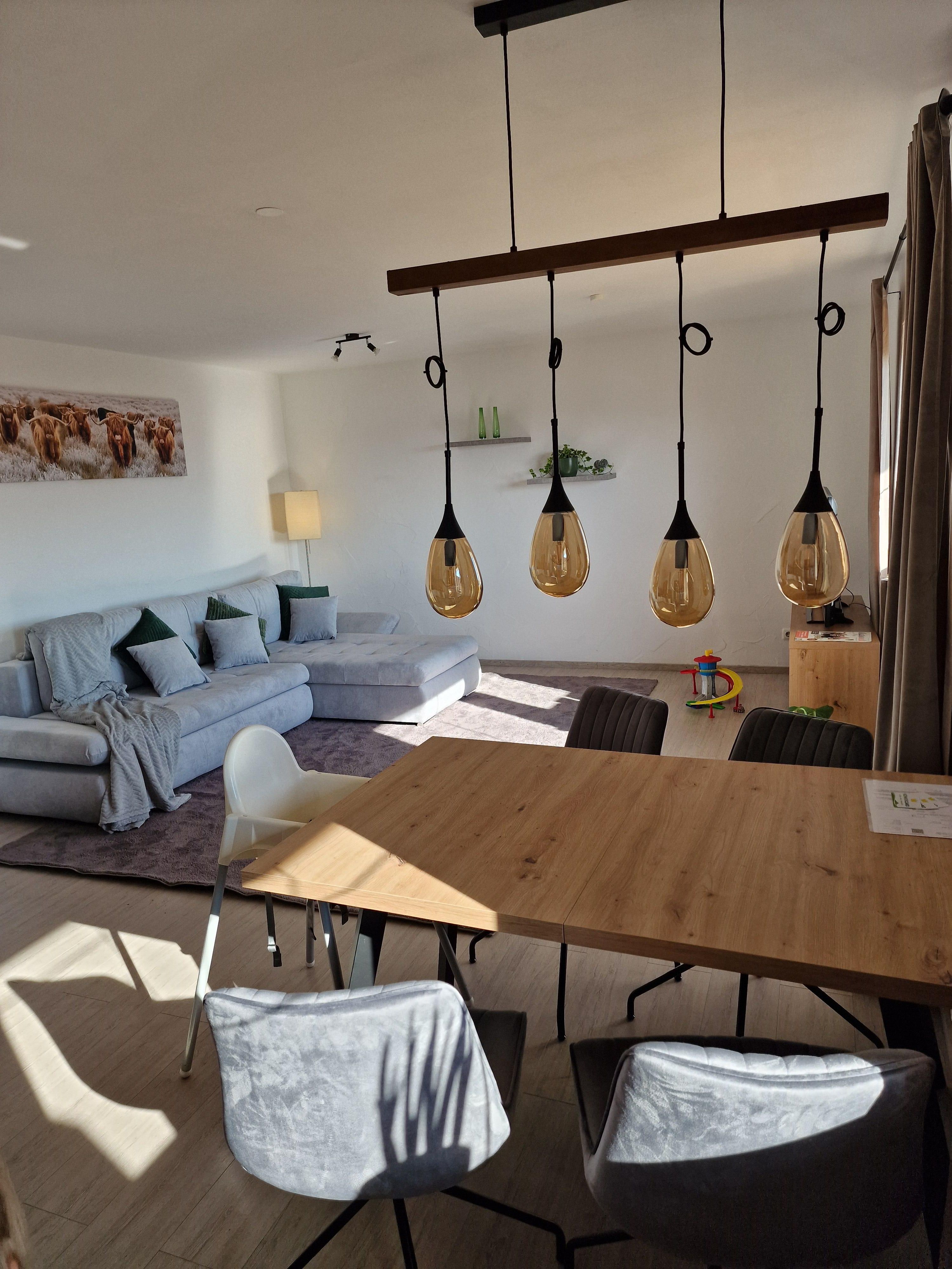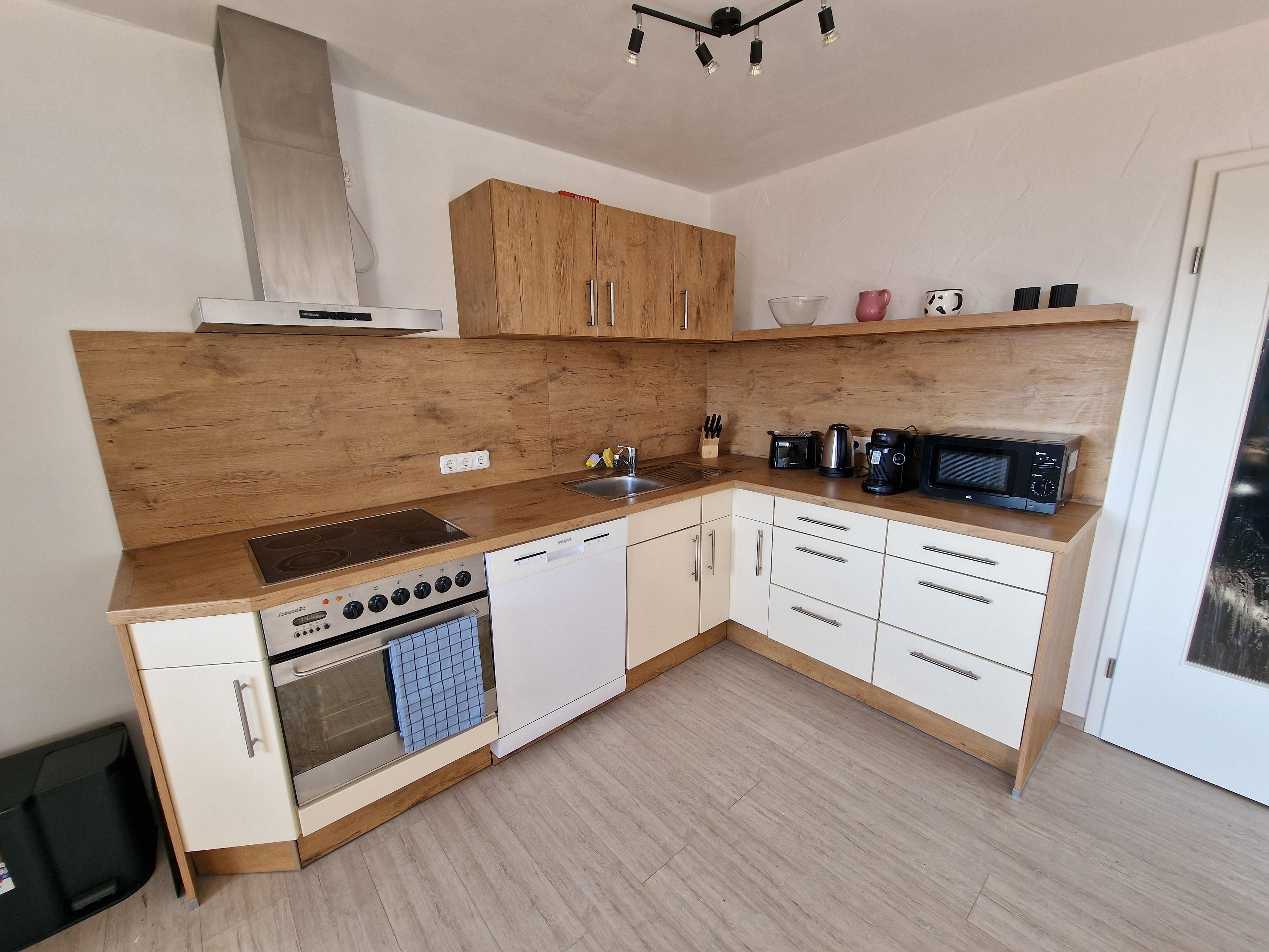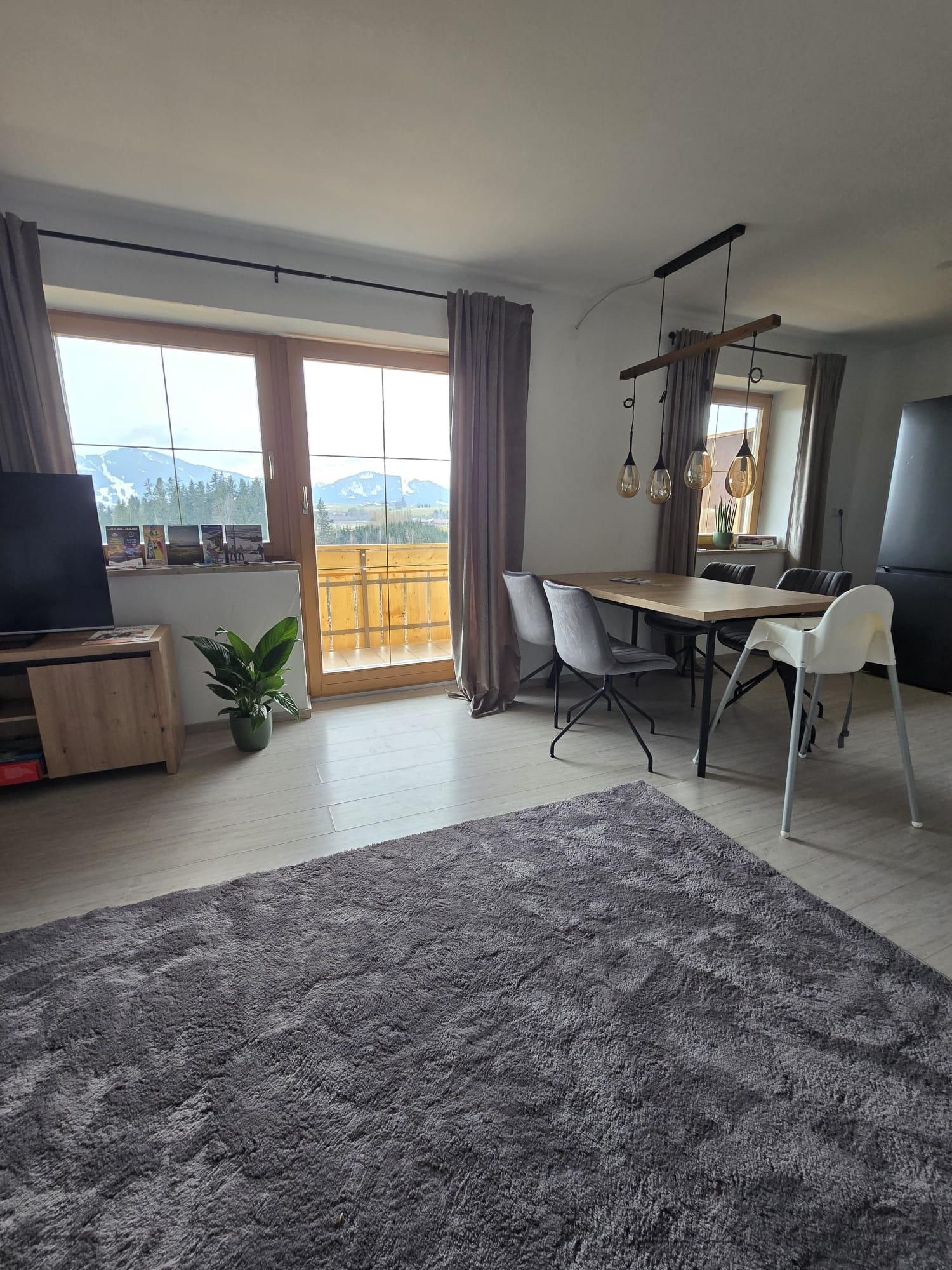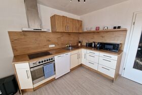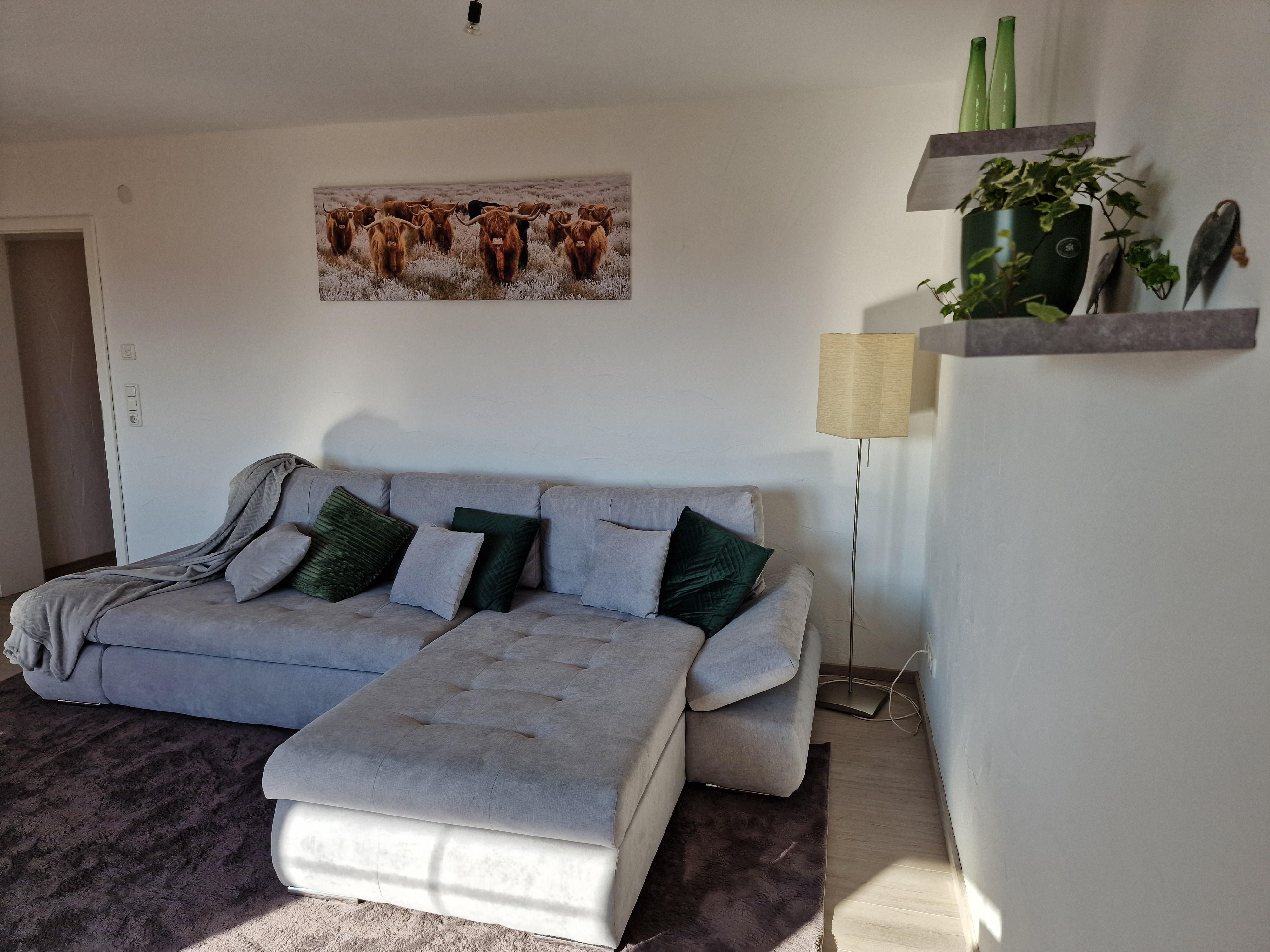 In unserer neu eingerichteten Ferienwohnung erwarten Sie 2 separate Schlafzimmer mit großen Boxspringbetten, eine großzügige Wohnküche mit Küchenzeile, Esstisch, TV und ausziehbares Schlafsofa, welches die Schlafmöglichkeit für eine 5te und 6te Person bieten würde. Dieser großzügige Raum ist nach Süden ausgerichtet mit Zugang zum Balkon, von welchem sie ein beeindruckender Ausblick/Weitblick erwartet. Weiterhin das Bad mit Badewanne (mit Duschmöglichkeit) und separates WC.