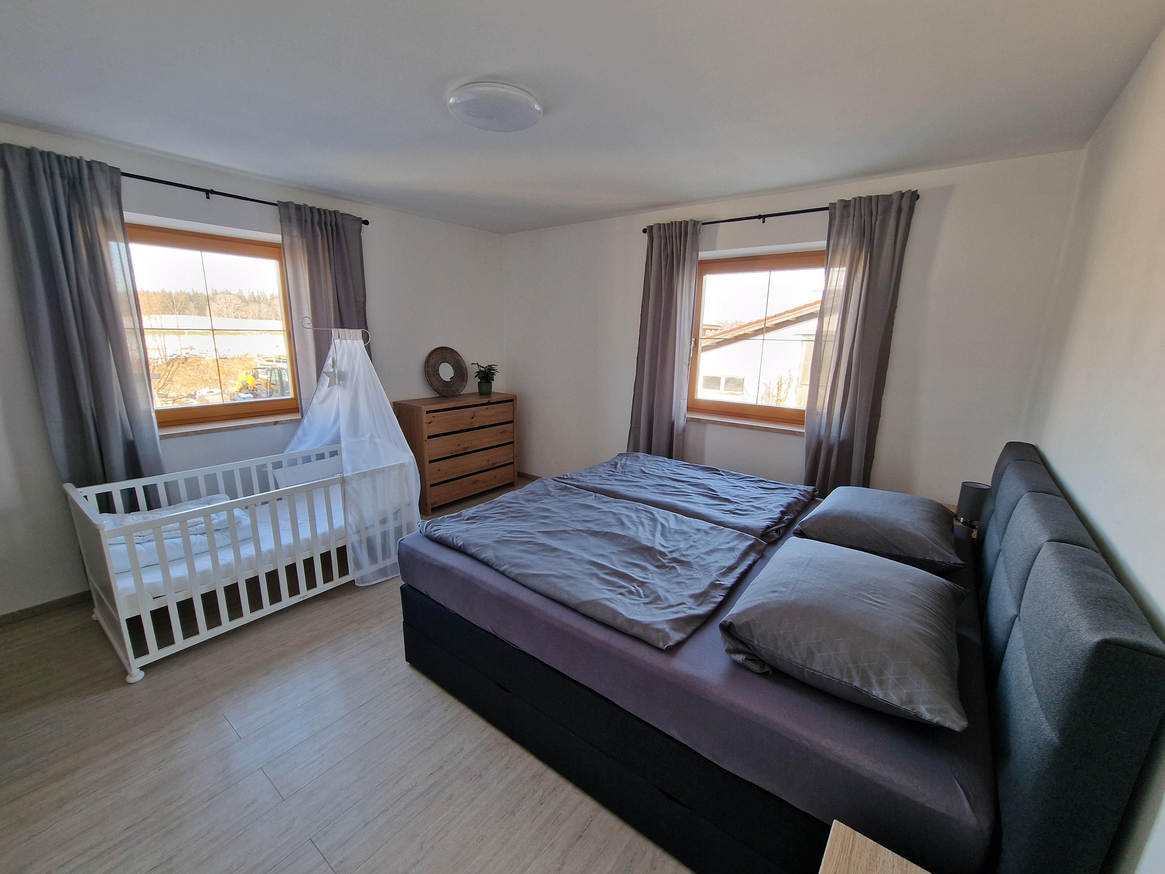 Kinderbettchen und Hochstuhl nach Verfügbarkeit.