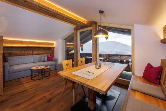 Unsere, neue Ferienwohnung „Familiennest“ mit traumhaften Panoramablick ist mit viel Handarbeit und Liebe zum Detail im alpinen Flair eingerichtet. (Eröffnung Winter 23/24) Durch das regionale Holz und dem Kamin strahlt sie Wärme und Behaglichkeit aus.