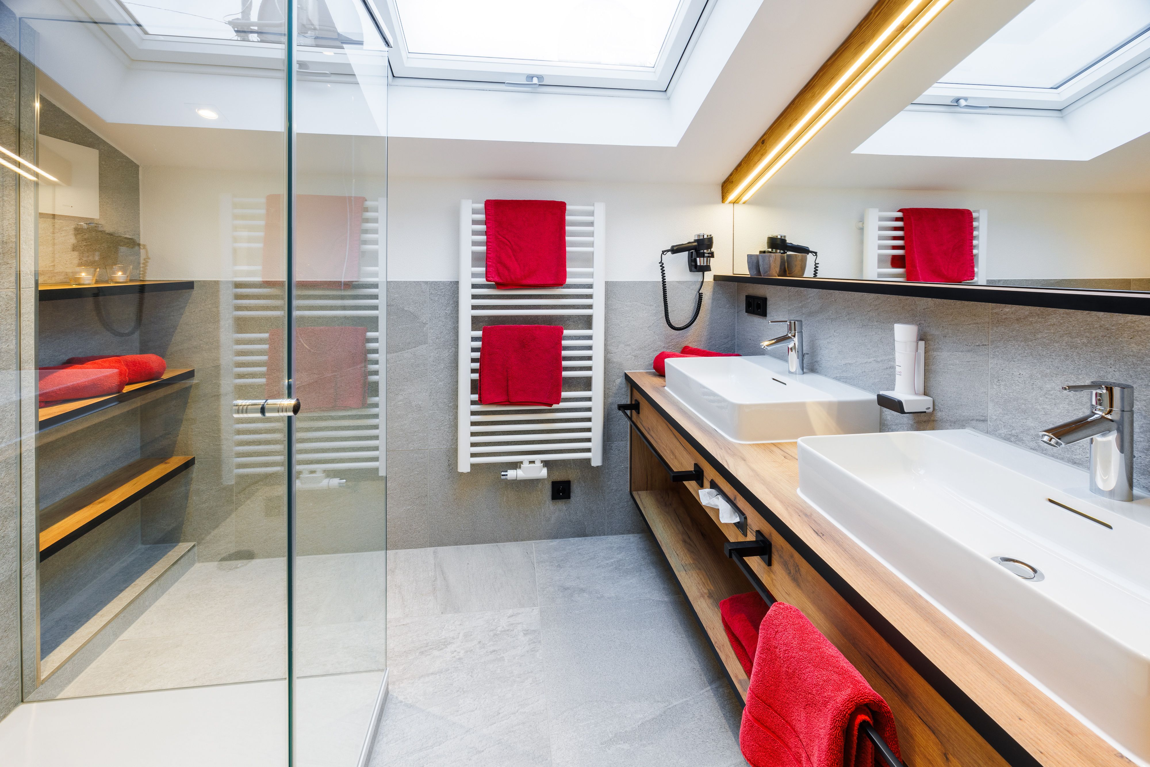 Die großen Fensterfronten und Dachfenster laden zum Träumen und verweilen ein. Mit den zwei Schlafzimmern ist Sie ideal geeignet für Familien oder Paare. Der gemütliche Wohnbereich mit großer Couch und Essbereich, die komplett ausgestattete Küche mit Spülmaschine und Backofen sowie das Bad mit ebenerdiger Regendusche, Doppelwaschbecken und separatem WC machen Ihren Urlaub zum Traumurlaub.