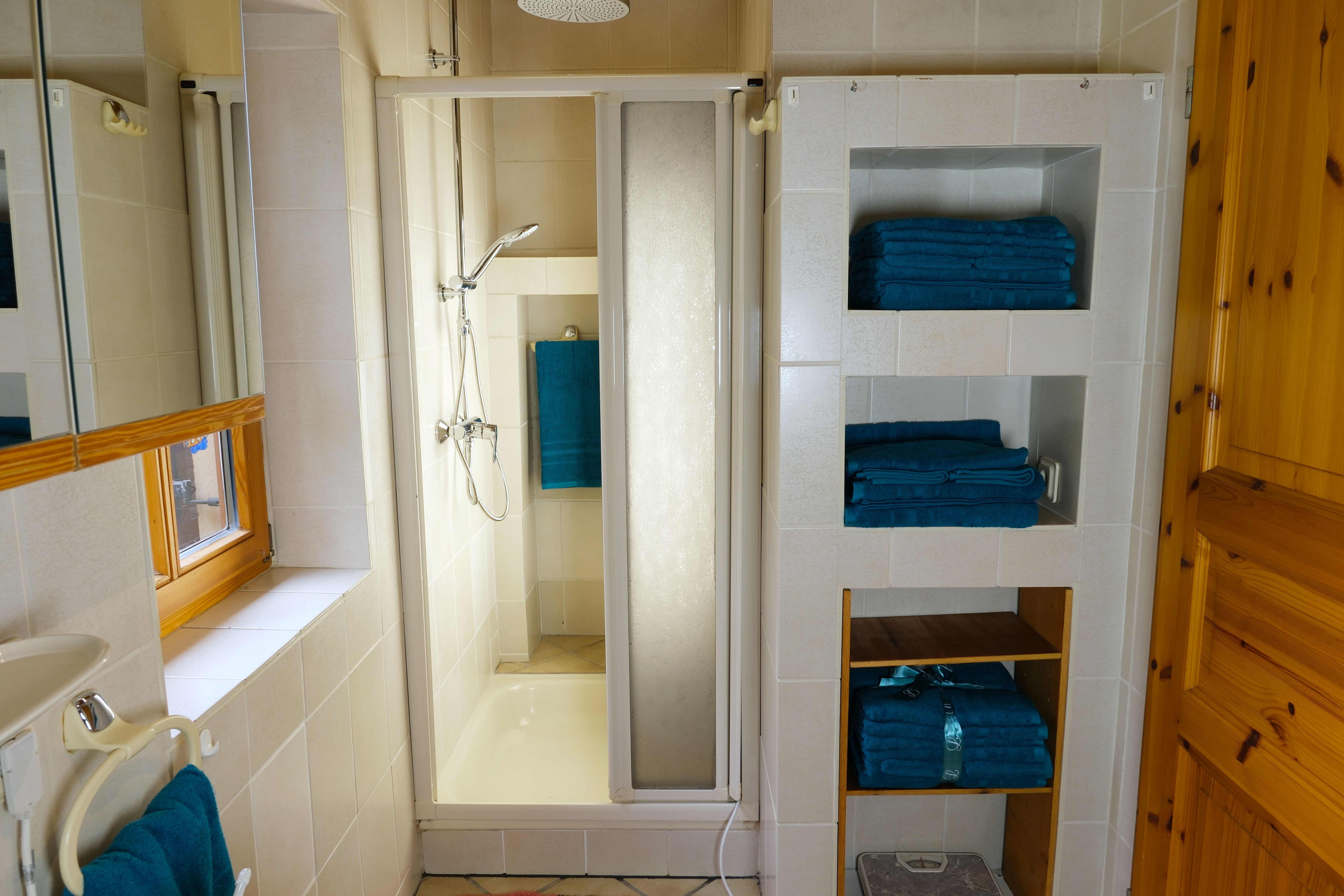 Im Erdgeschoss befindet sich der Eingangsbereich mit einem Wohn/Essraum. Dort ist eine komplett ausgestattete Küche sowie ein Badezimmer mit Dusche vorhanden.