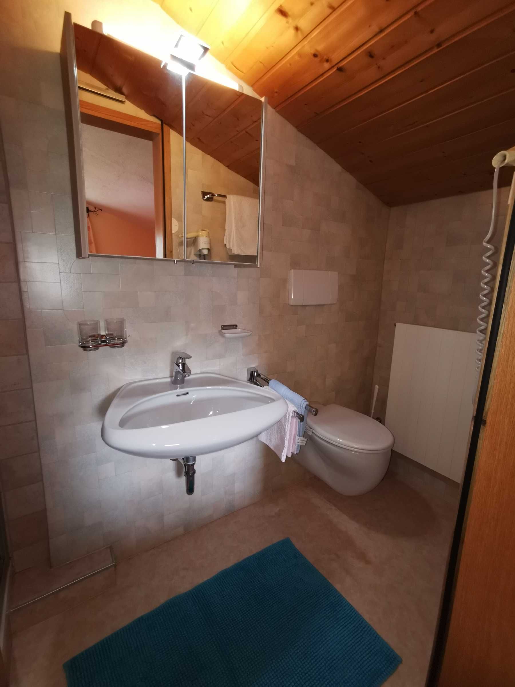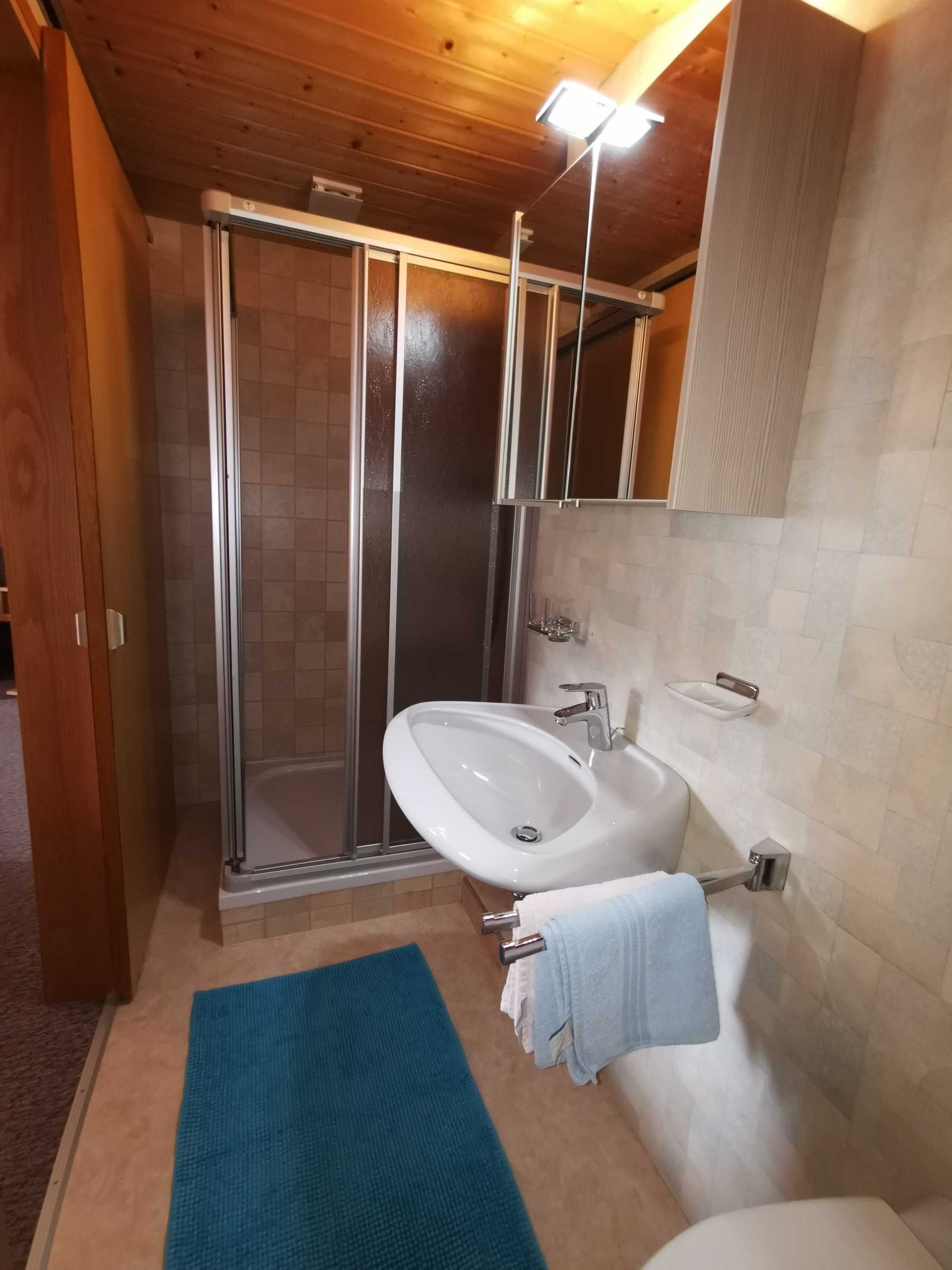 Das Zimmer (ca. 20 m²) verfügt über eine eigene Dusche, WC, Fön und Handtücher.