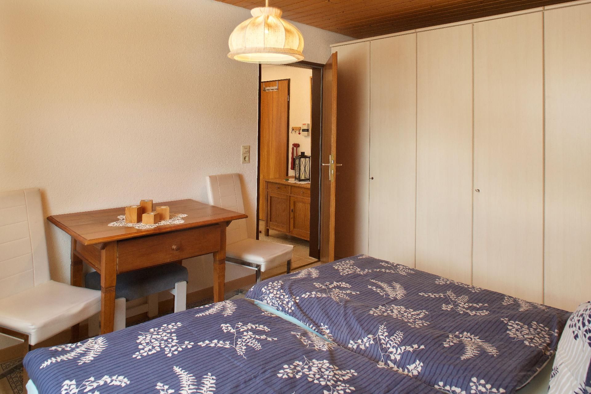 Die 2-Zimmer Ferienwohnung bietet Platz für 2-4 Personen (ca. 45m²) und liegt in ruhiger, sonniger Lage. Ausgestattet ist die Wohnung mit Wohnküche, Schlafzimmer, Badezimmer und Südwestbalkon. Das Wohnzimmer mit integrierter, offener Küche wurde mit einer Schlafcouch, Flachbild-TV und Essbereich ausgesttatet. Neben Töpfe, Pfannen und Geschirr wurde die Küche komplett mit Herd/Backofen, Geschirrspüler, Mikrowelle, Kaffeemaschine, Kühlschrank (mit Gefrierfach), Wasserkocher und Toaster ausgestattet. Im Schlafzimmer wartet ein Doppelbett und ein großzügiger Kleiderschrank für Ihre Reisegarderobe auf Sie. Zusätzlich können 2 Matratzen auf den Boden gelegt werden. Das Tageslicht-Badezimmer mit Badewanne (+ Dusche), WC, Waschbecken, Spiegelschrank, Föhn ist selbstverständlich ebenfalls vorhanden. Ein kleiner Flur mit Garderobe bietet Platz für Schuhe und Jacken. Weiterhin können Sie die Vorteile des SAT-TV und Radio, CD-Spieler und kostenfreies Internet (WLAN) genießen. Ein Babyreisebett sowie ein Hochstuhl sind zusätzlich nutzbar.